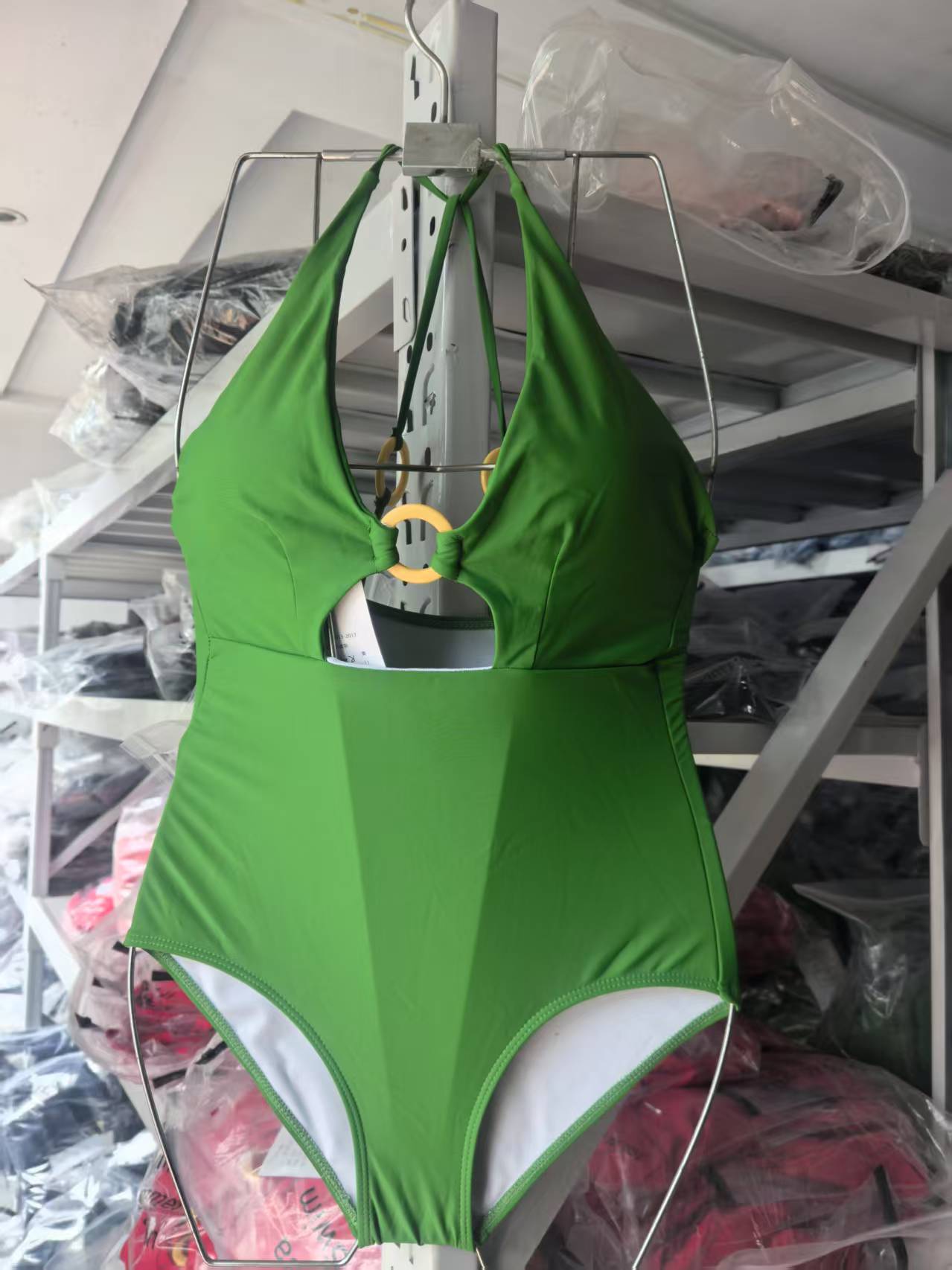 빈티지 홍콩 스타일 백리스 핫 소녀 딥 V 넥 그린 화이트 수영복 여성용 슬리밍 벨리 커버 온천 홀리데이 수영복스토어 가기
