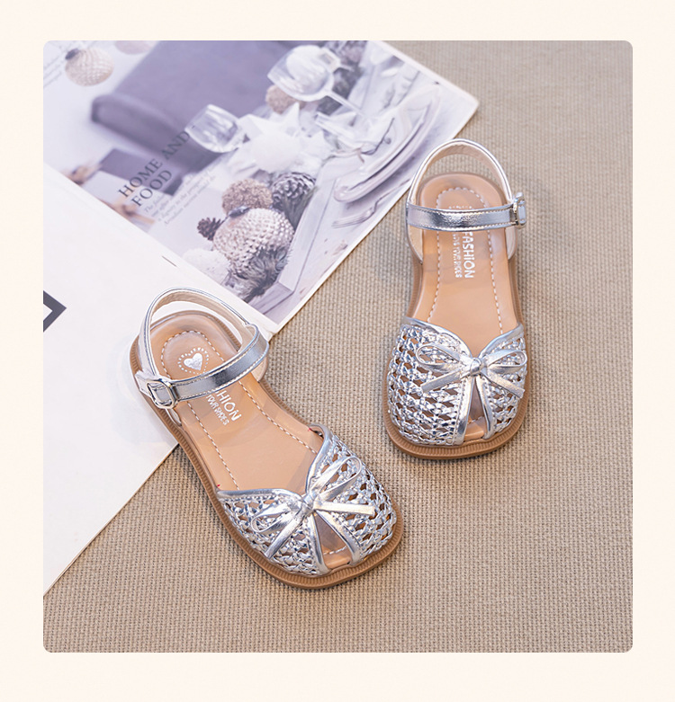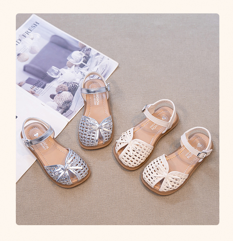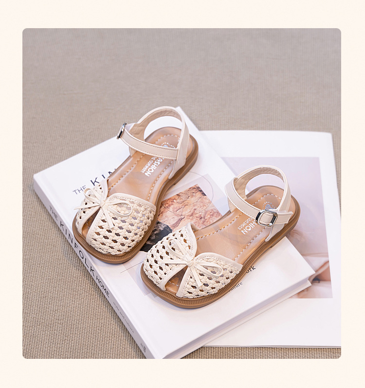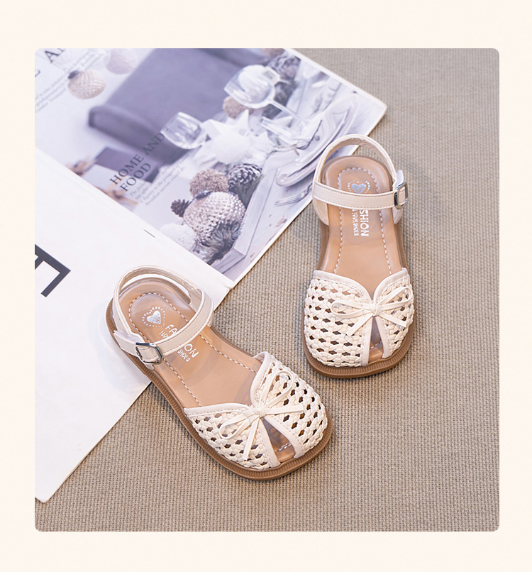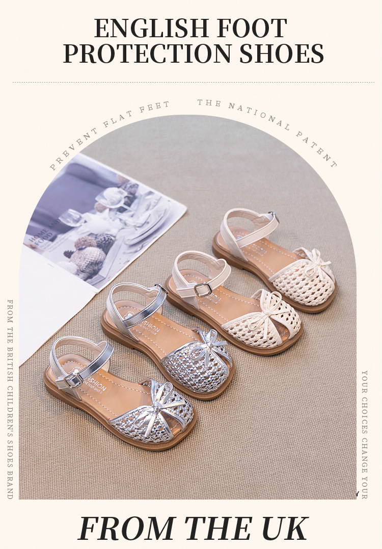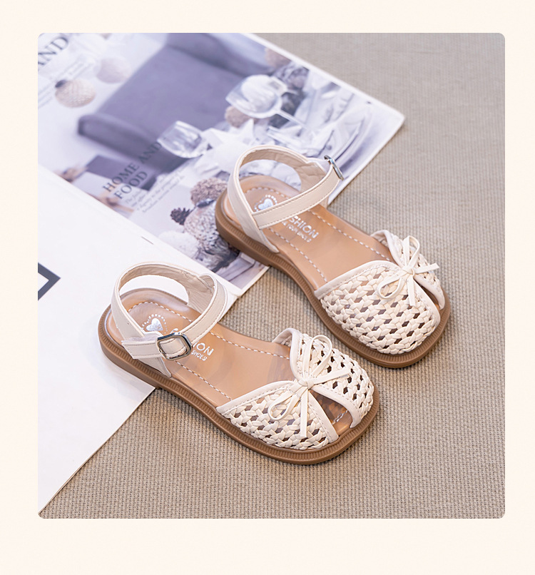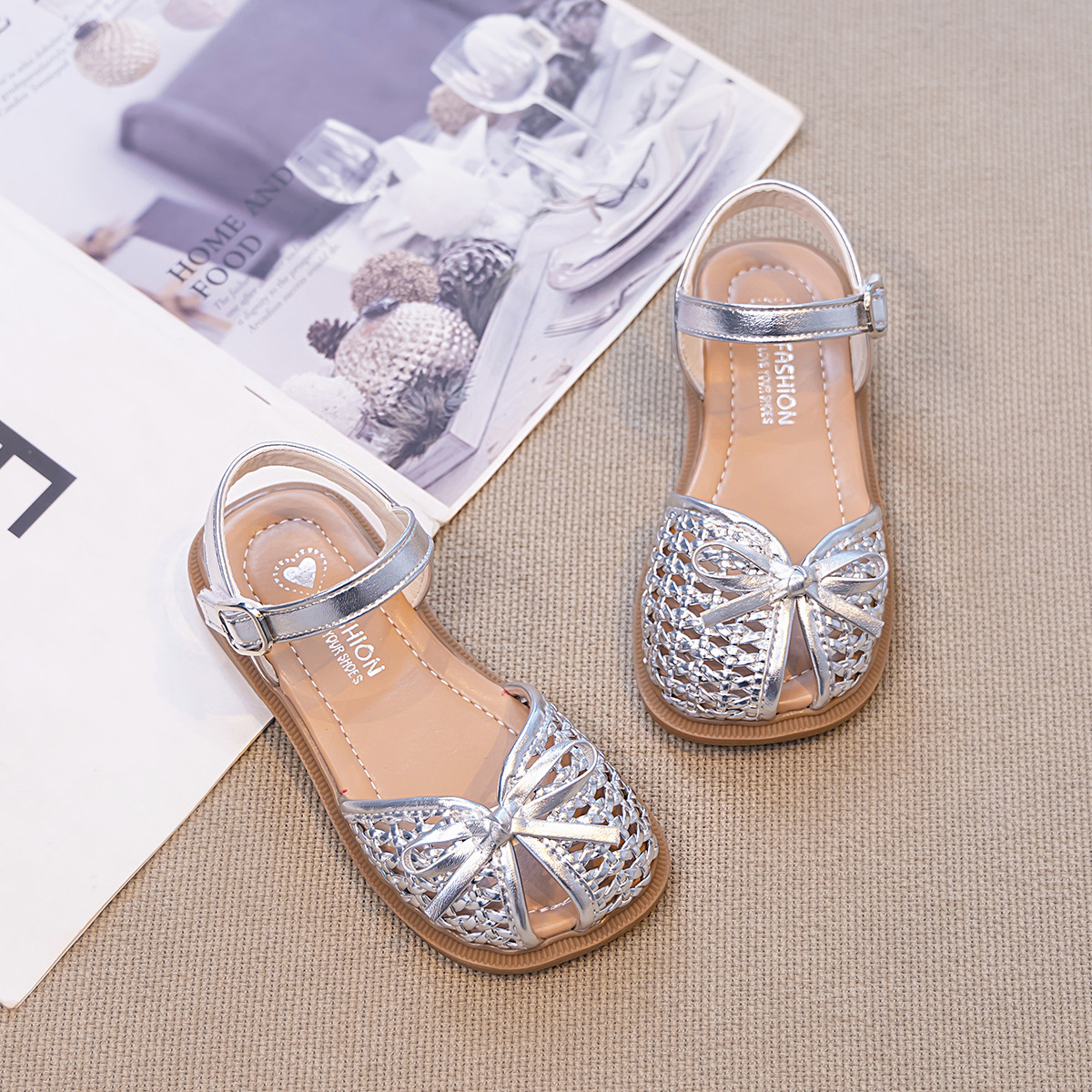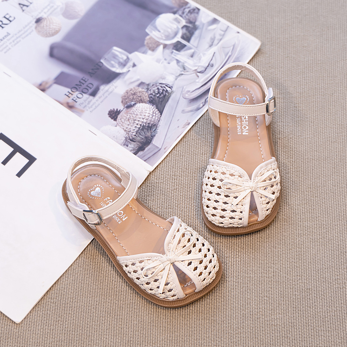여아 샌들 2026 여름 신상 한국 스타일 리본 장식 앞코가 덮힌 부드러운 밑창 신발 어린 소녀들을 위한 달콤한 공주풍 신발