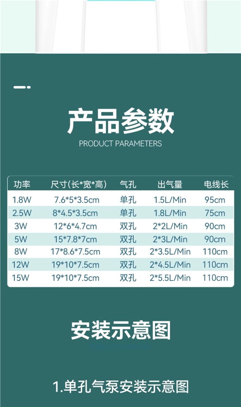 • [수면 수준의 조용한 공기 펌프] 2.5W 단일 구멍 베어 펌프(액세서리 전체 세트 포함) + 공기 플레이트