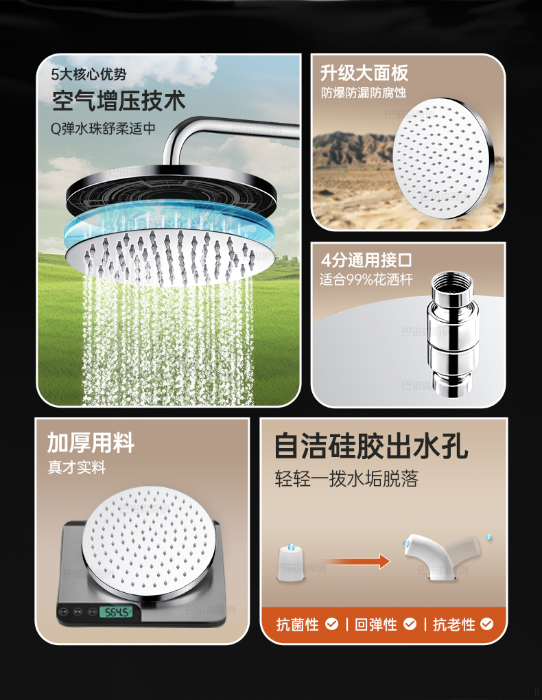 슈퍼차저 샤워헤드, 대형 샤워헤드, 가압 스테인리스 싱글헤드 샤워헤드, 가정용 샤워헤드