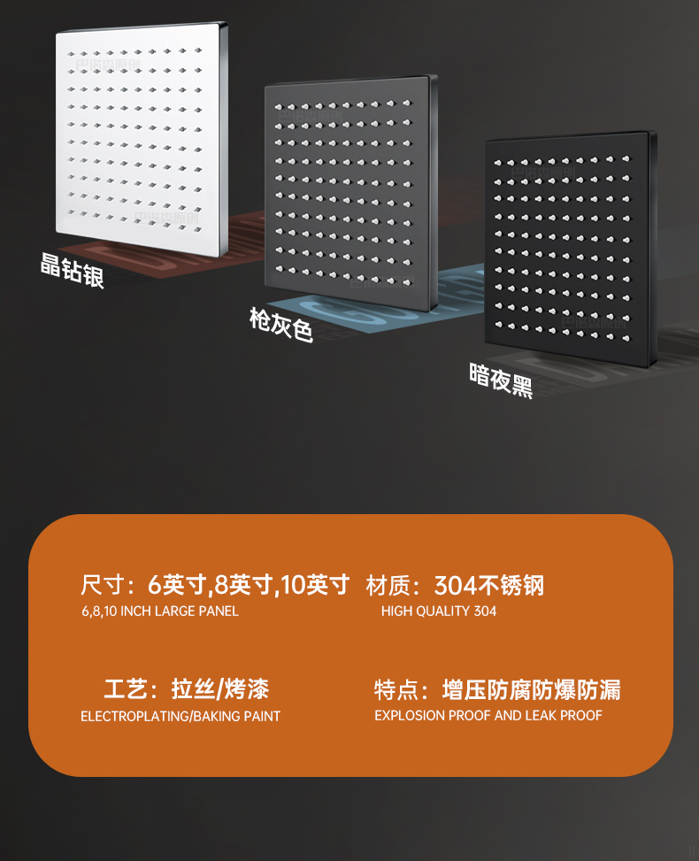 • 건그레이 10inch [250mm 정사각형] 스테인레스 스틸, 녹 방지 및 누수 방지, 30년 사용 보장 ◆ 공통 인터페이스