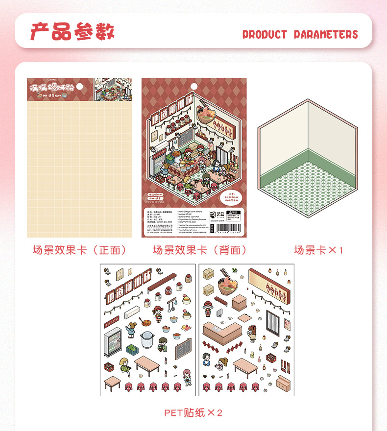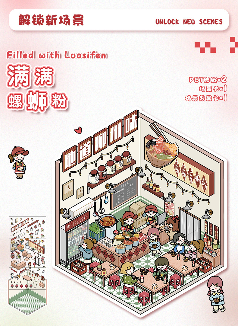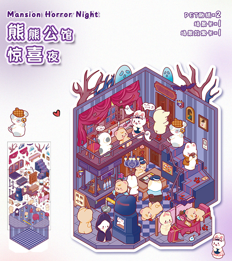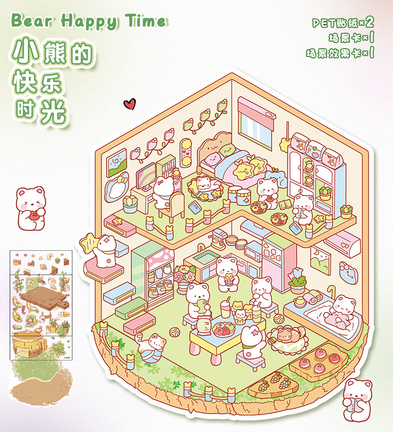 만화 소형 풍경 스티커 귀여운 3D 입체 오두막 핸드북 스티커 미니어처 장면 콜라주 DIY 스티커스토어 가기