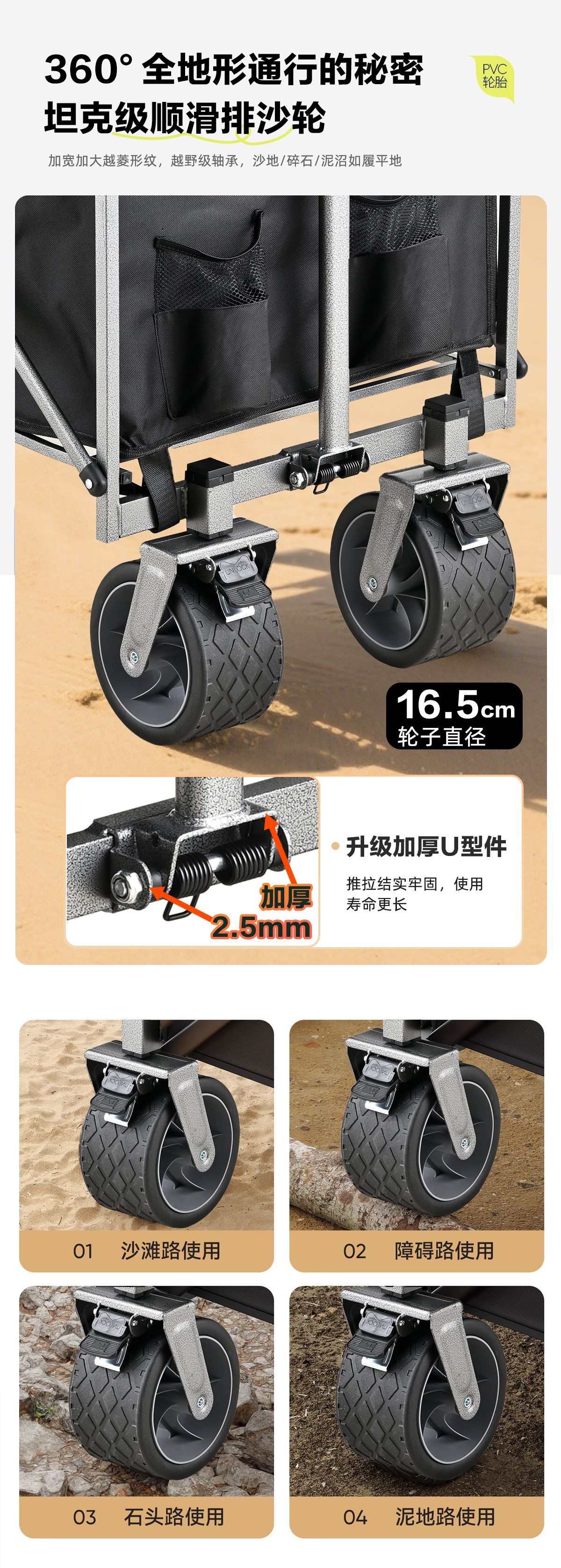 • 카키-[푸시풀 일체형 신형][더블 브레이크 탱크 휠/내하중 200kg ]