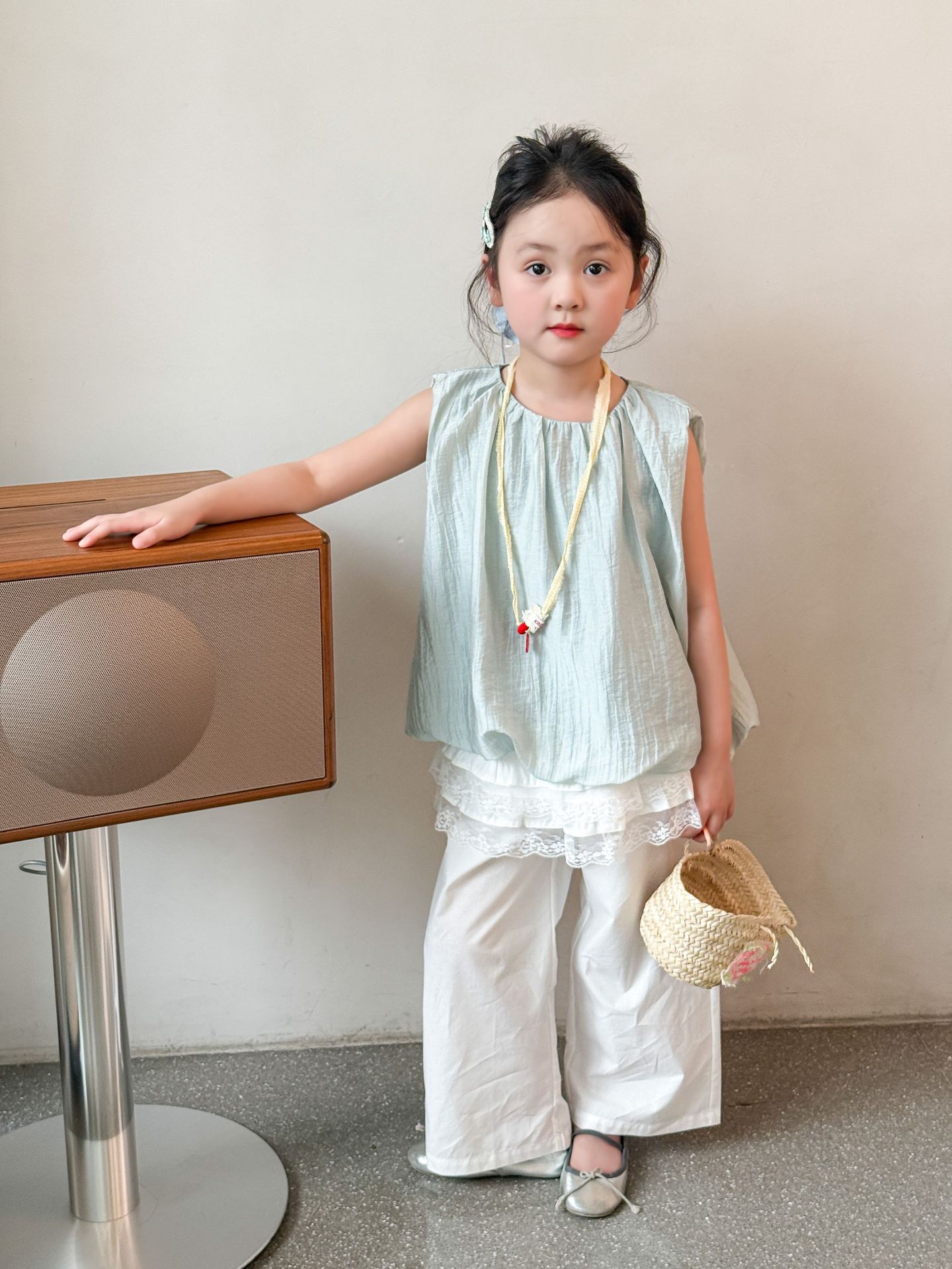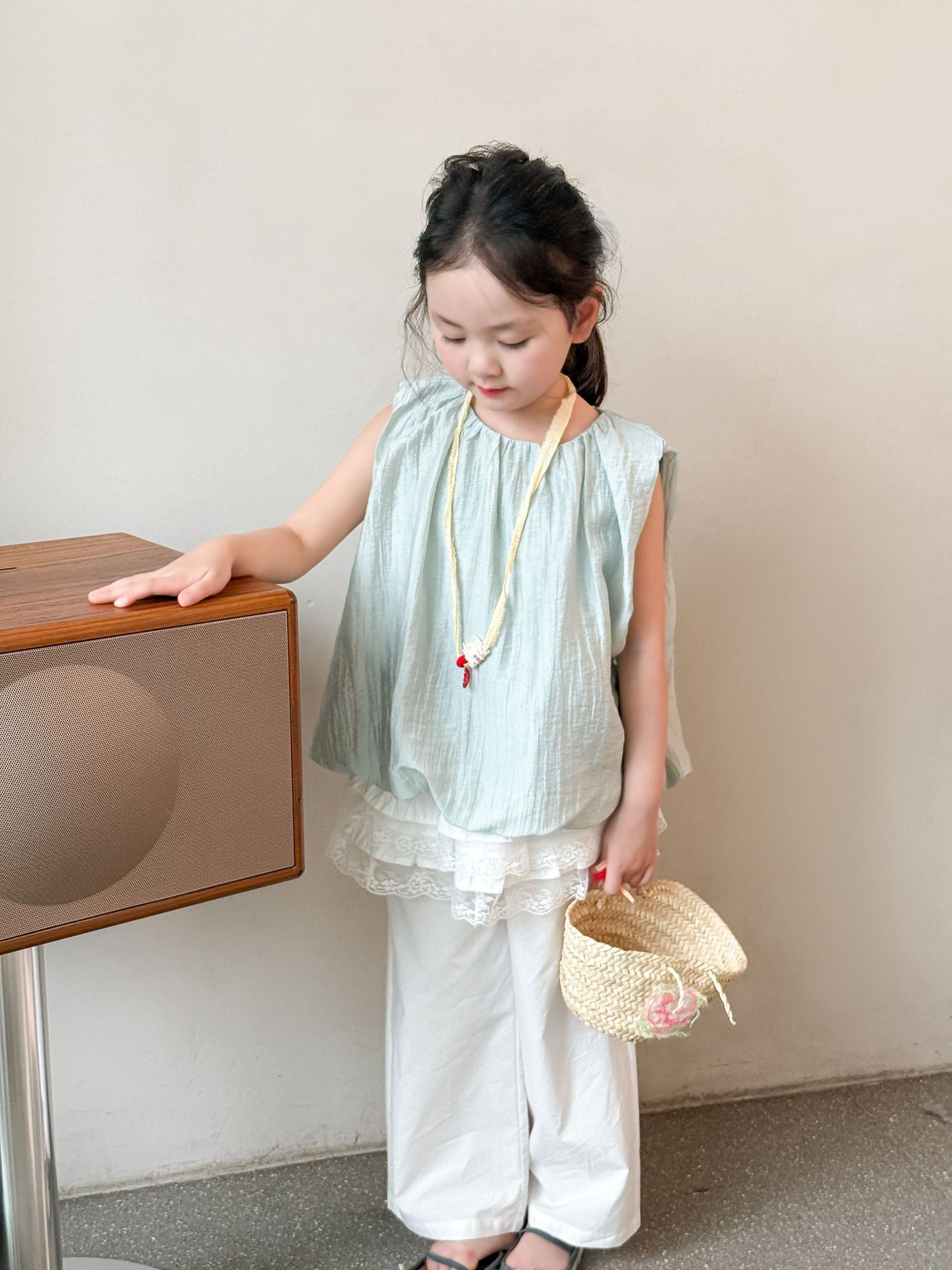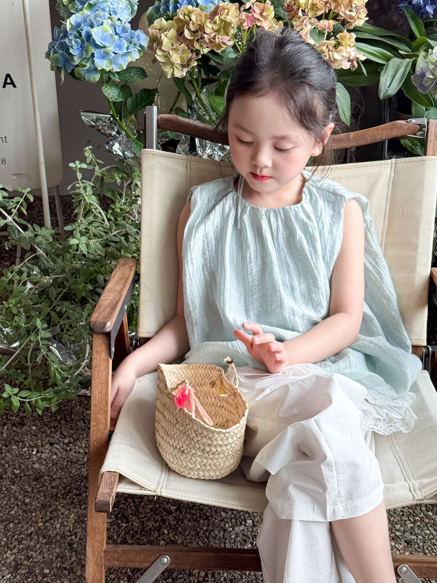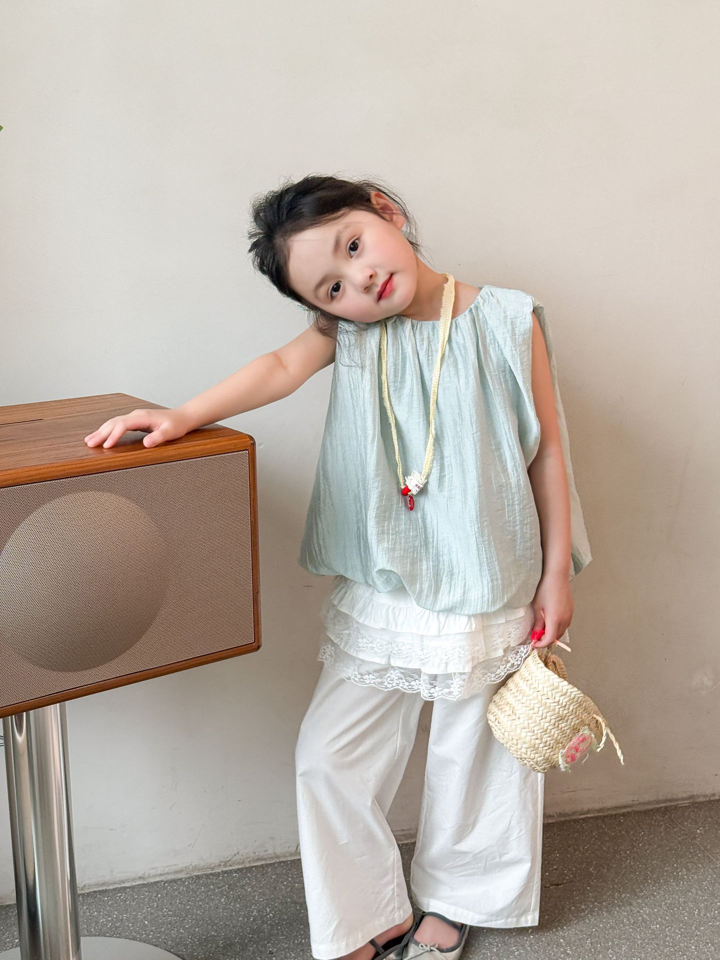 Weimu 아동 의류 소녀 셔츠 여름 얇은 2025 새로운 어린이 민소매 인형 셔츠 탑 카테고리 a 아기 옷