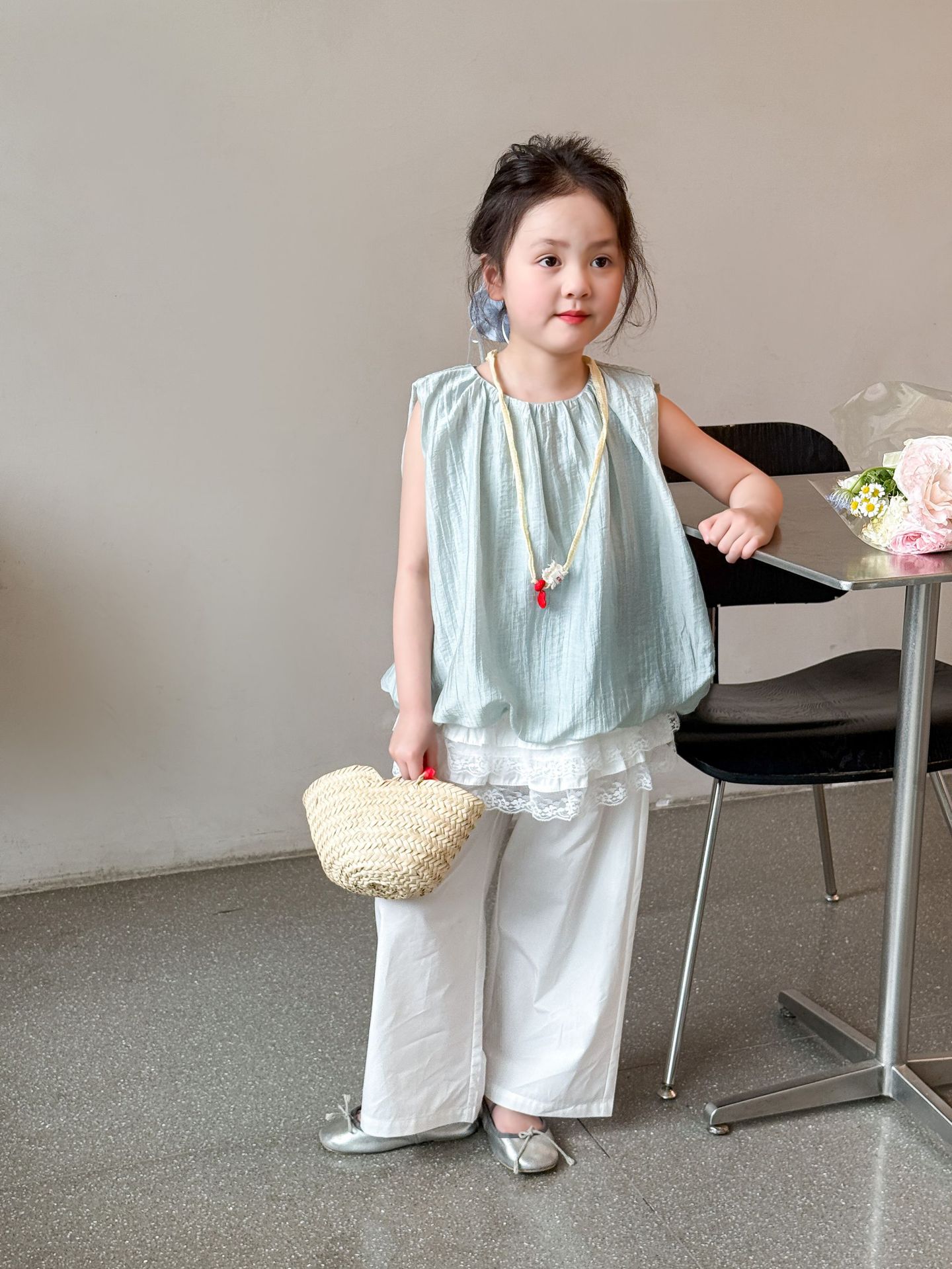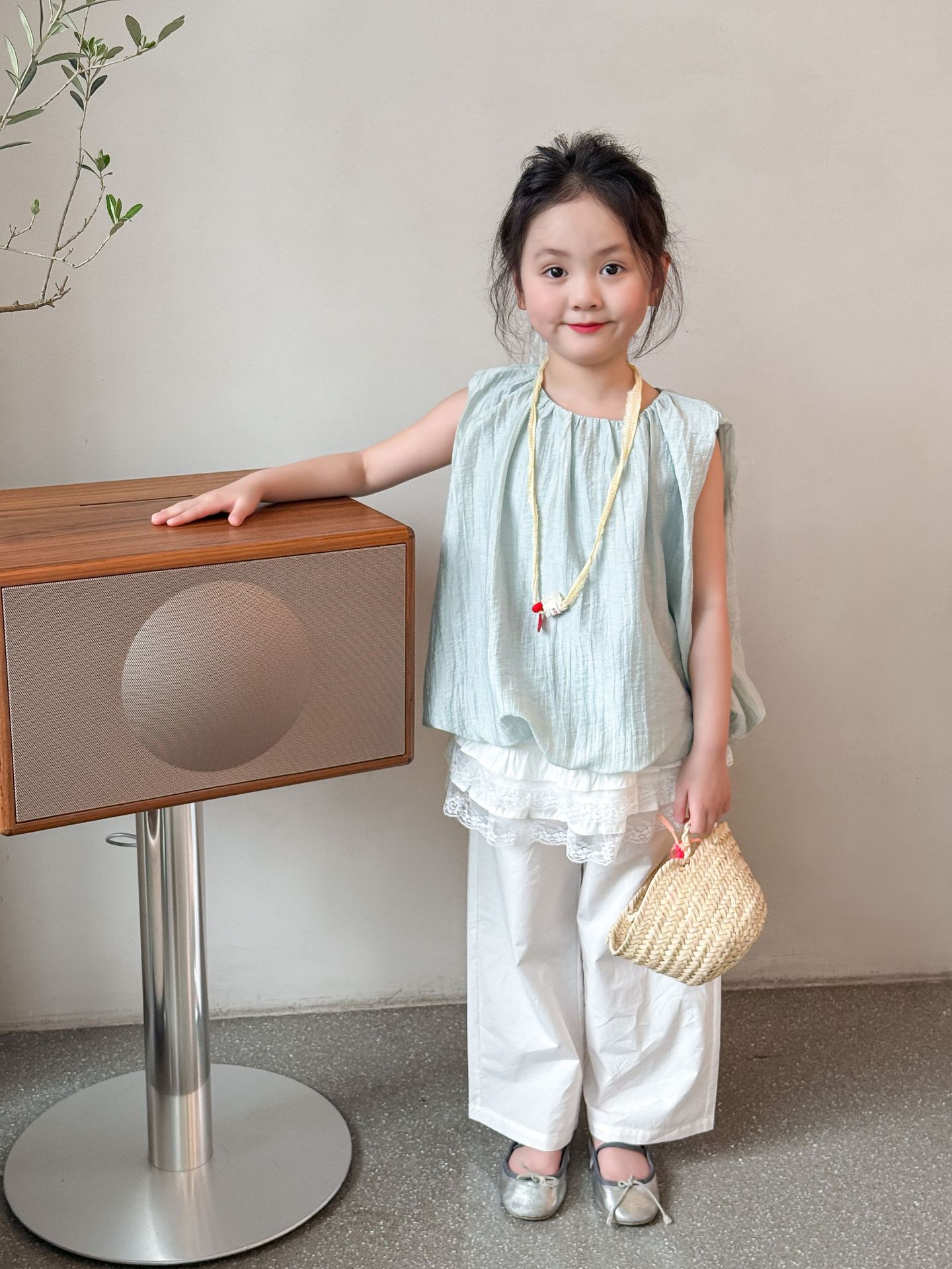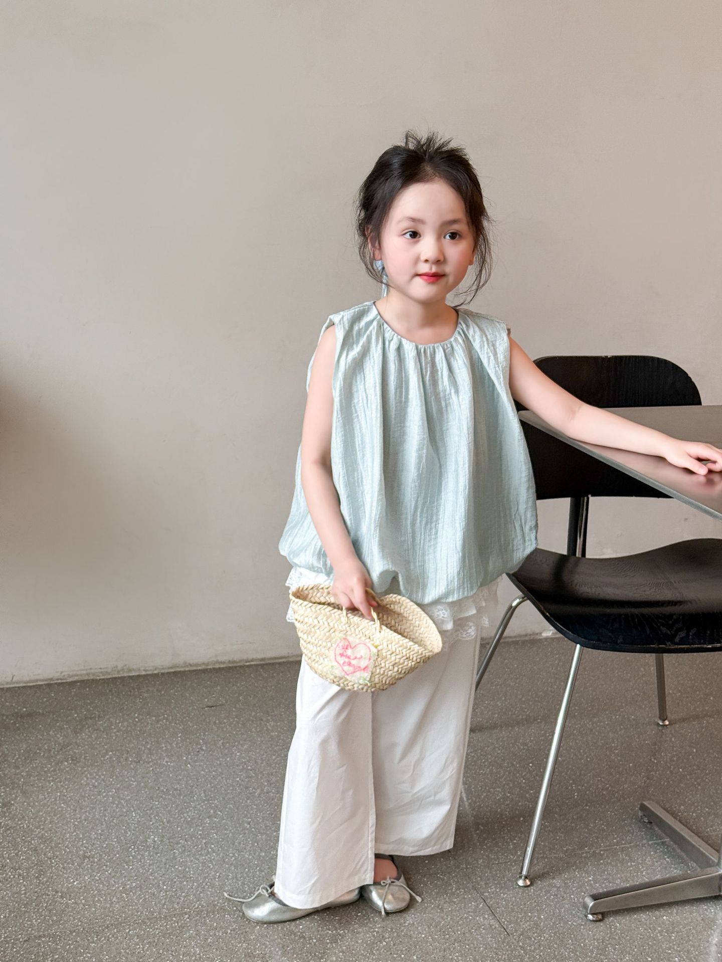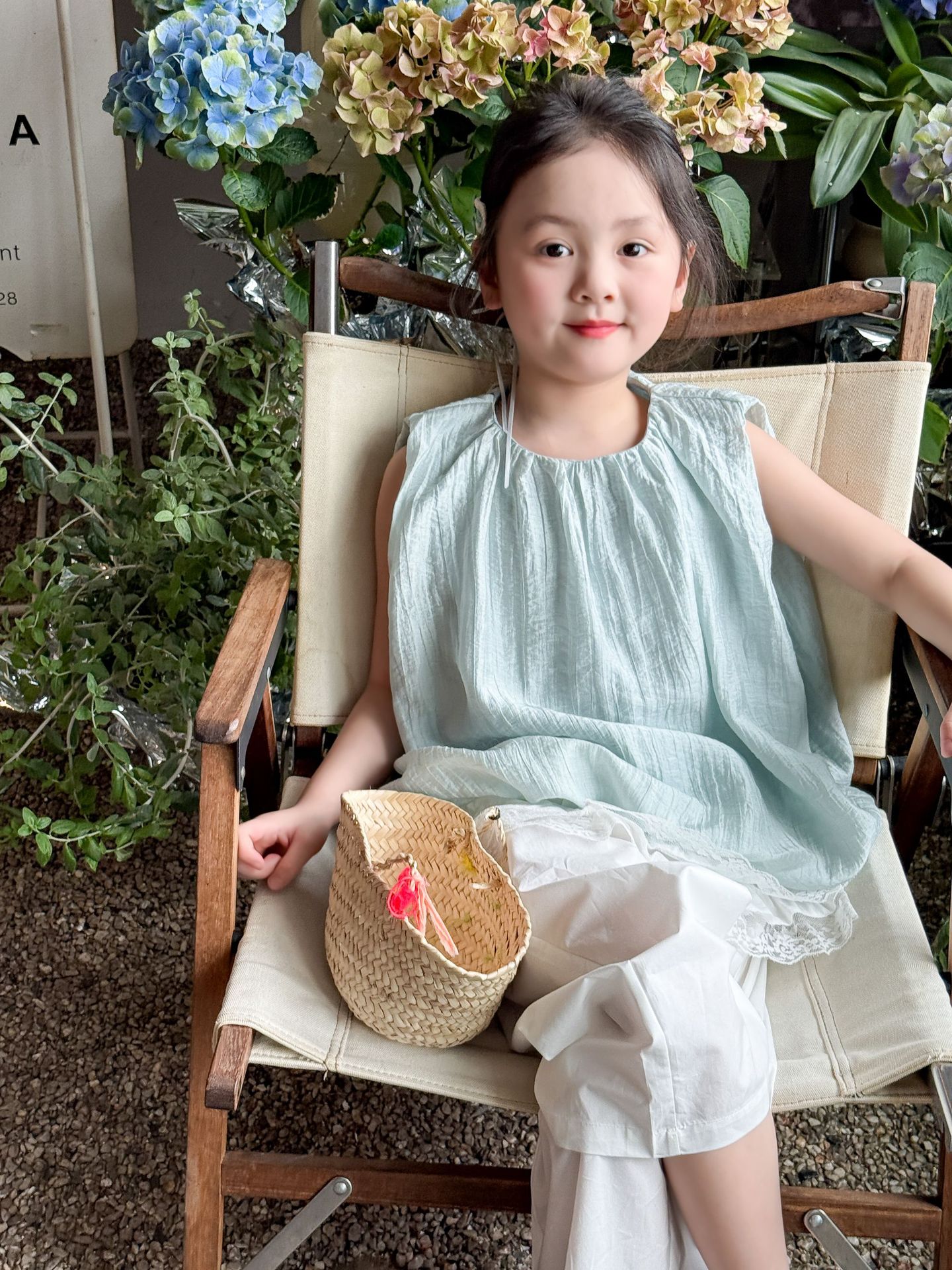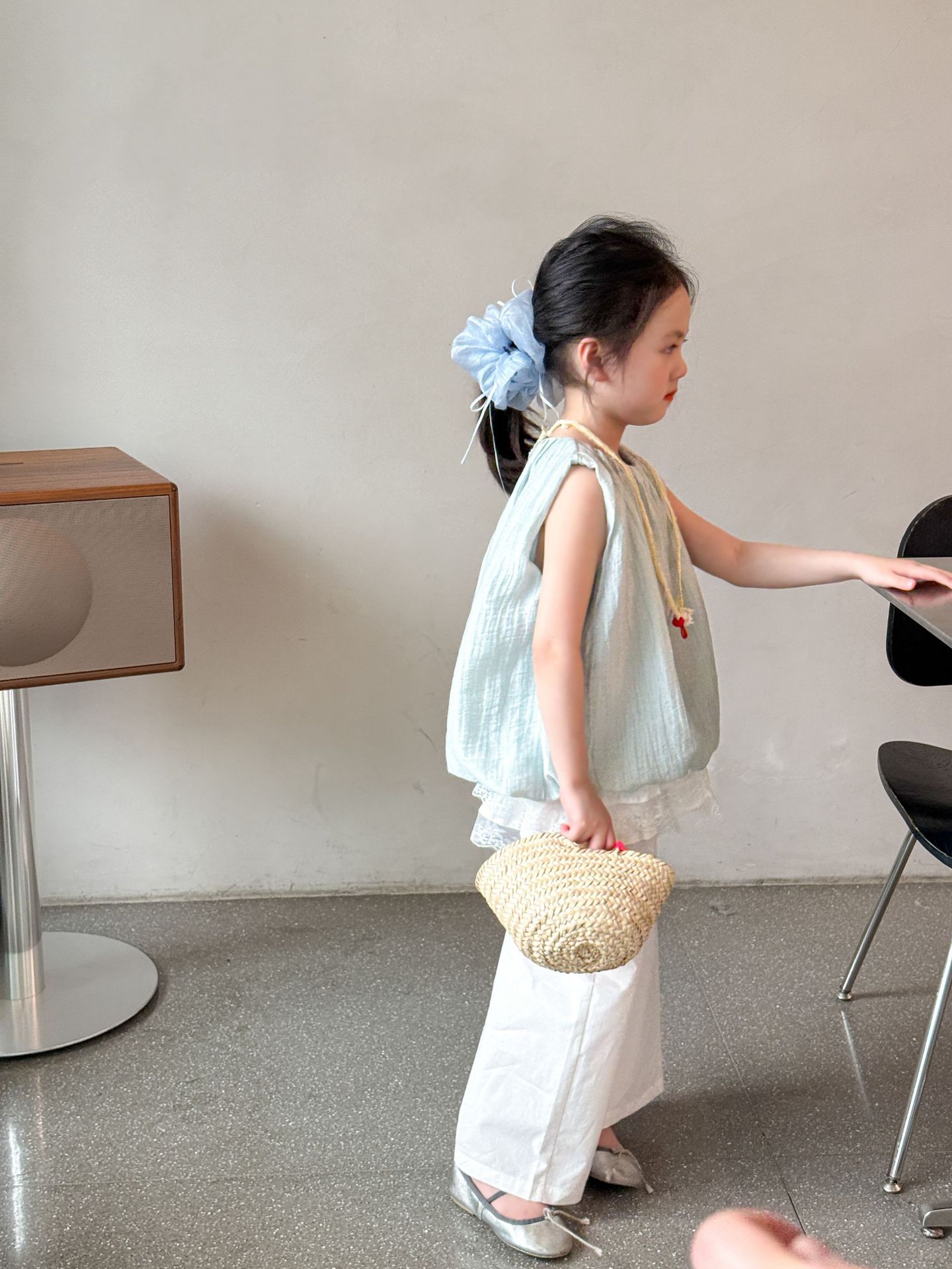 Weimu 아동 의류 소녀 셔츠 여름 얇은 2025 새로운 어린이 민소매 인형 셔츠 탑 카테고리 a 아기 옷