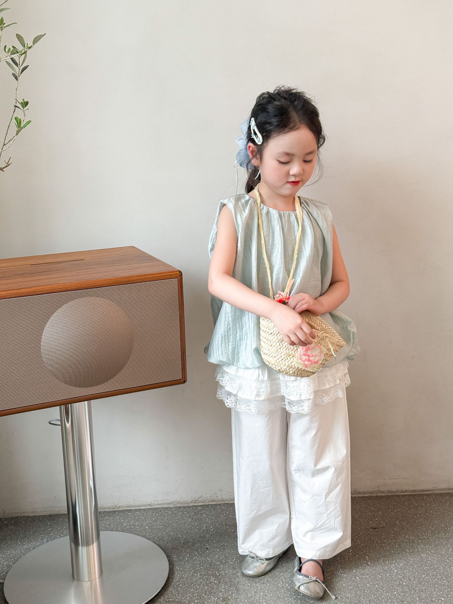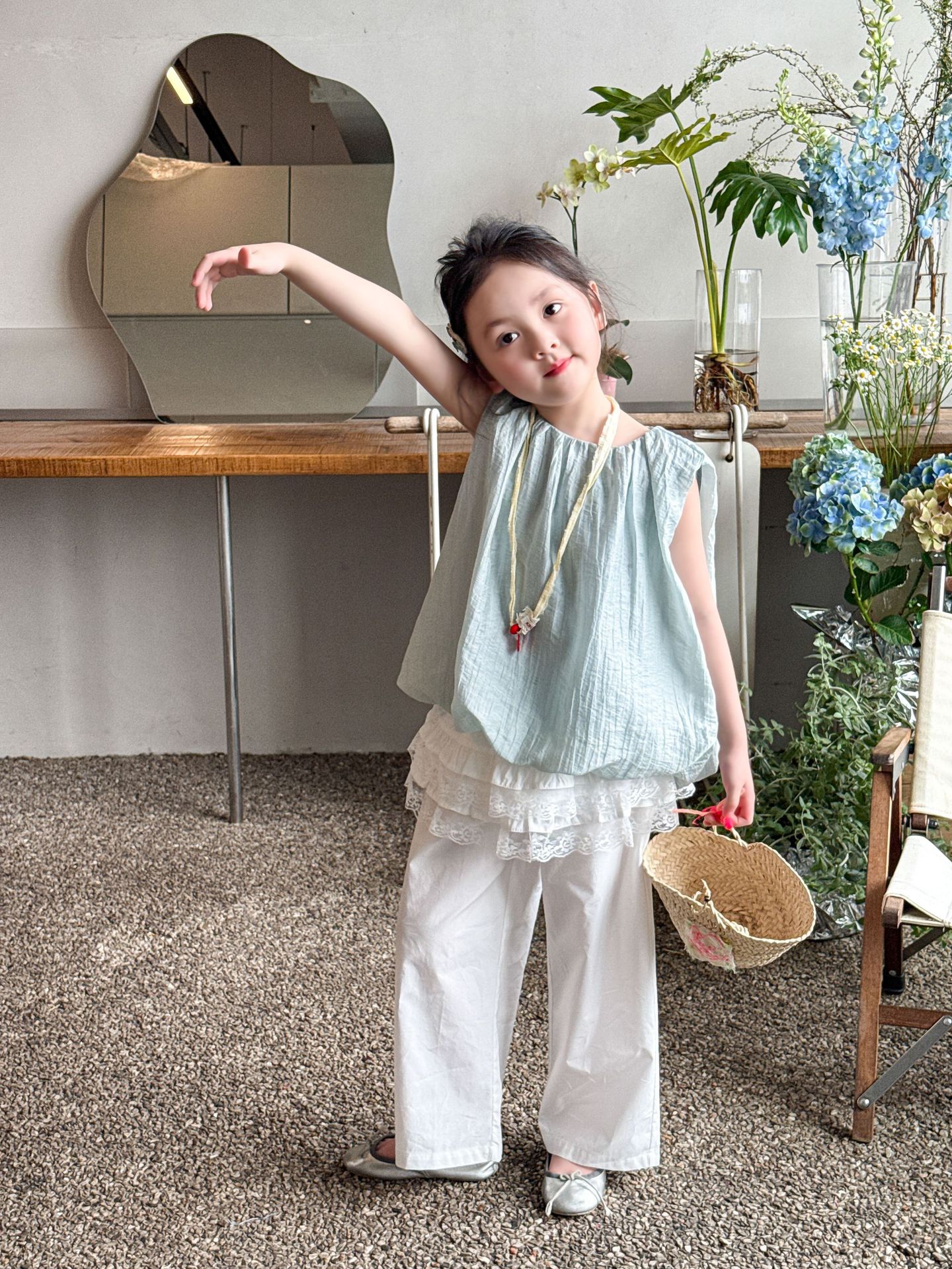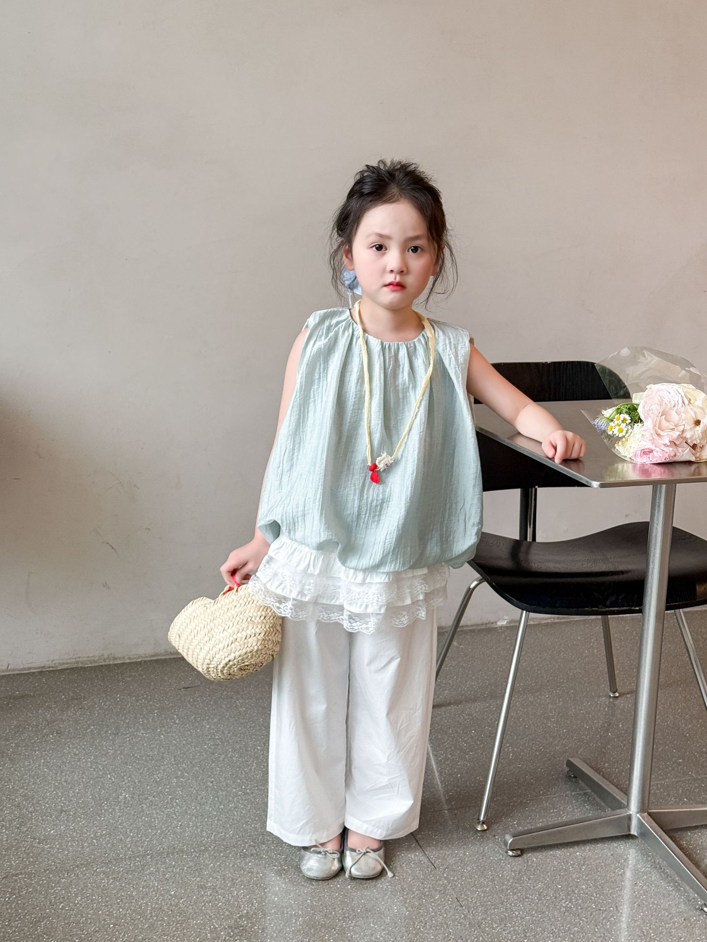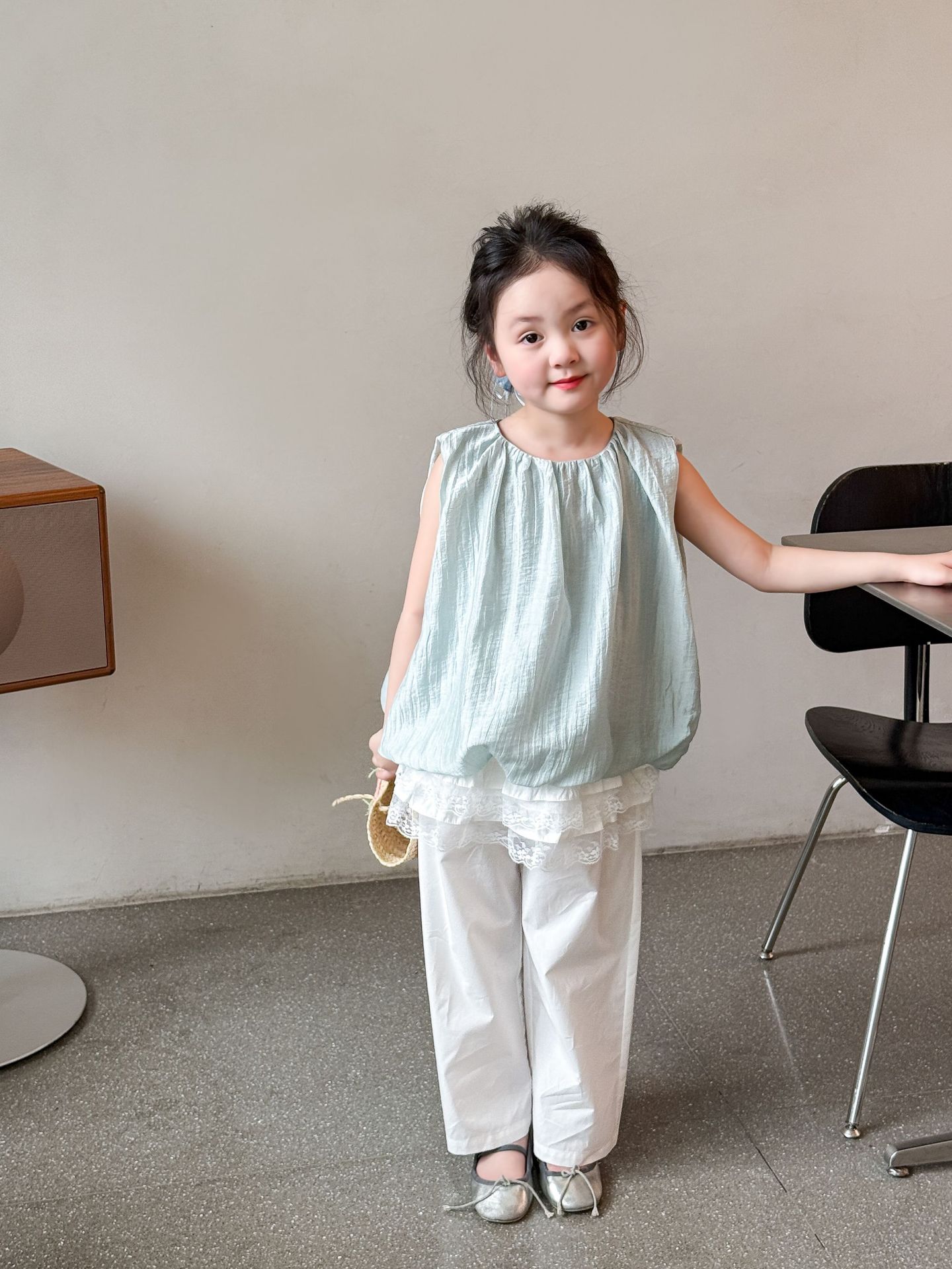 Weimu 아동 의류 소녀 셔츠 여름 얇은 2025 새로운 어린이 민소매 인형 셔츠 탑 카테고리 a 아기 옷