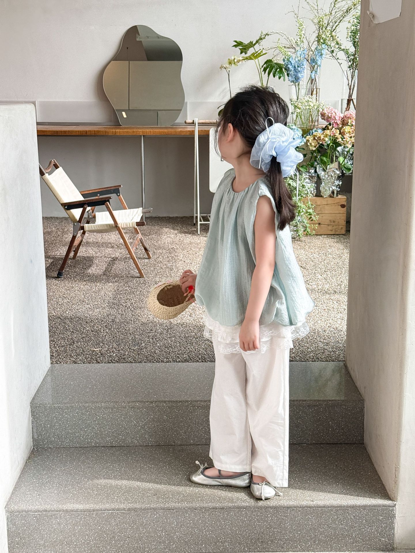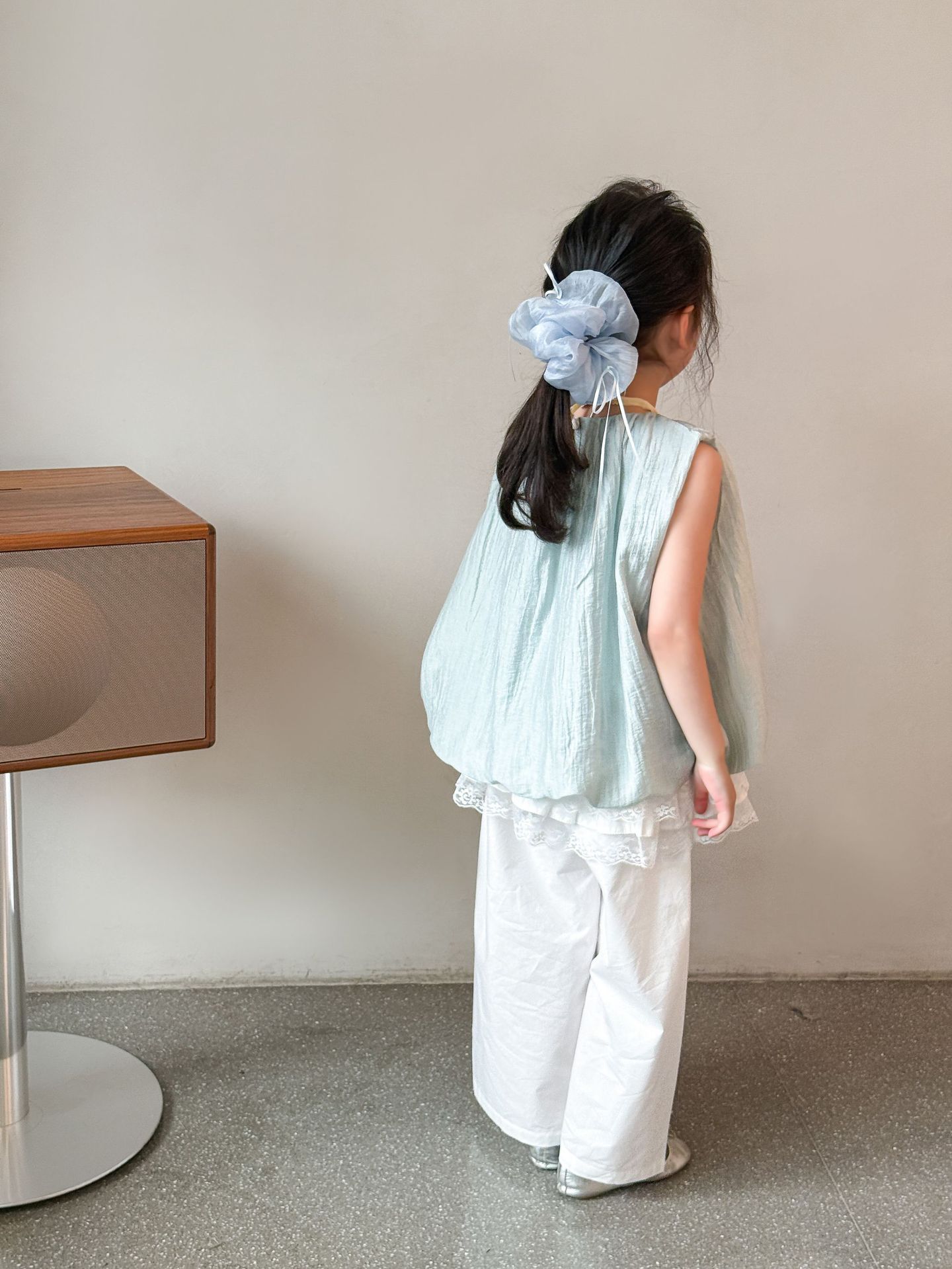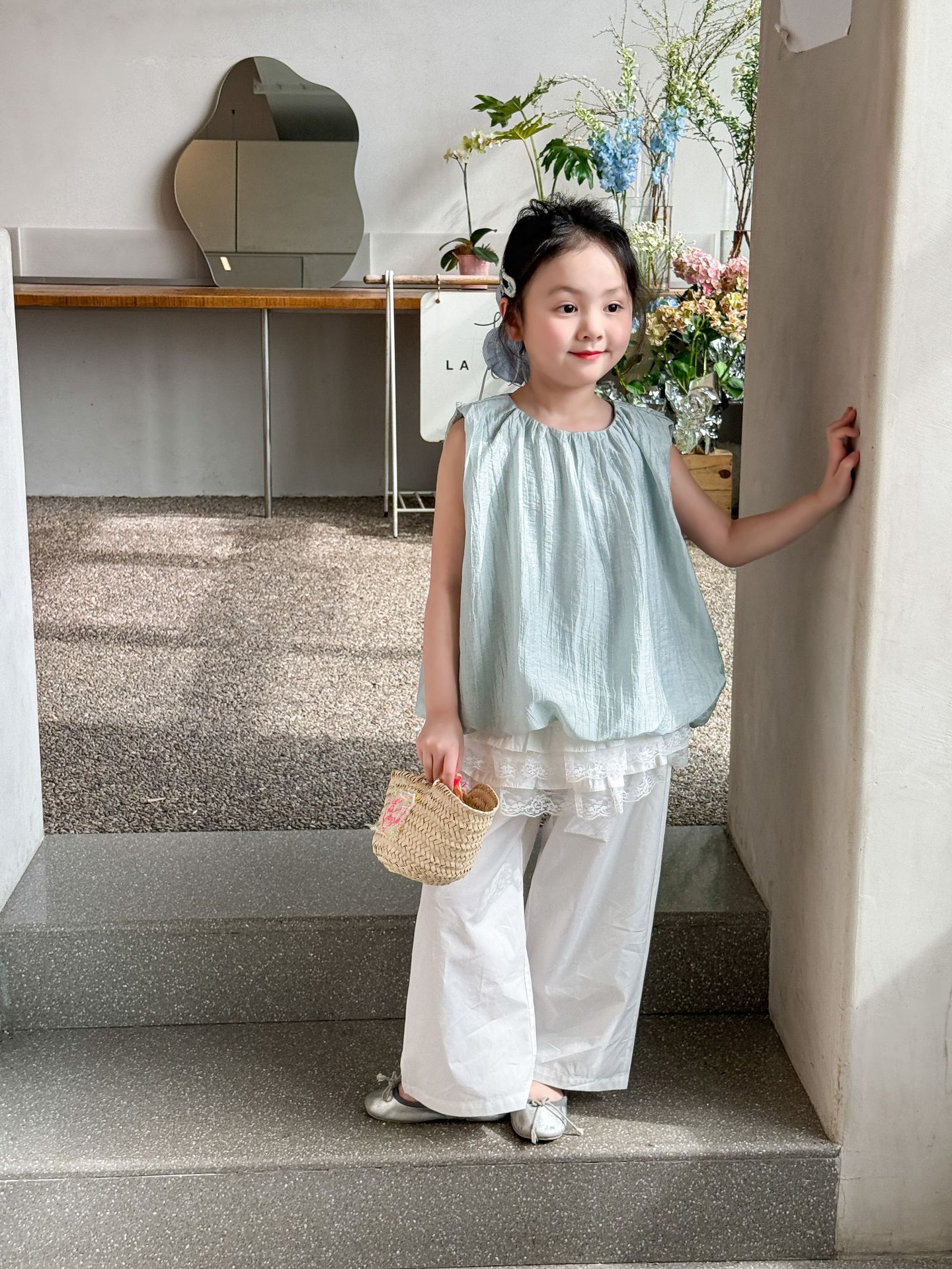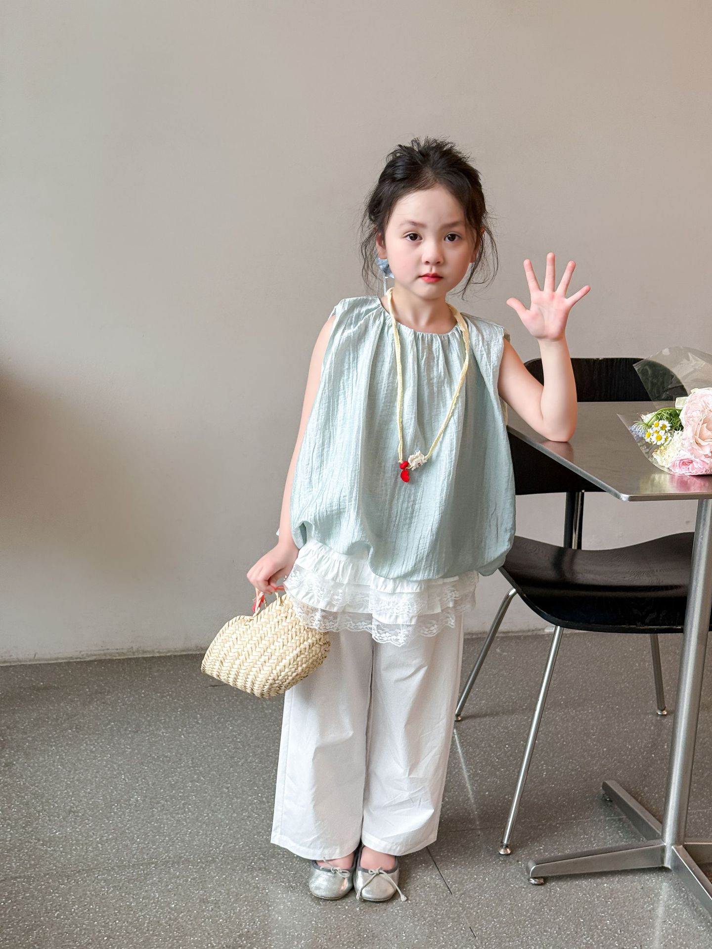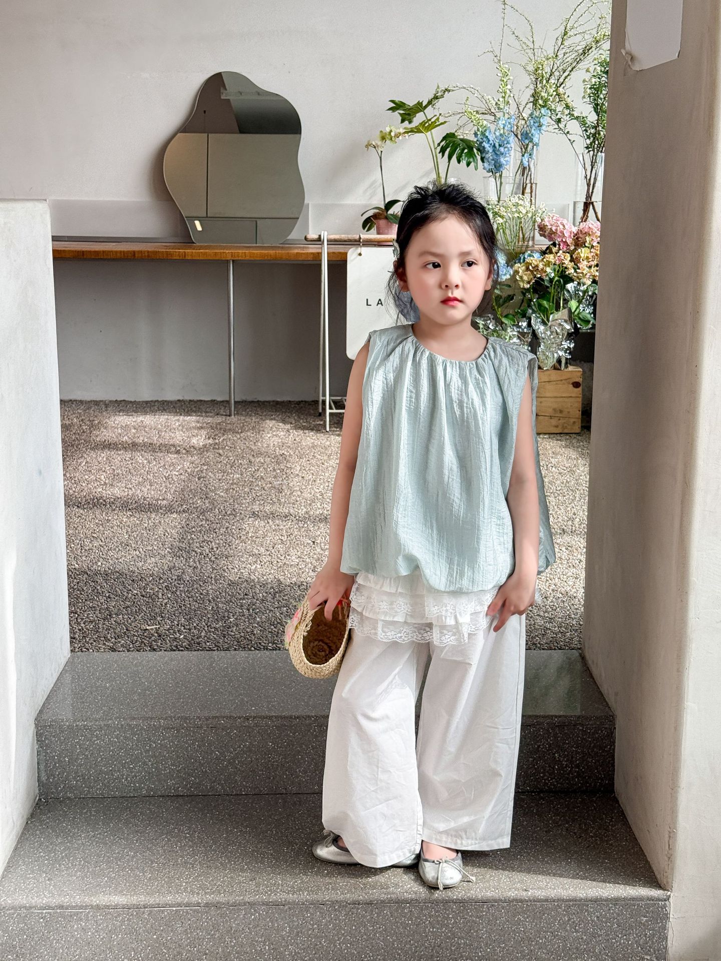 Weimu 아동 의류 소녀 셔츠 여름 얇은 2025 새로운 어린이 민소매 인형 셔츠 탑 카테고리 a 아기 옷