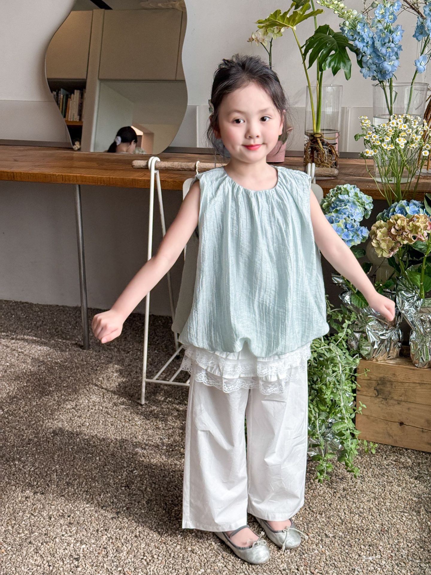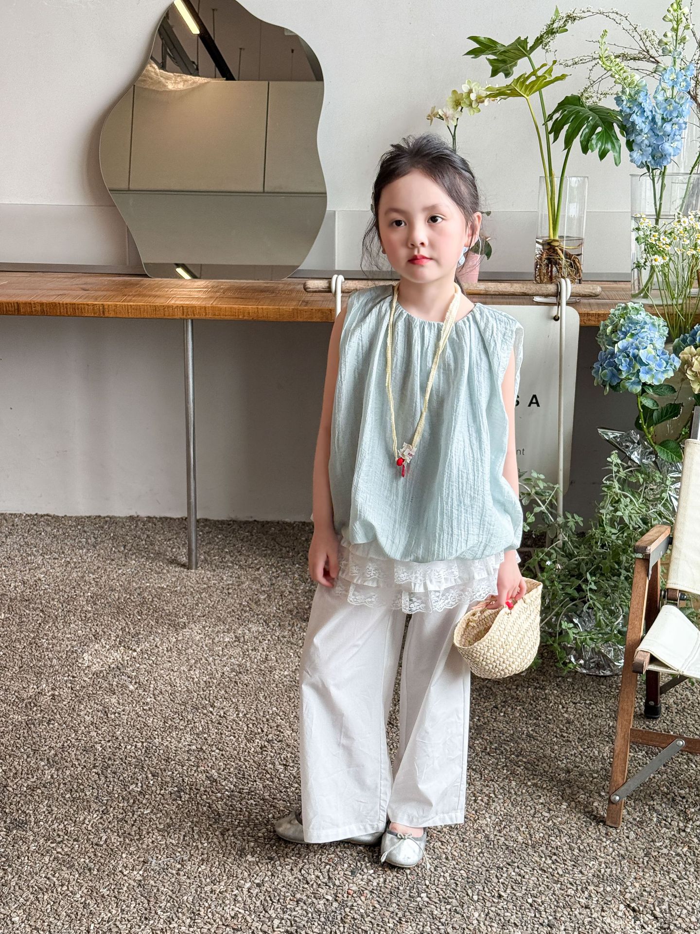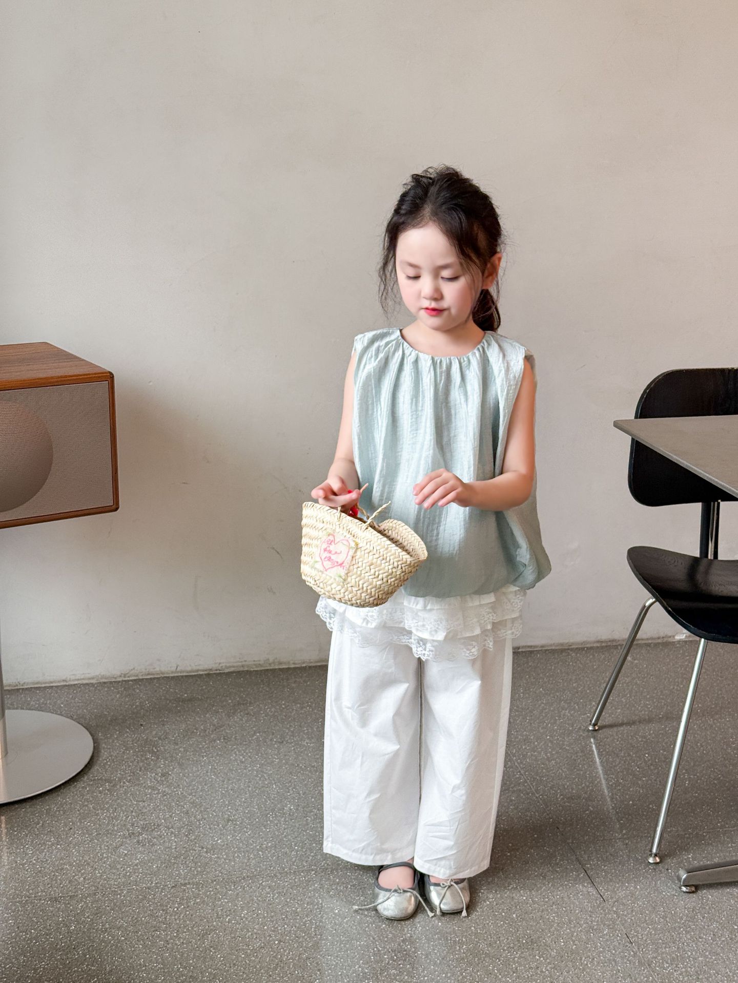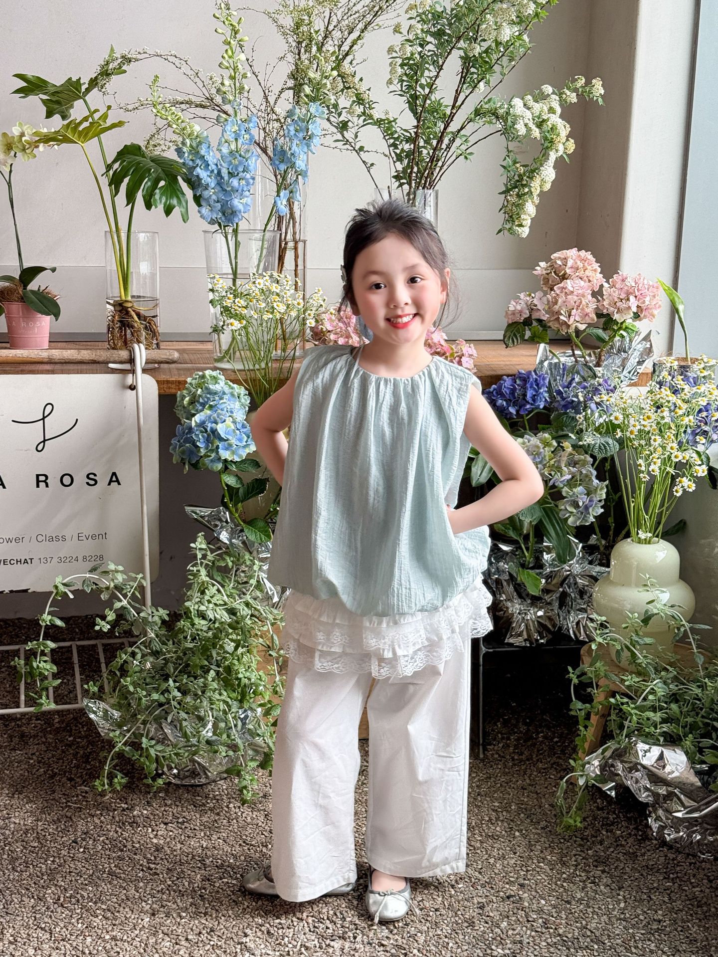 Weimu 아동 의류 소녀 셔츠 여름 얇은 2025 새로운 어린이 민소매 인형 셔츠 탑 카테고리 a 아기 옷