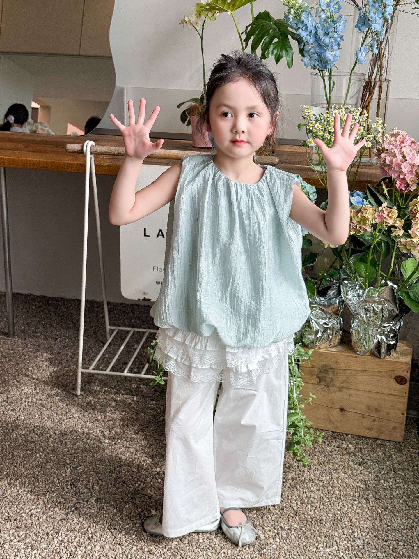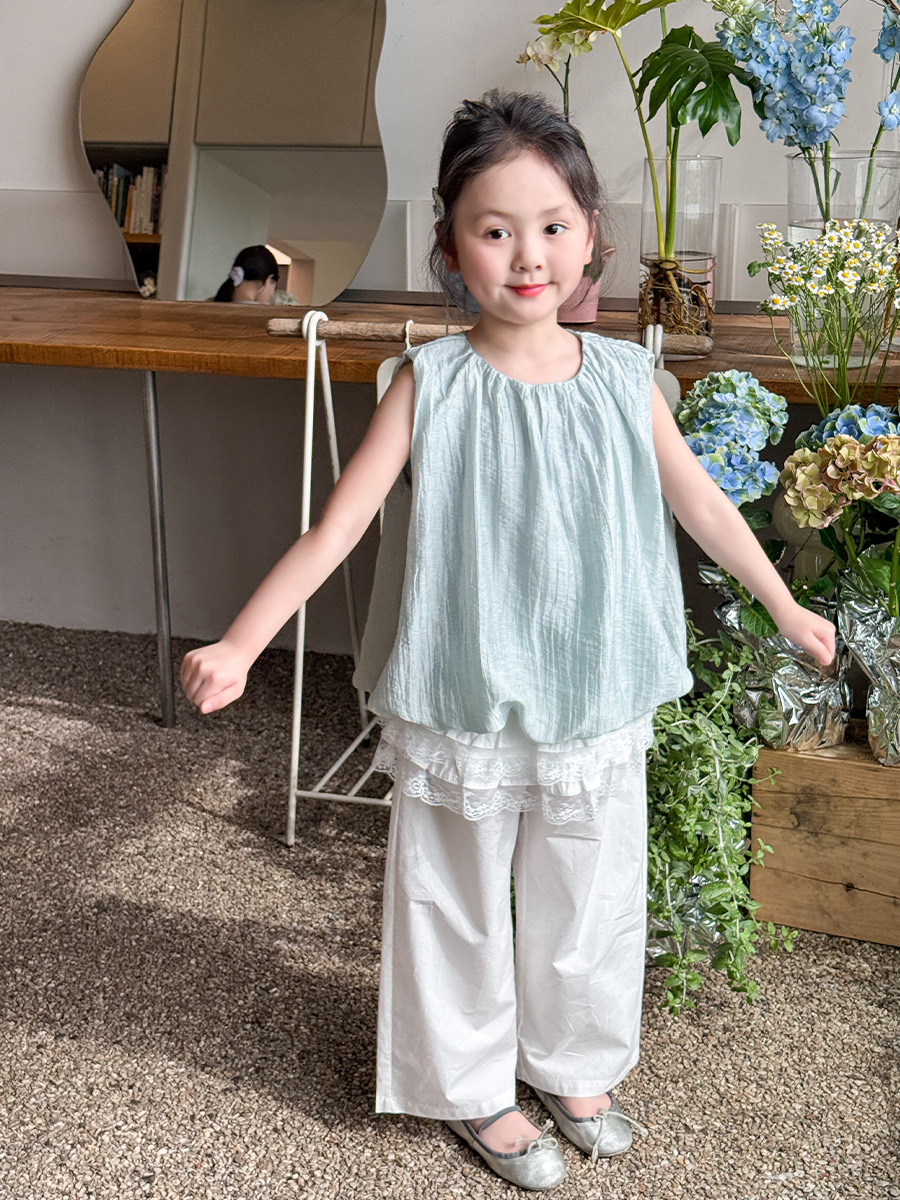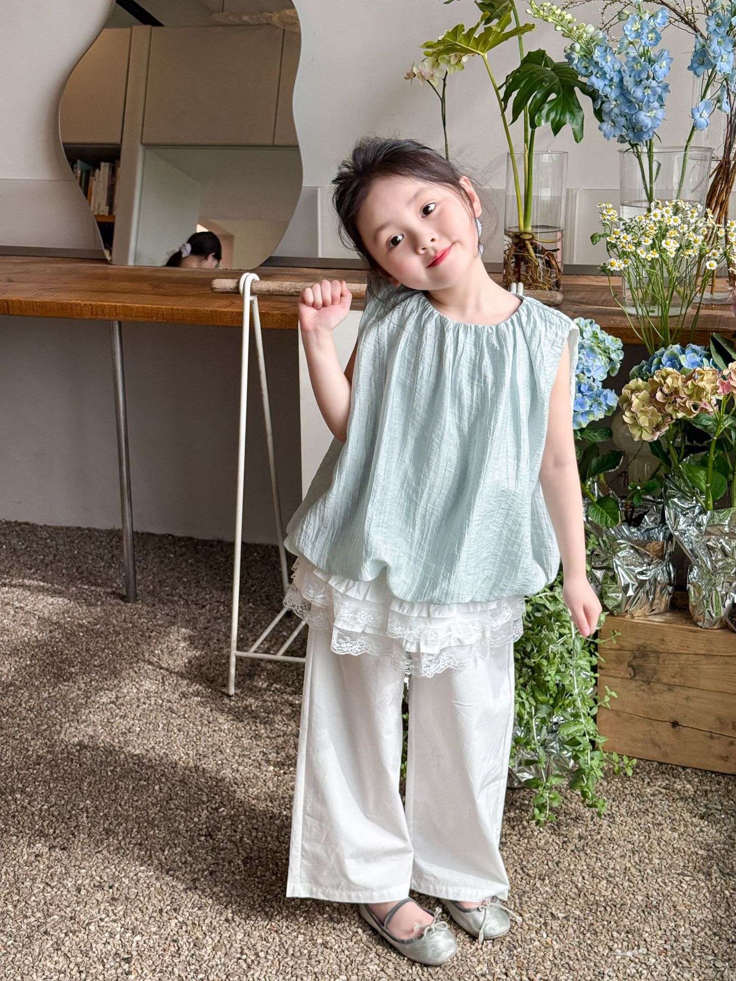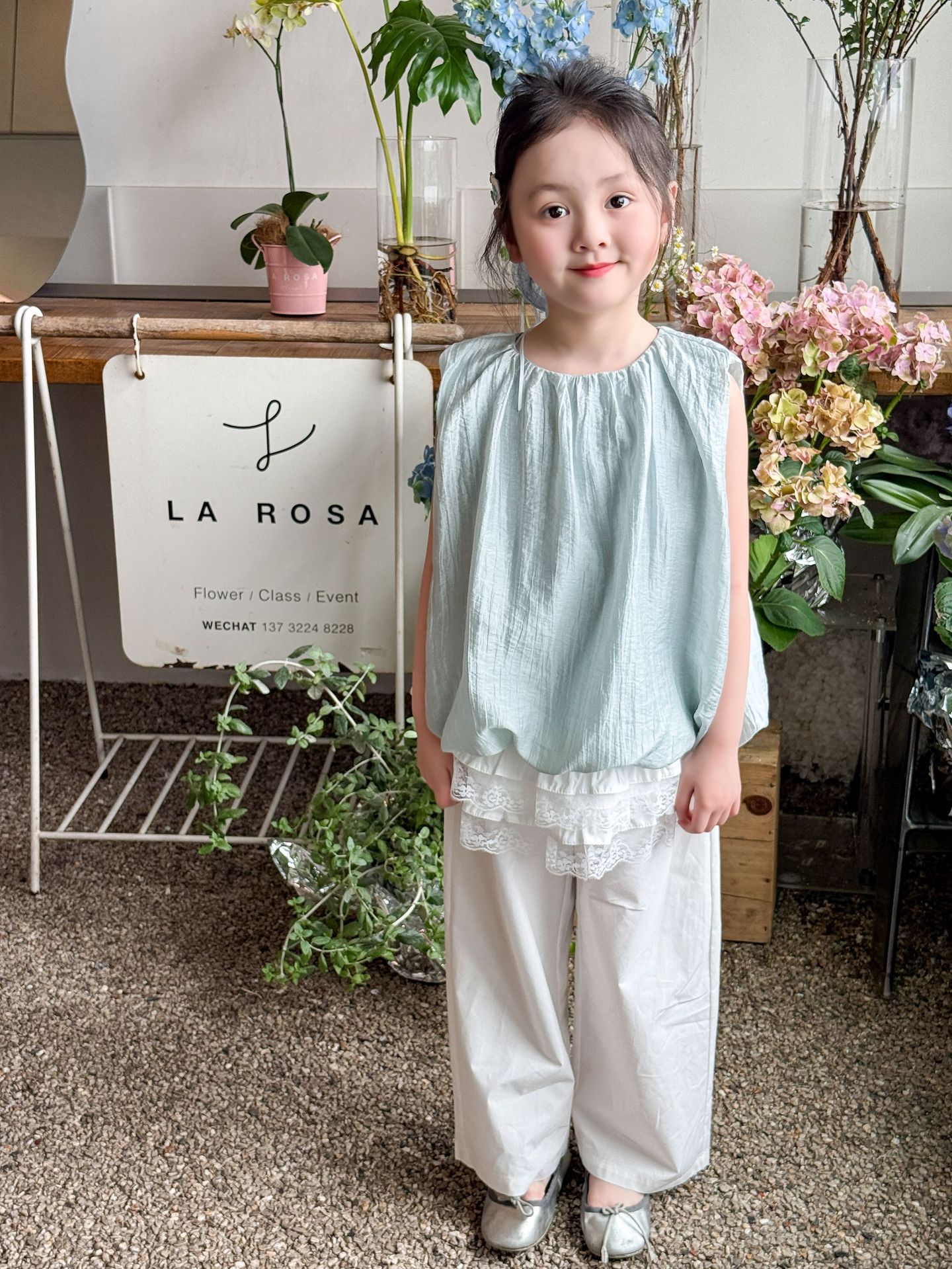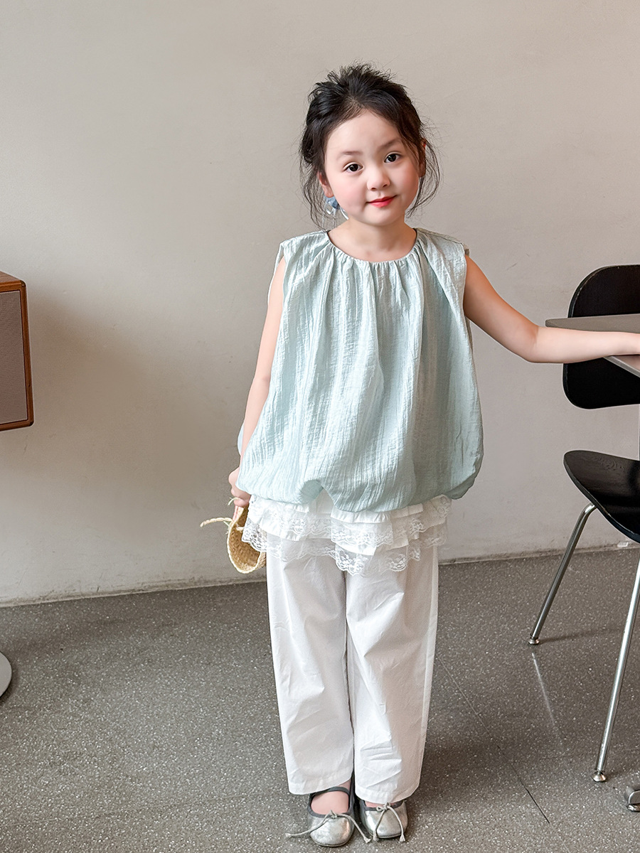 Weimu 아동 의류 소녀 셔츠 여름 얇은 2025 새로운 어린이 민소매 인형 셔츠 탑 카테고리 a 아기 옷