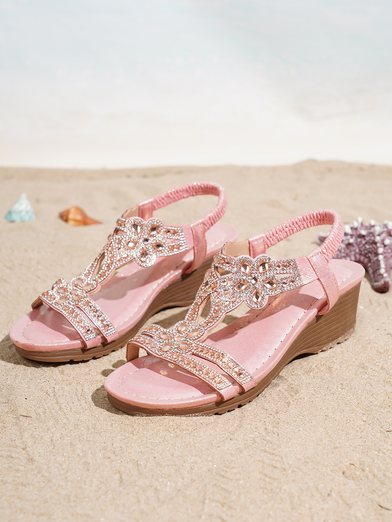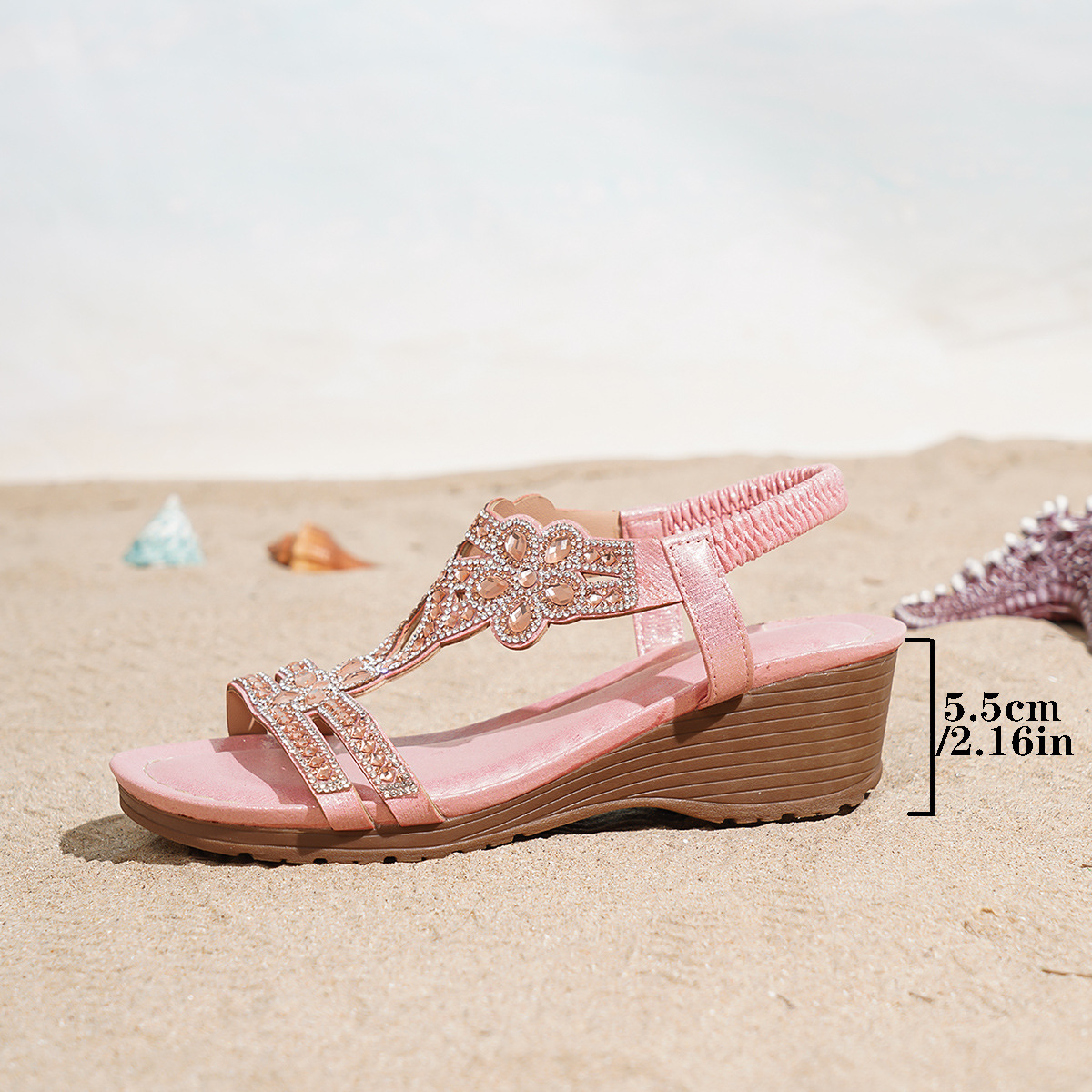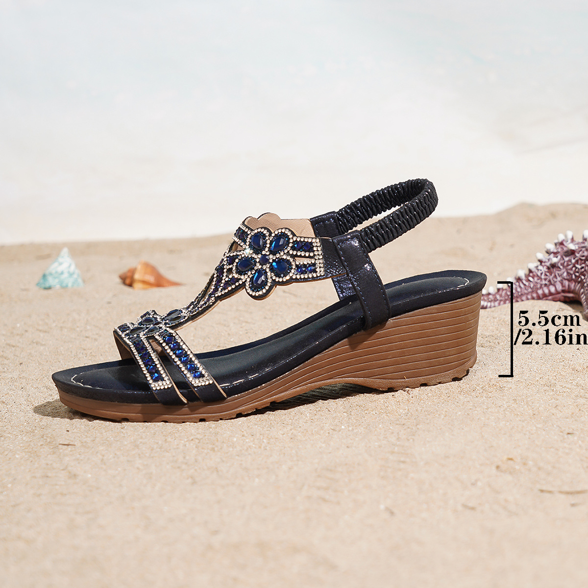 보헤미안 스타일 두꺼운 밑창 웨지힐 샌들, 낮은 굽, 유럽 및 미국 패션, 발이 피곤하지 않은 심플 캐주얼 샌들, 여성화스토어 가기