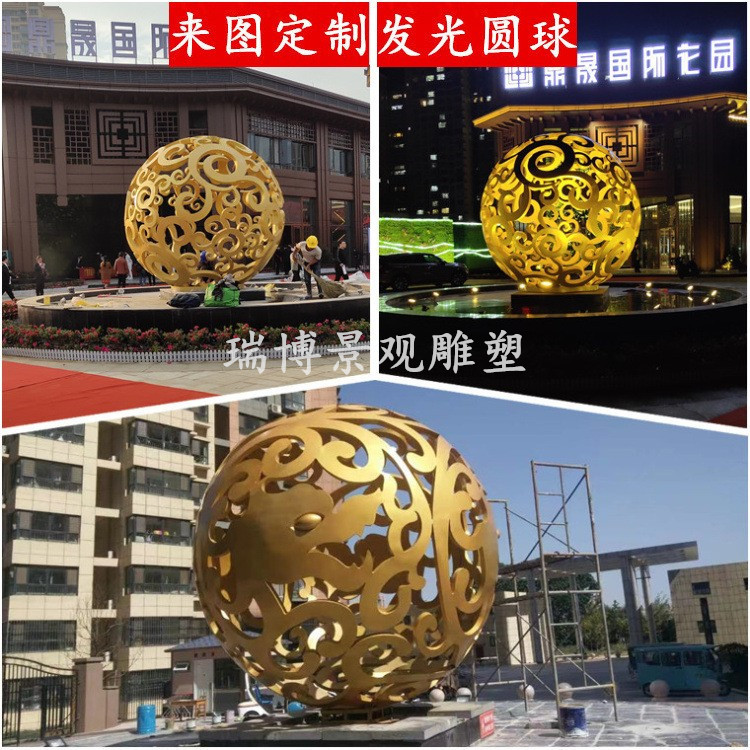 스테인레스 스틸 중공 공 조각 금속 조각 빛나는 공 광장 녹지 지역 철 물 장식 장식품
