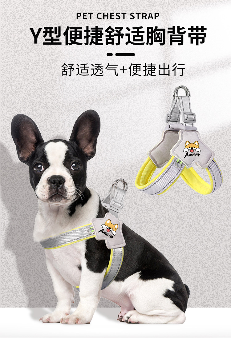 새로운 애완 동물 가슴 스트랩 Y 자형 개 가슴 등 견인 로프 세트 반사 폭발 방지 플러시 개 가슴 백 개 보행 로프스토어 가기