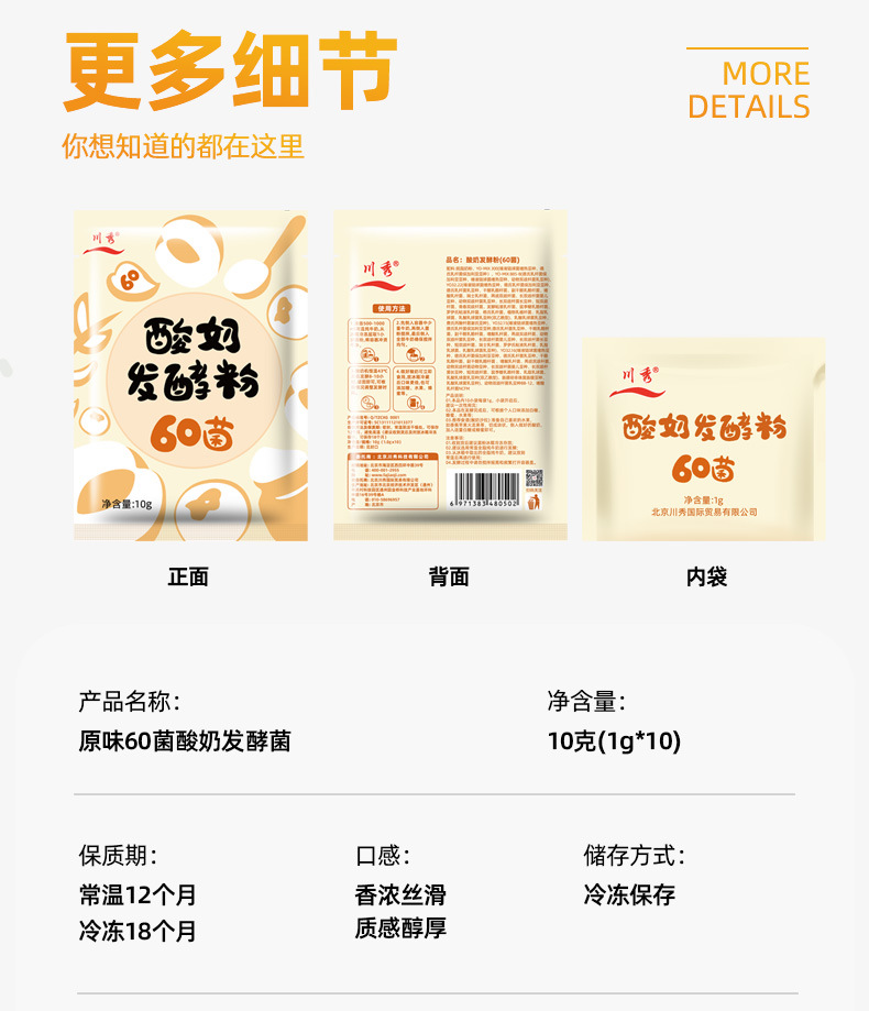 • 10g-패키지 6: 요구르트 2팩(소형 봉지 20개) + 다기능 요구르트 기계