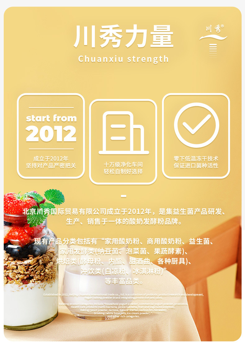 Chuanxiu 60 박테리아 요구르트 발효 박테리아 Bifidobacterium 가정용 건조 침 및 건조 저온 추출 요구르트 분말 10g/팩