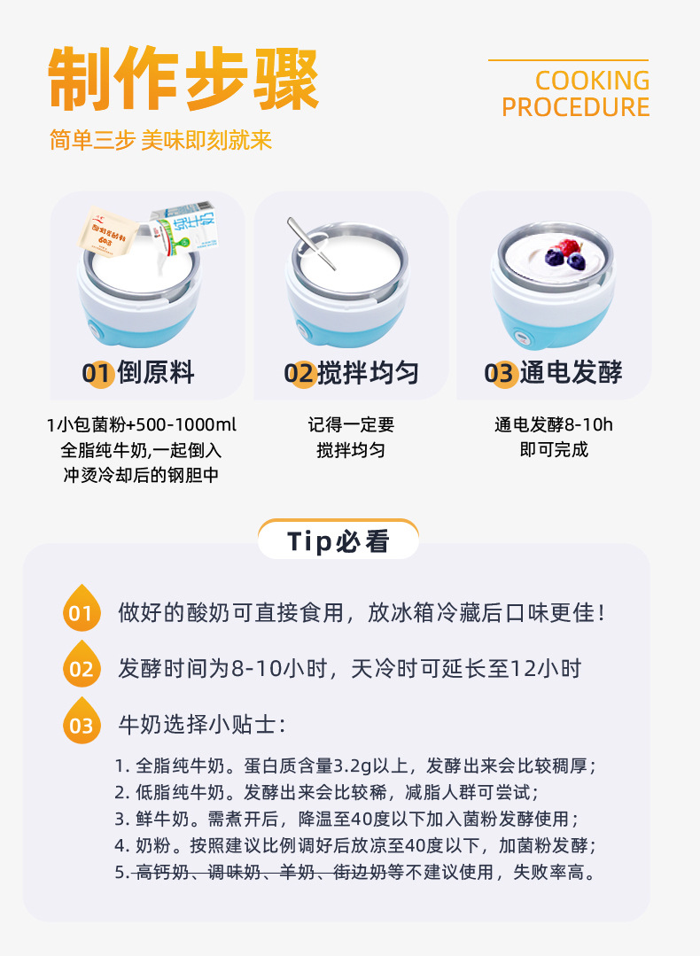• 10g-패키지 4: 요구르트 2팩(소형 봉지 20개) + 가정용 304 요구르트 기계