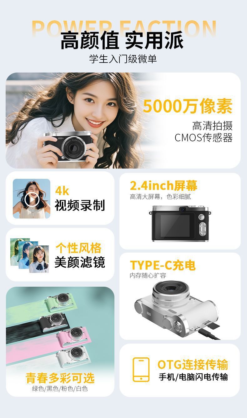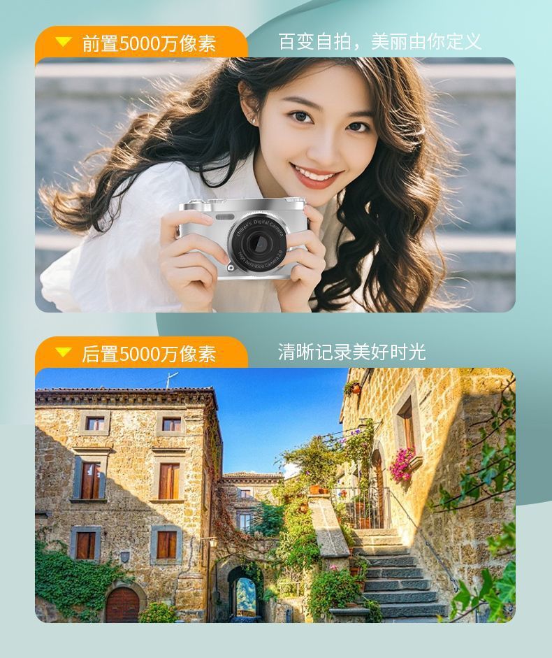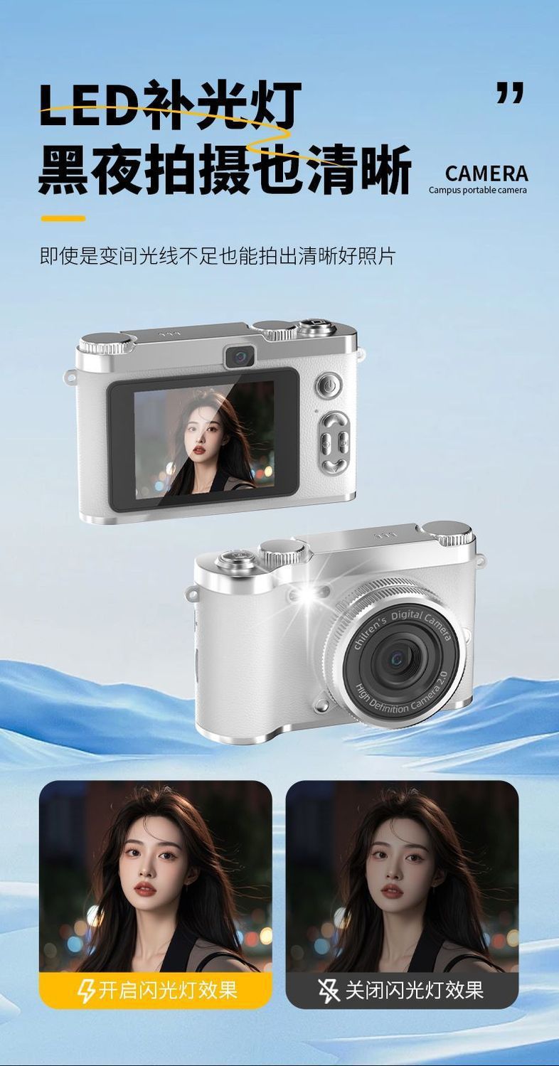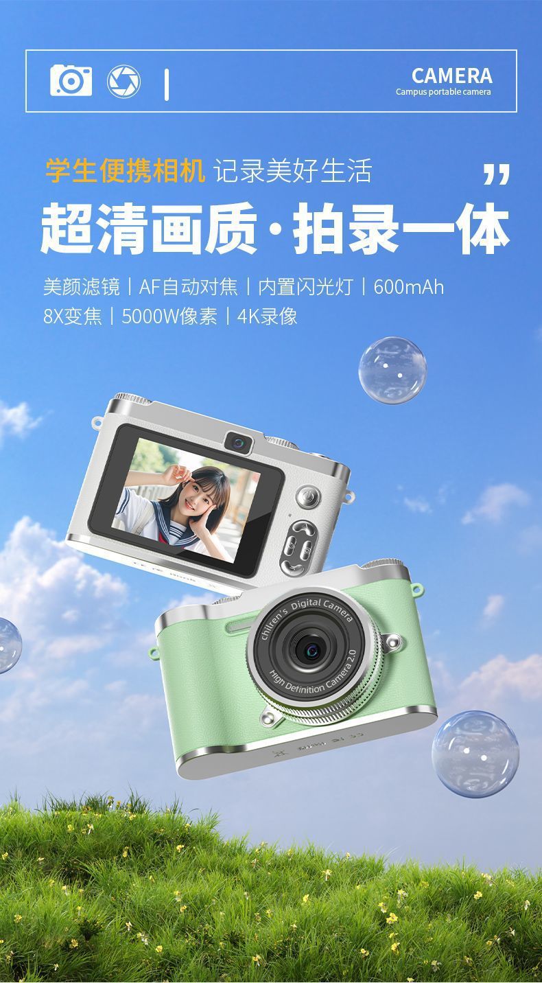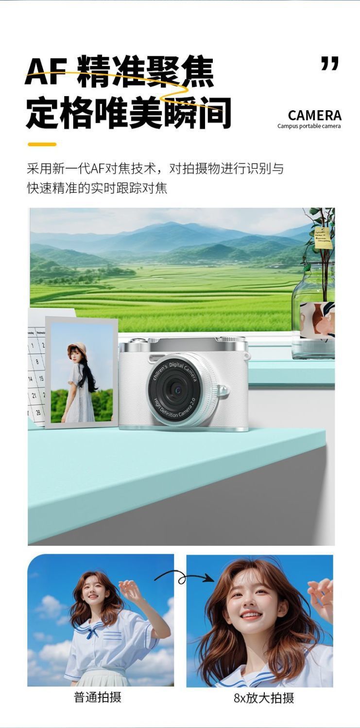 레트로 스타일의 입문용 CCD 카드형 카메라, 초고화질 듀얼 카메라, 8배 줌, 여행 사진 촬영, 휴대용, 학생용 포켓 디지털 카메라