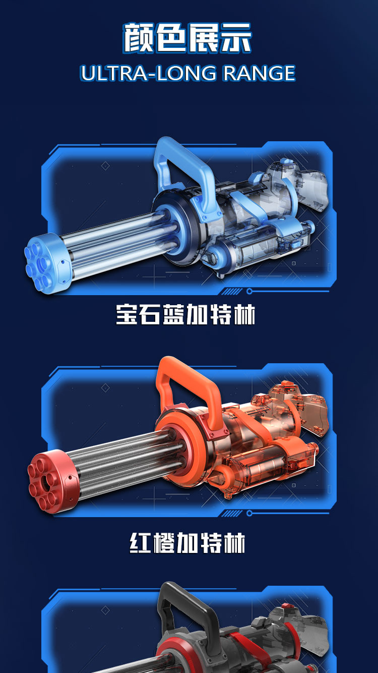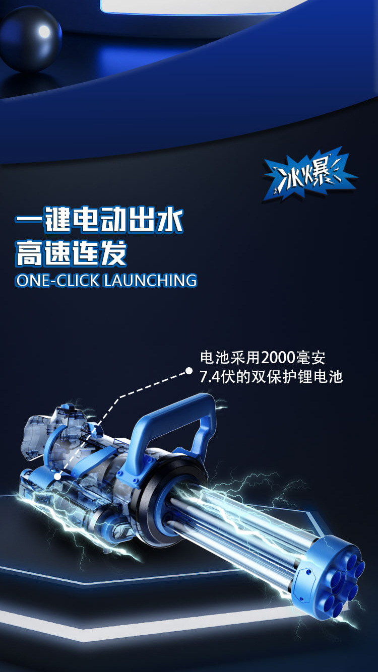 새로운 얼음 폭발 개틀링 물총 전기 연속 고압 강력한 어린이 장난감 성인 물 싸움 물총