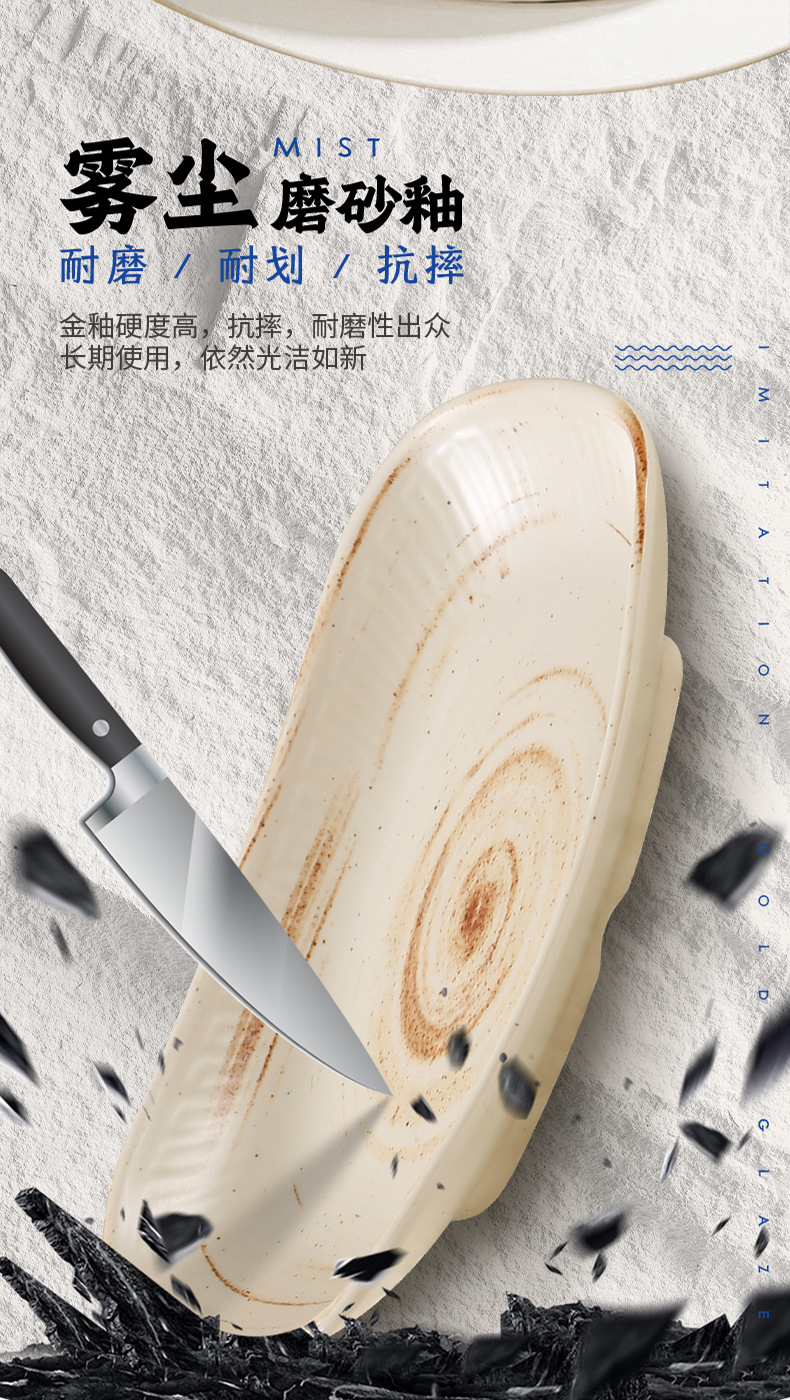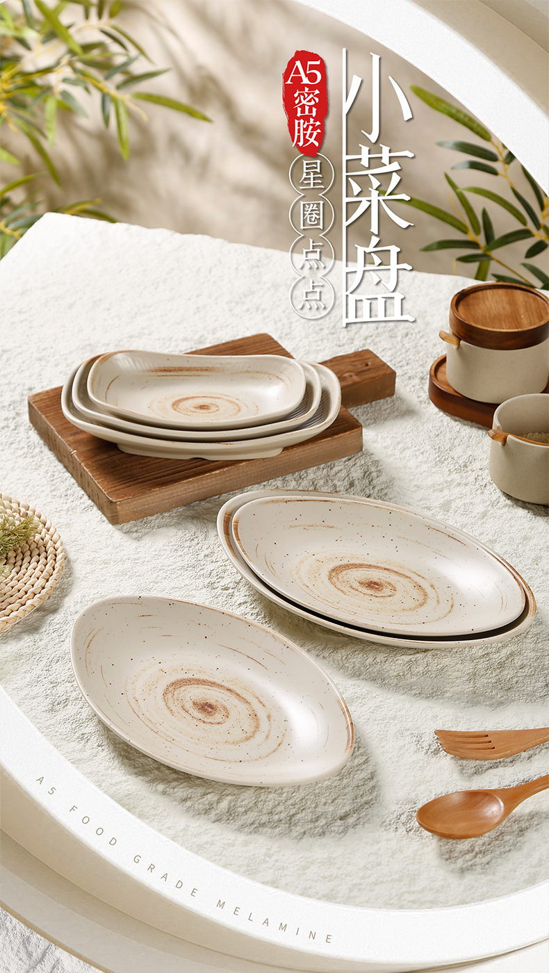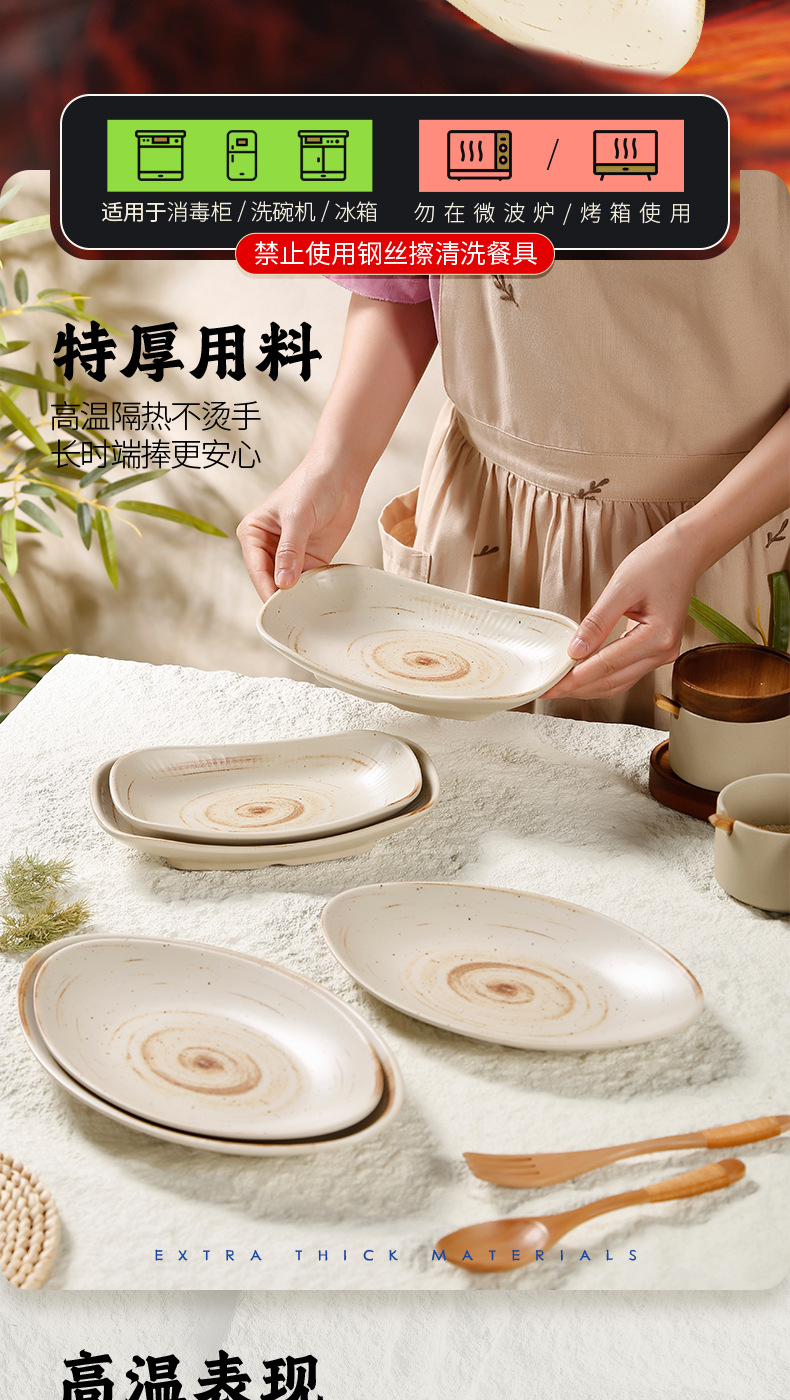 멜라민 플레이트 일본 와규 타원형 플레이트 바베큐 접시 냄비 신선한 컷 쇠고기 플레이트 모방 도자기 반찬 상업 도매스토어 가기