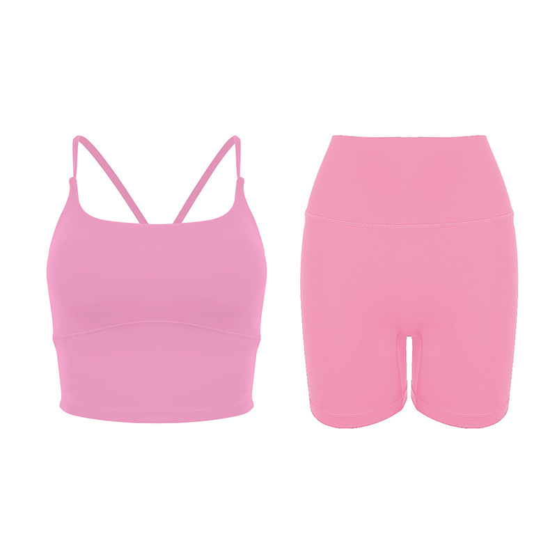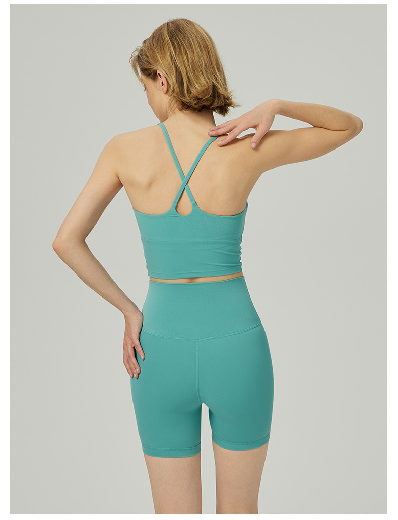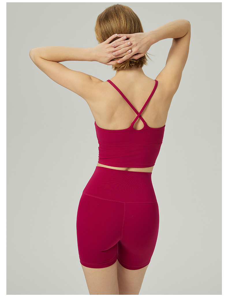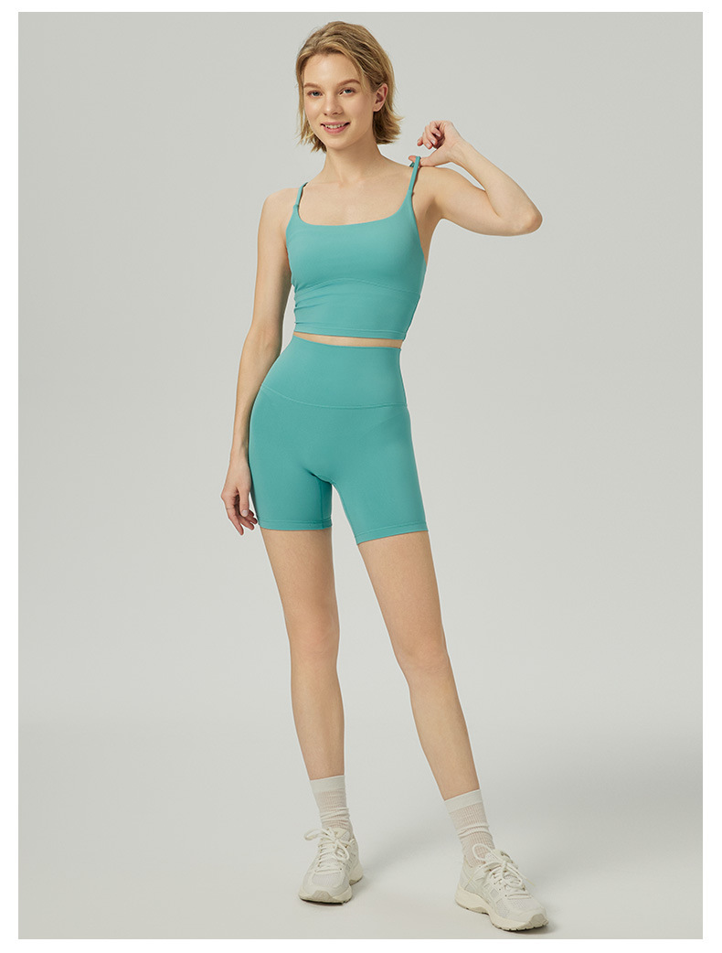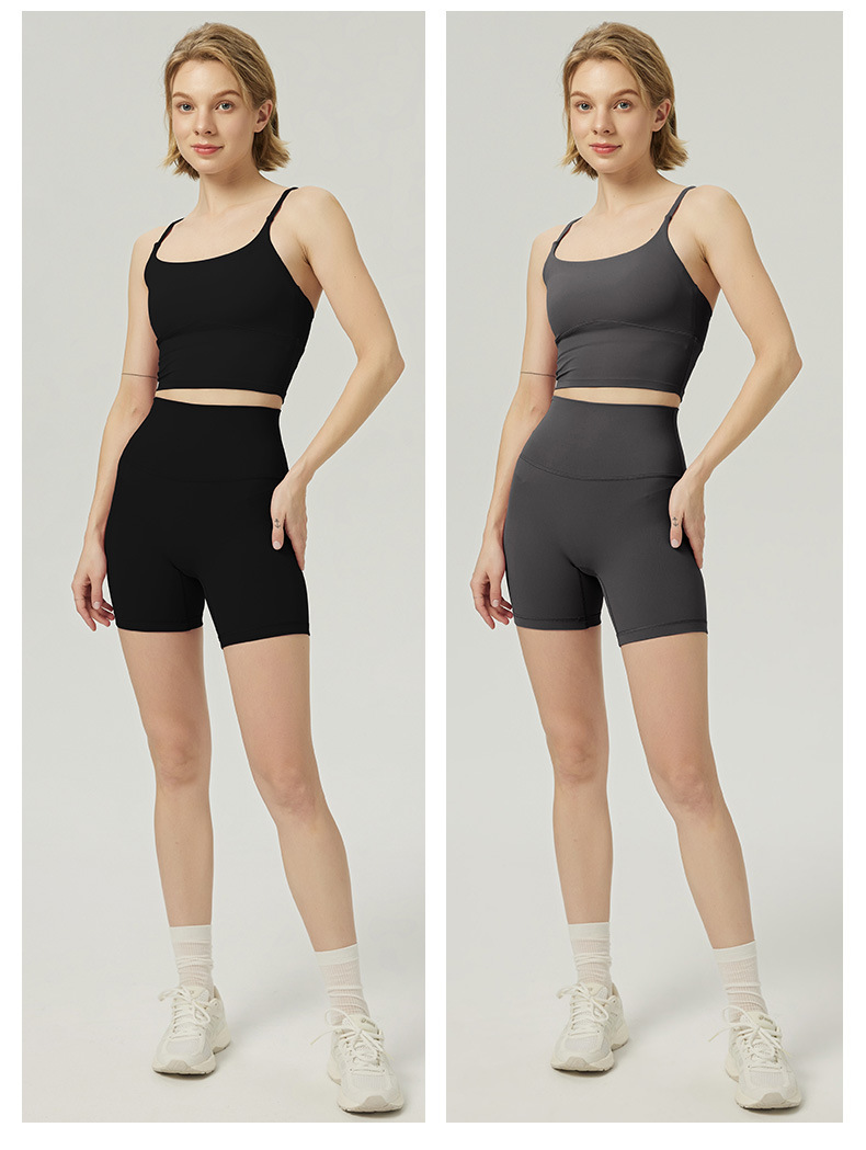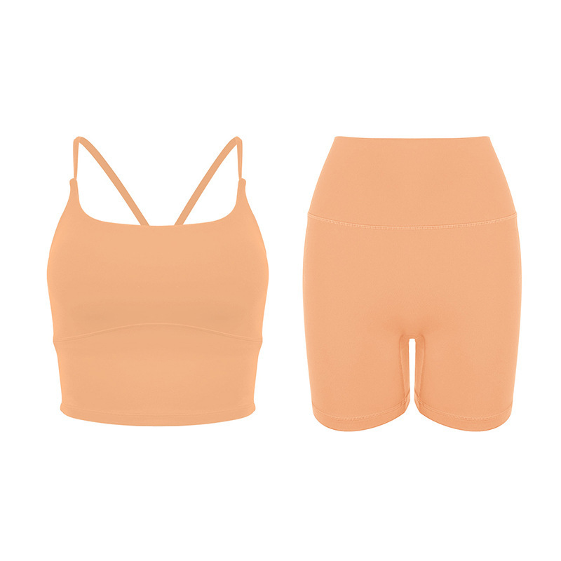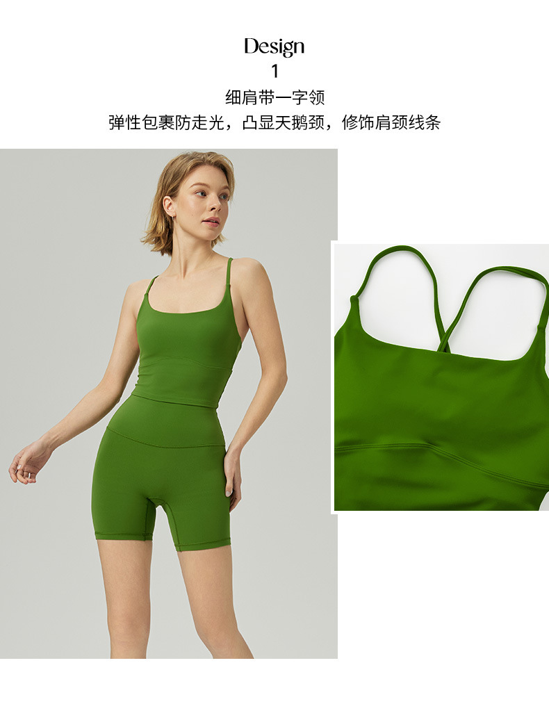 2025 봄과 여름 새로운 요가 세트 라이크라 코치 라인 스포츠 슈트 꽉 슬리밍 스파게티 스트랩 요가 착용 여성