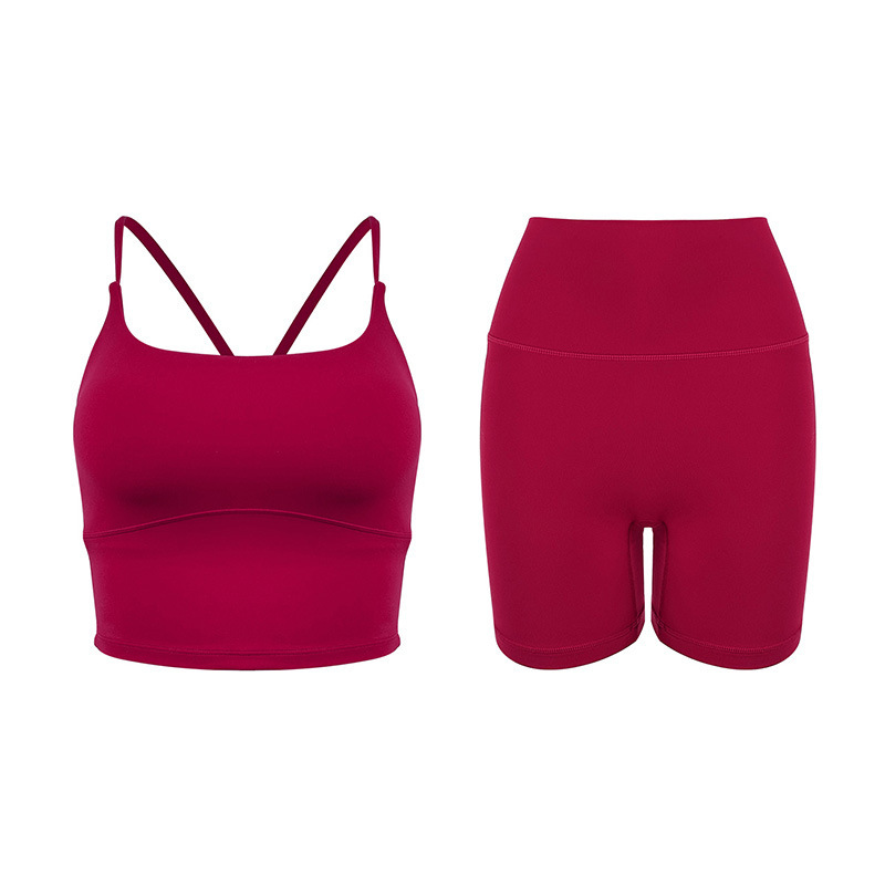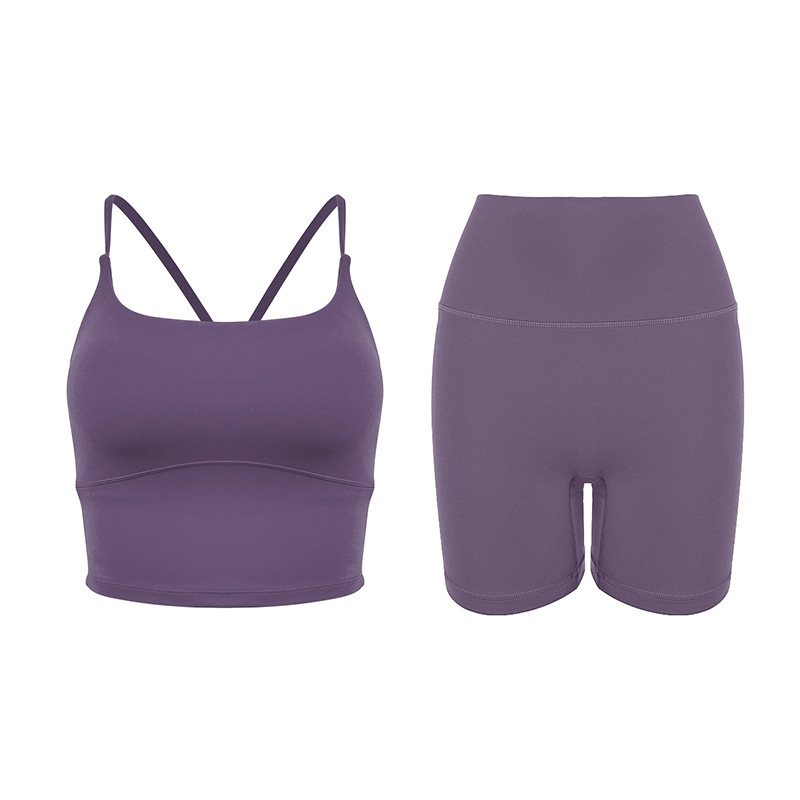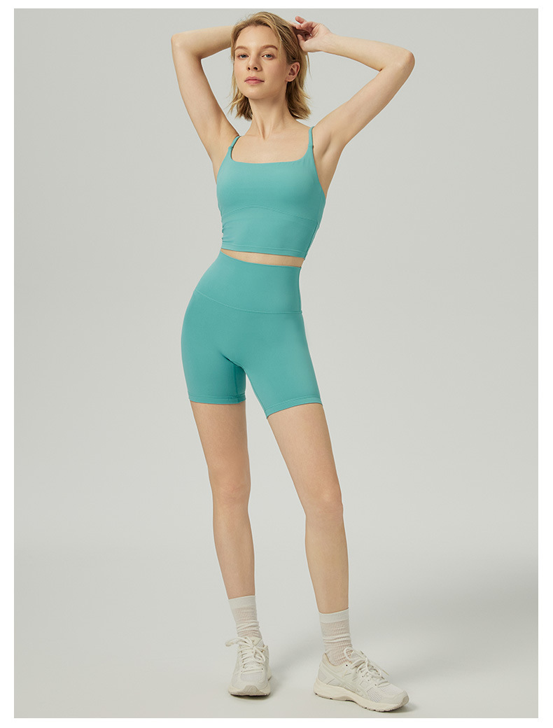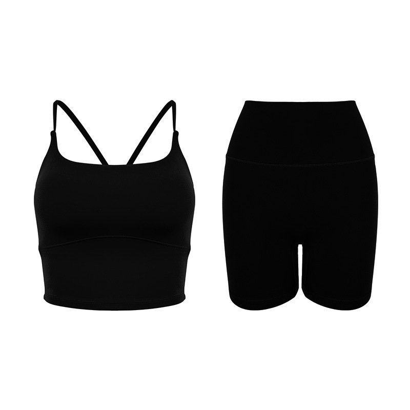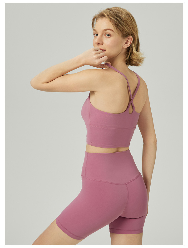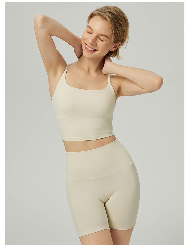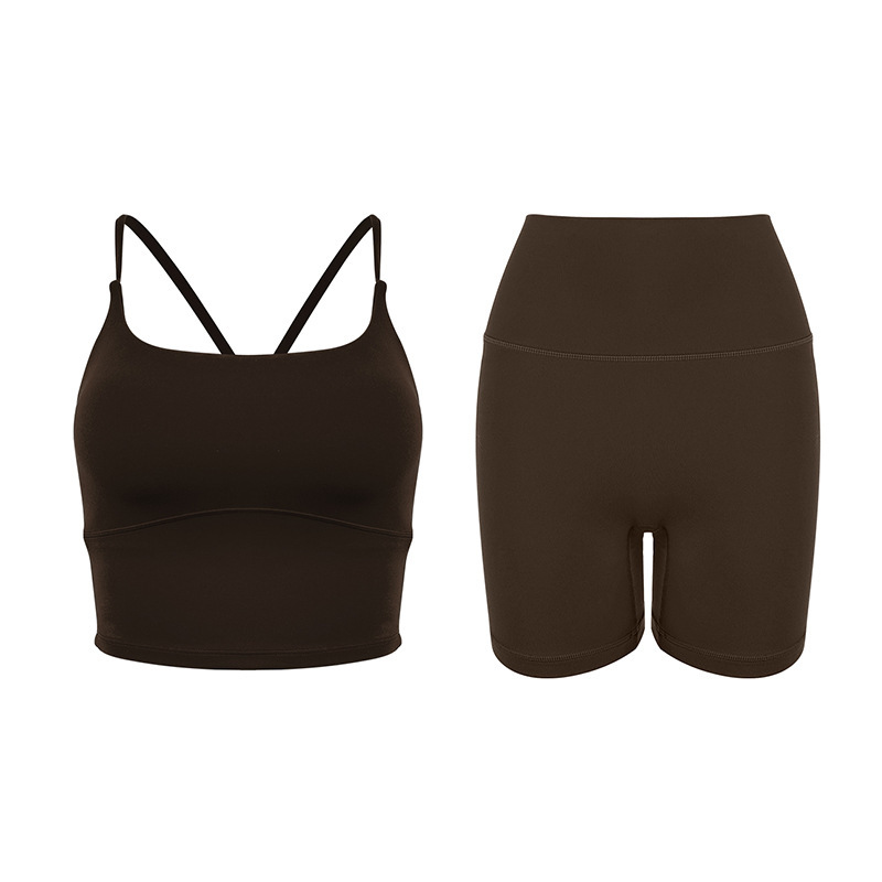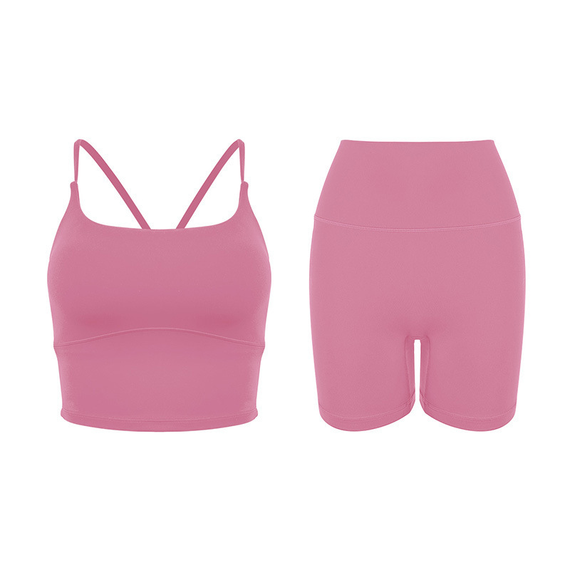 2025 봄과 여름 새로운 요가 세트 라이크라 코치 라인 스포츠 슈트 꽉 슬리밍 스파게티 스트랩 요가 착용 여성