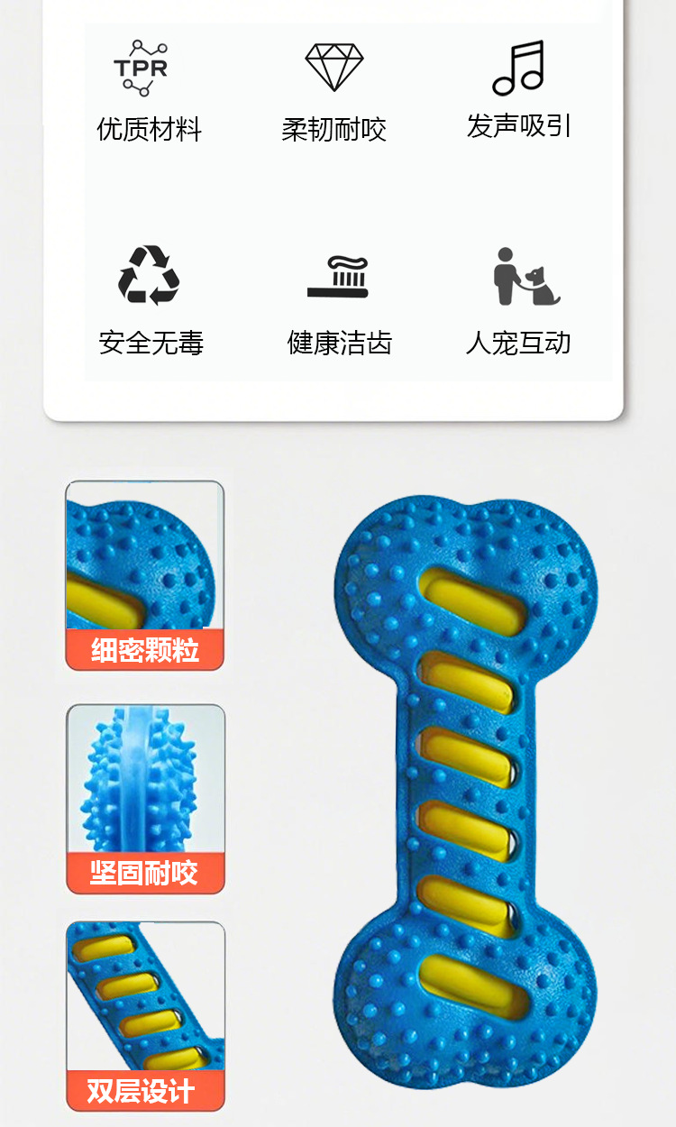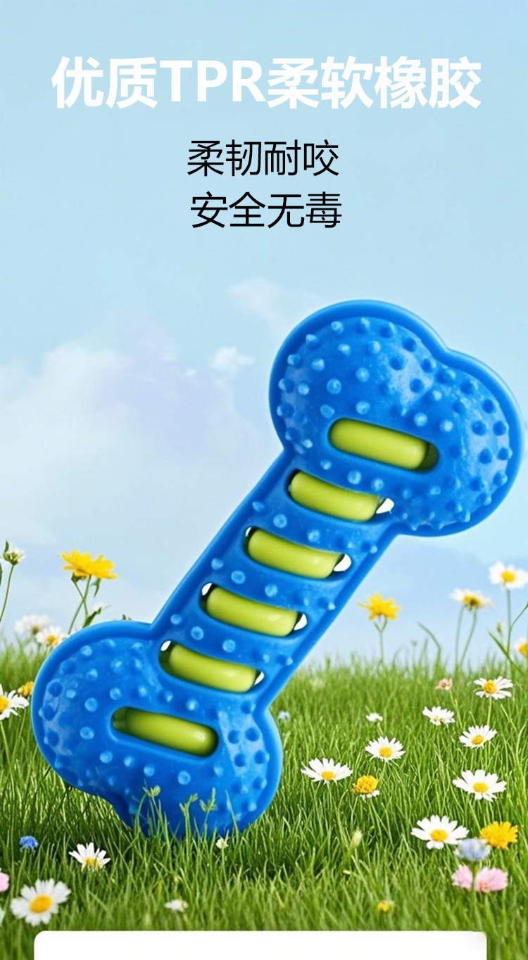 애완동물 장난감, 소리나는 치아갈이 뼈, 내구성이 뛰어난 이중 TPR 치아 청소 스틱, 중대형견용스토어 가기