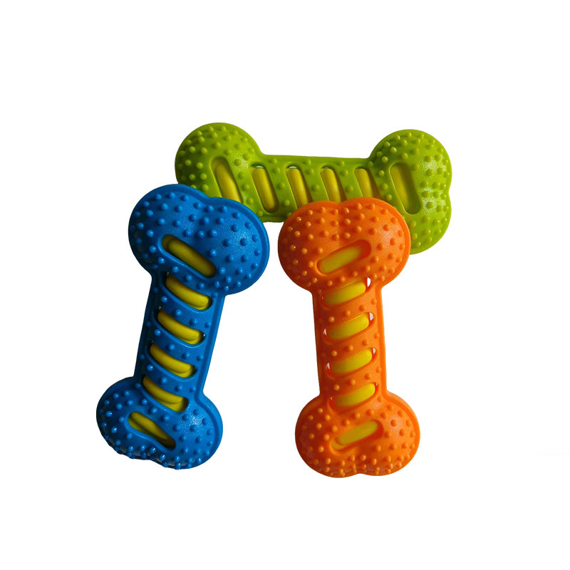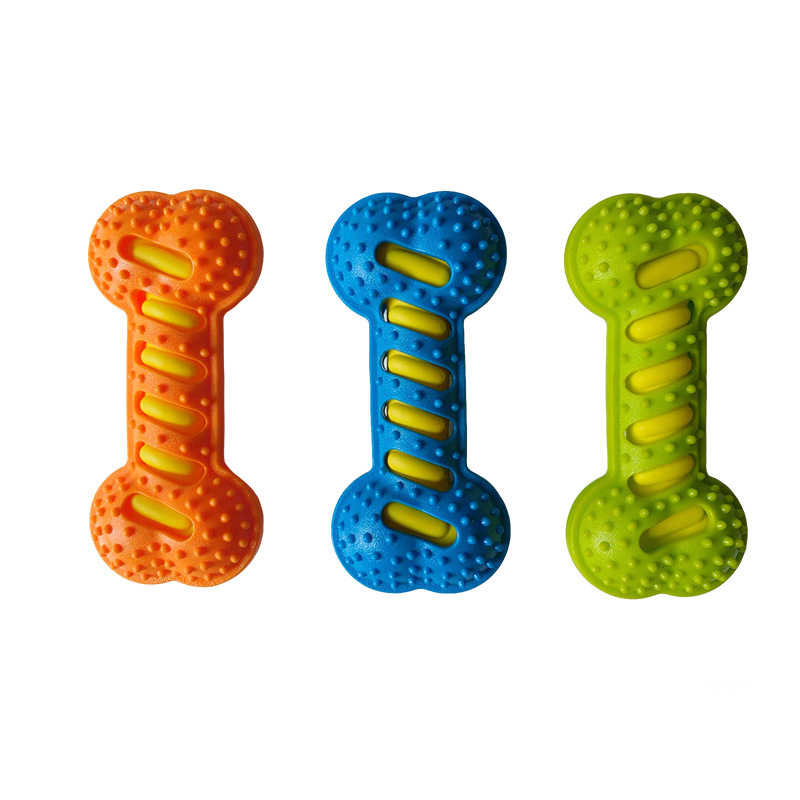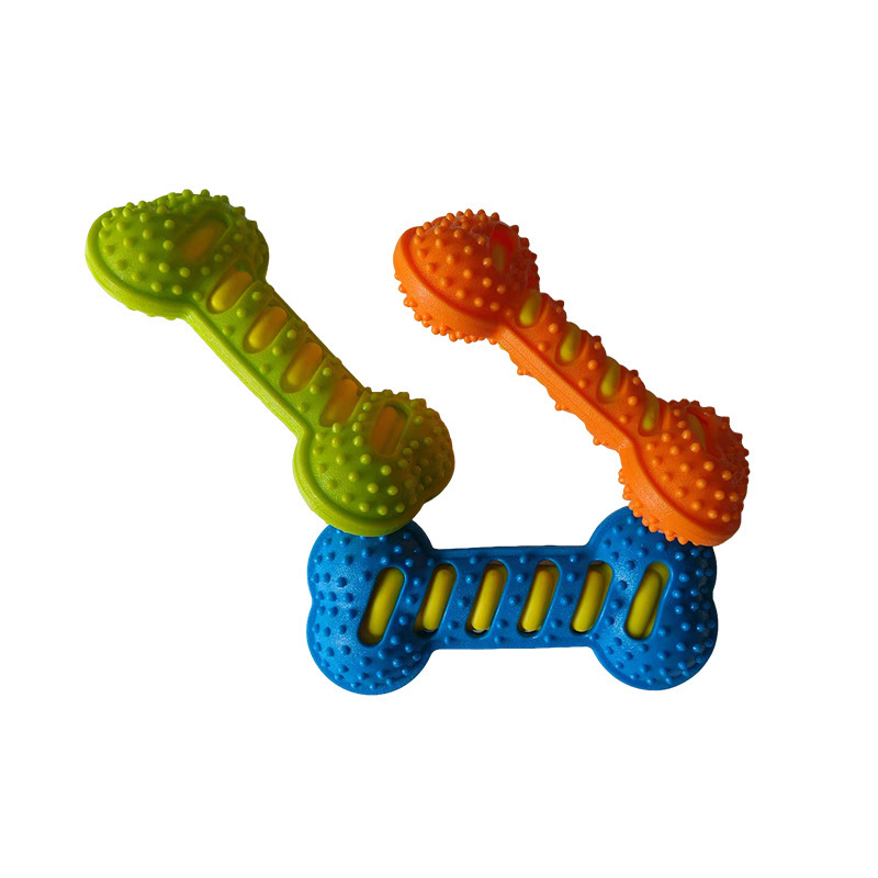 애완동물 장난감, 소리나는 치아갈이 뼈, 내구성이 뛰어난 이중 TPR 치아 청소 스틱, 중대형견용
