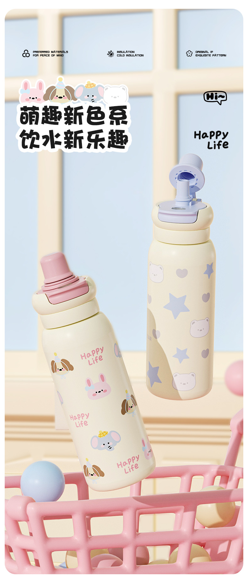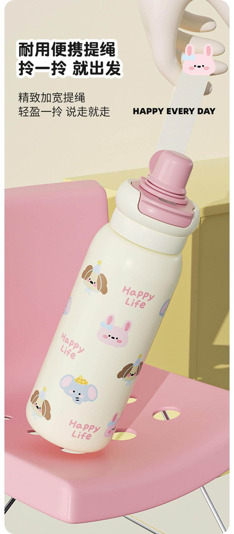 고급스러운 316 스테인레스 스틸 보온병 컵 손잡이 귀여운 물 컵 대용량 휴대용 학생 더블 마시는 컵 도매스토어 가기