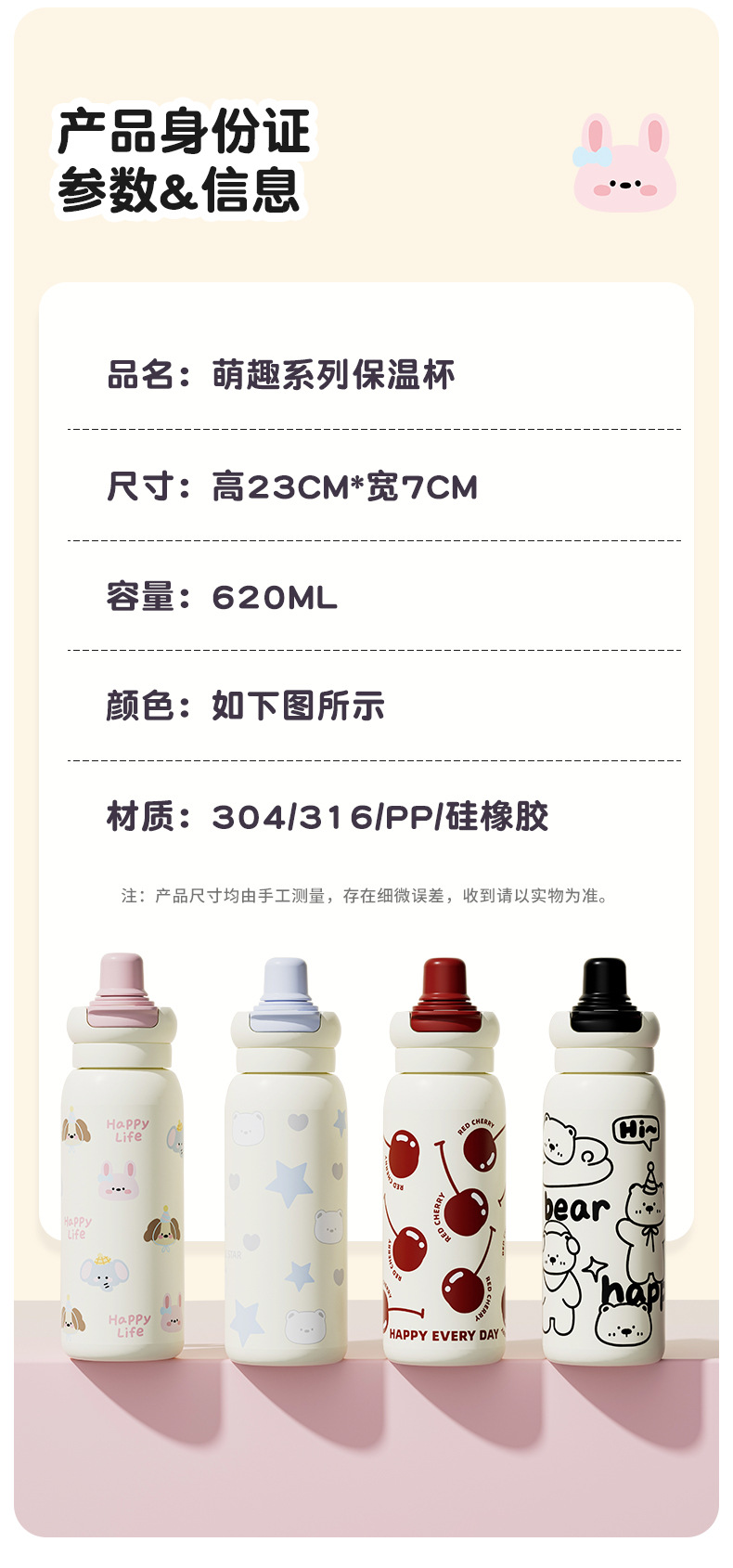 고급스러운 316 스테인레스 스틸 보온병 컵 손잡이 귀여운 물 컵 대용량 휴대용 학생 더블 마시는 컵 도매