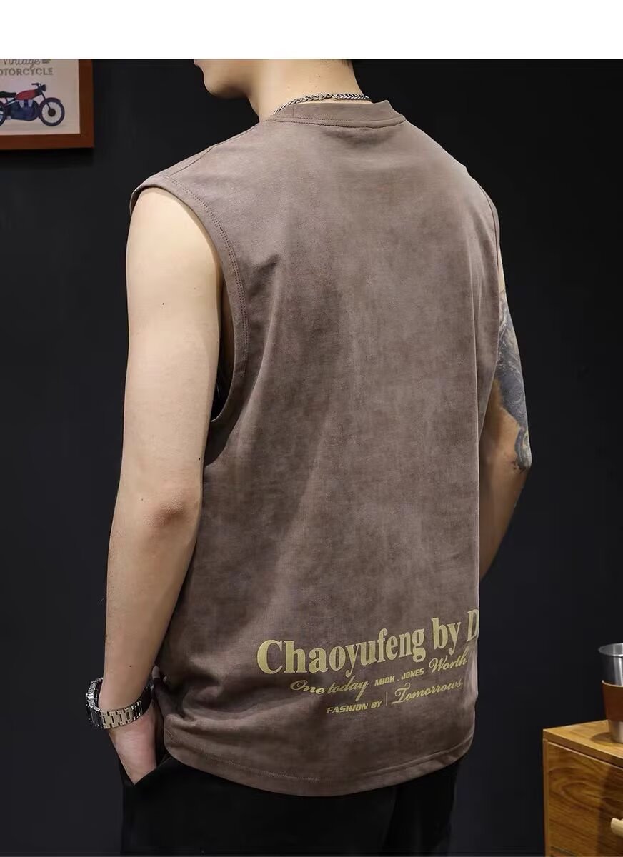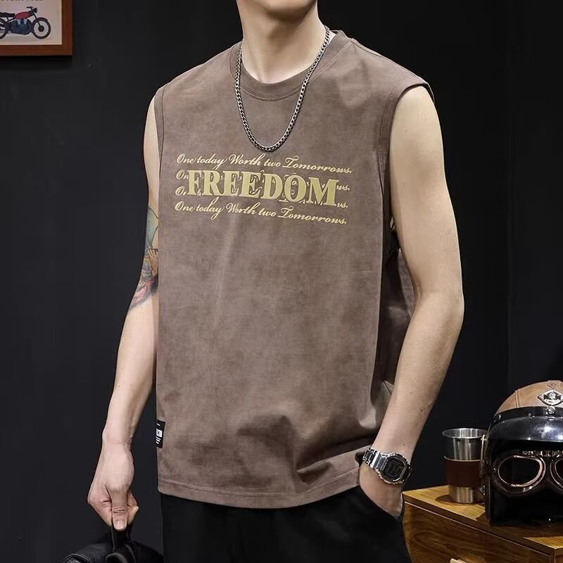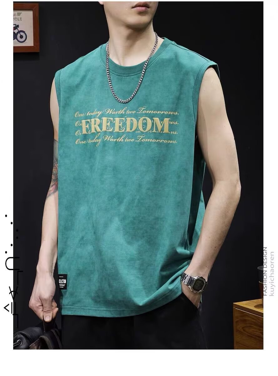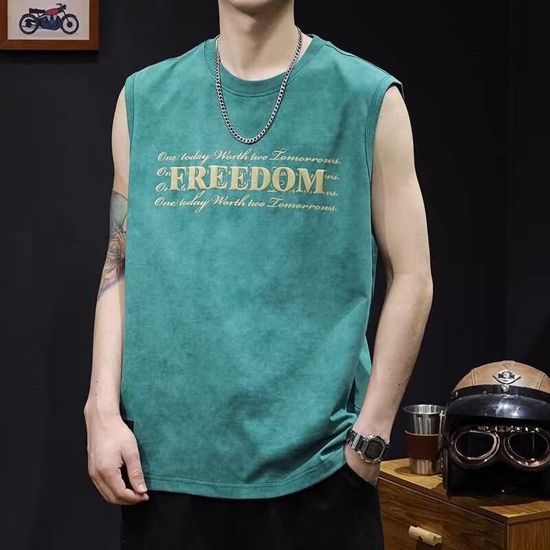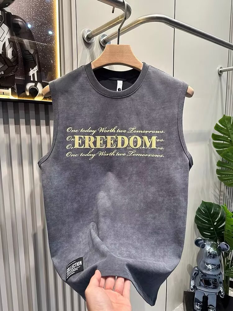 아메리칸 스트리트 레터 프린트 조끼 타이 염색 조끼 남성 여름 트렌디 브랜드 루즈 스포츠 피트니스 다용도 바닥 셔츠