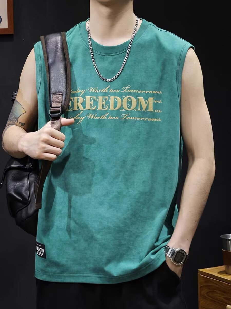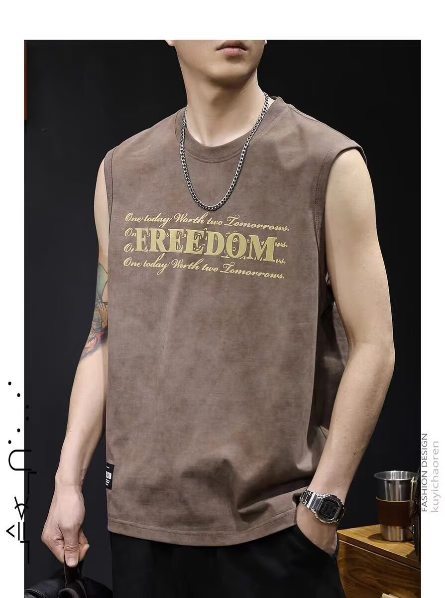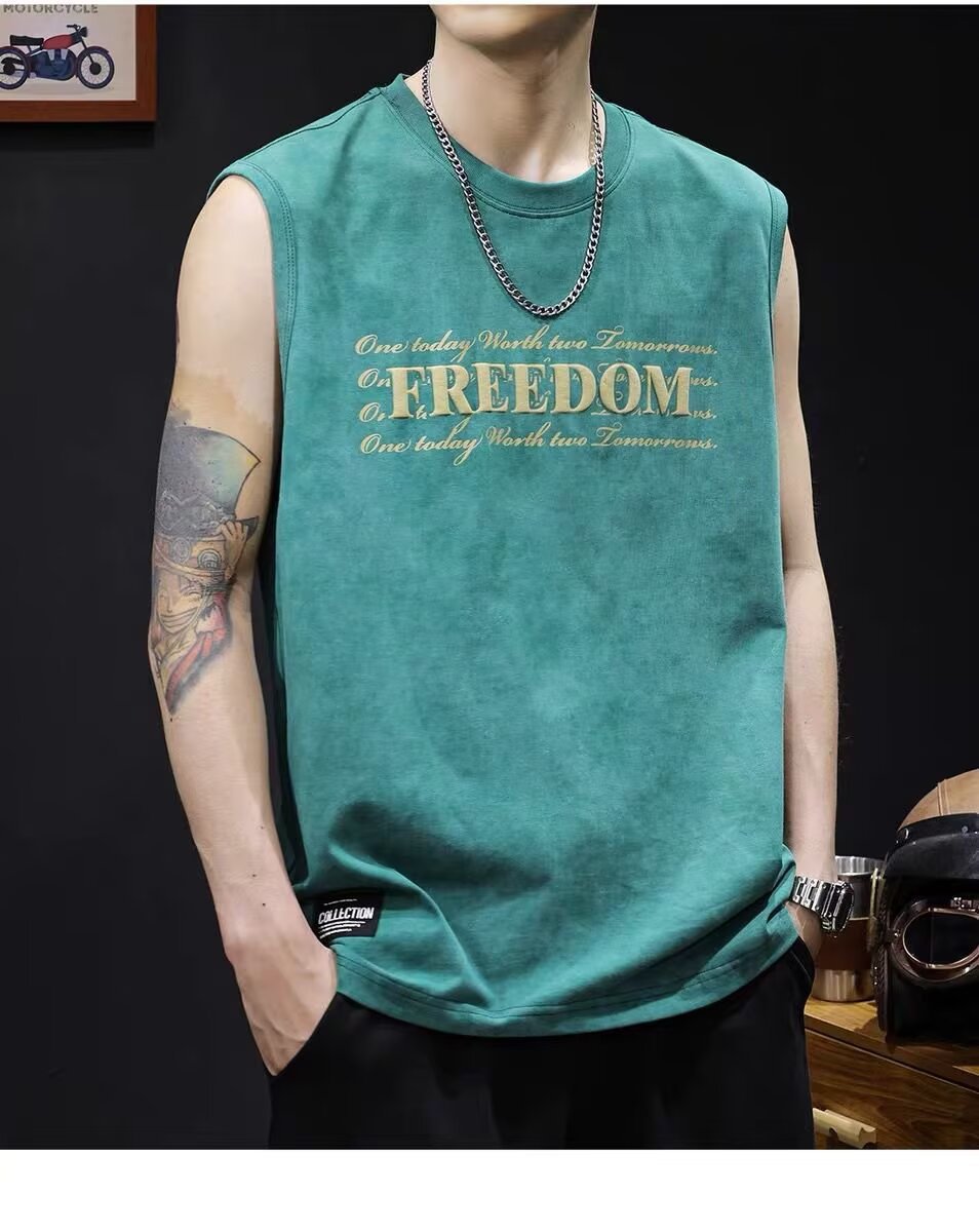 아메리칸 스트리트 레터 프린트 조끼 타이 염색 조끼 남성 여름 트렌디 브랜드 루즈 스포츠 피트니스 다용도 바닥 셔츠