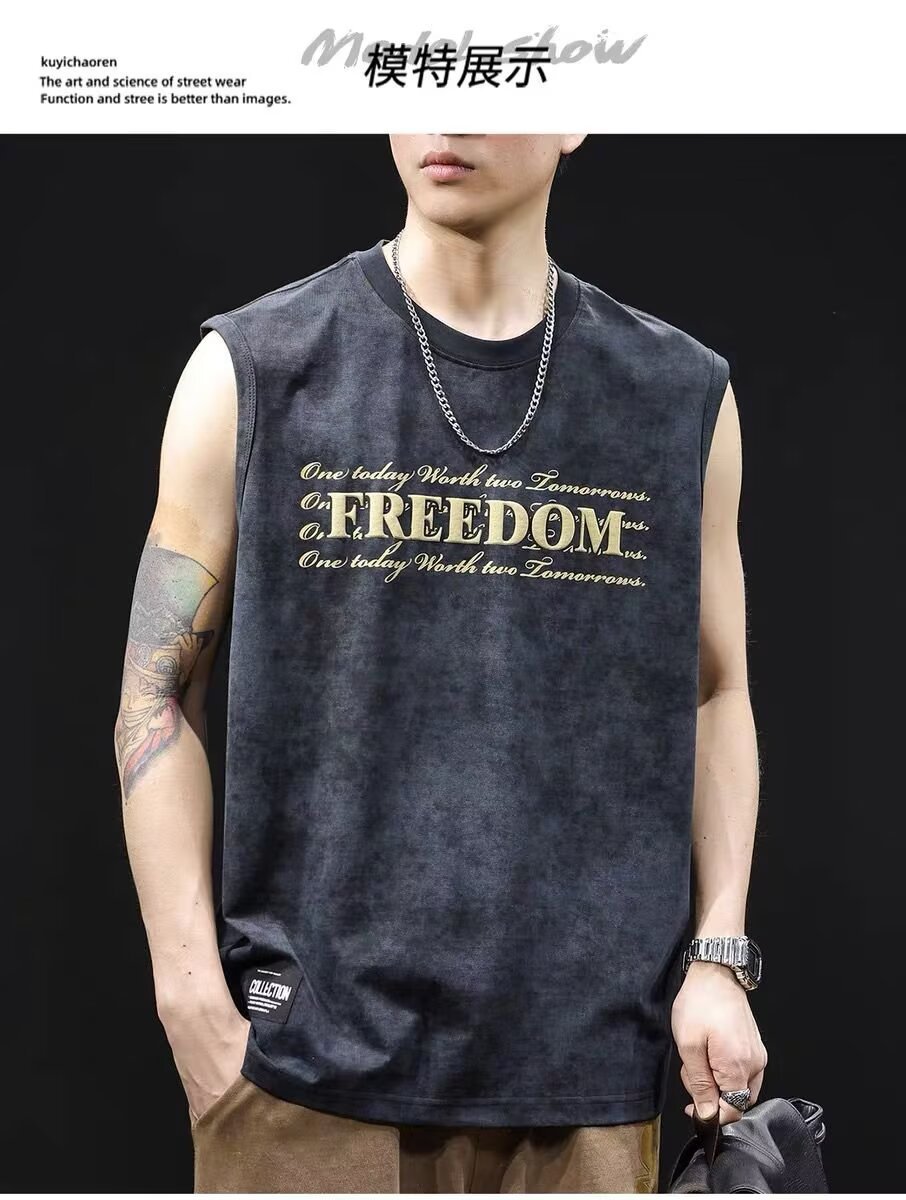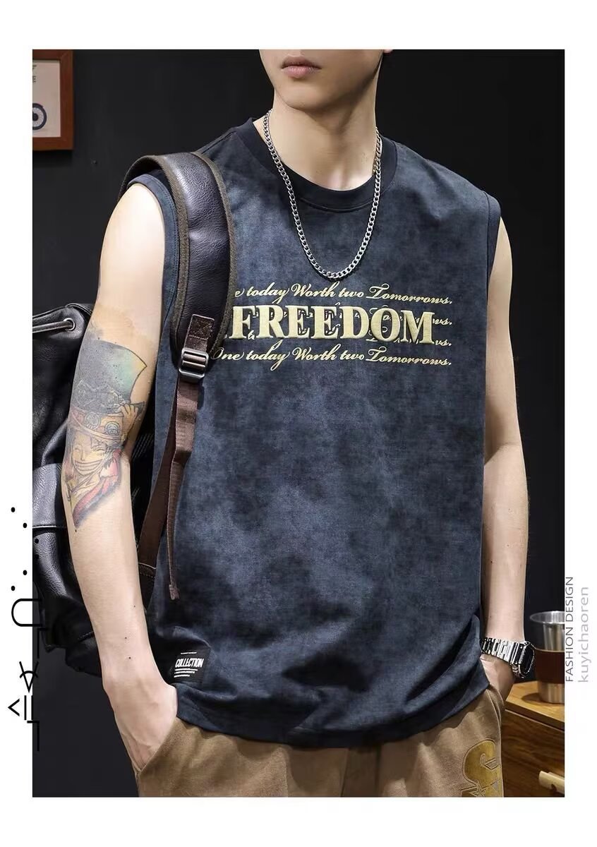 아메리칸 스트리트 레터 프린트 조끼 타이 염색 조끼 남성 여름 트렌디 브랜드 루즈 스포츠 피트니스 다용도 바닥 셔츠스토어 가기
