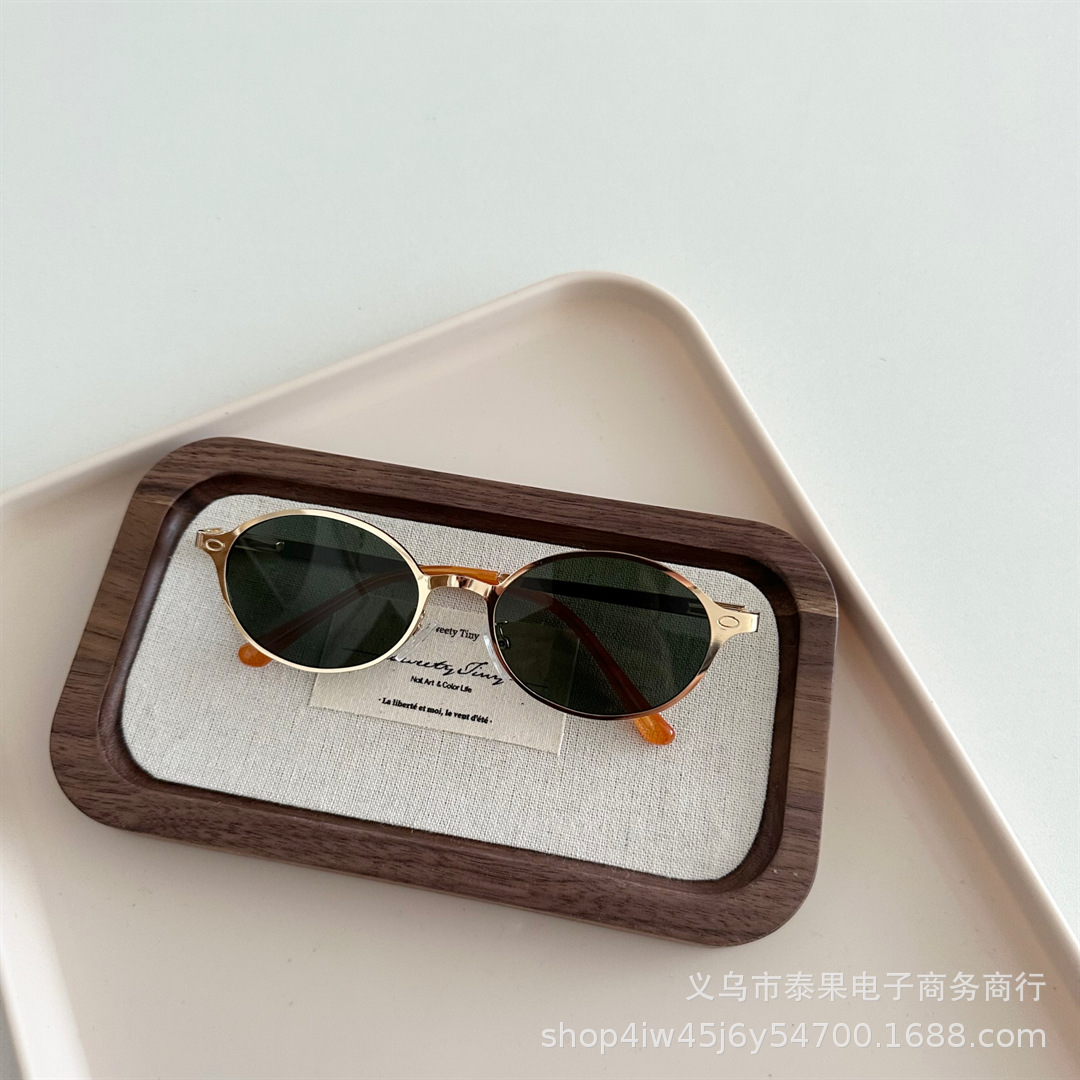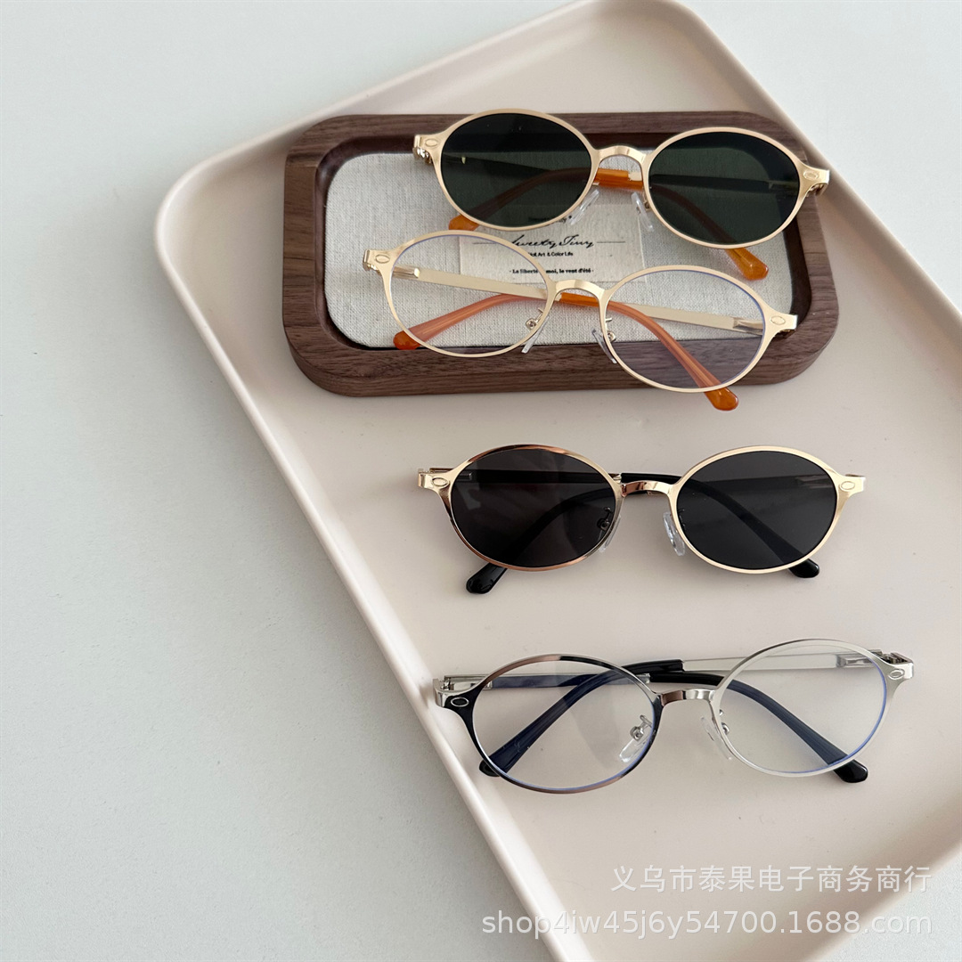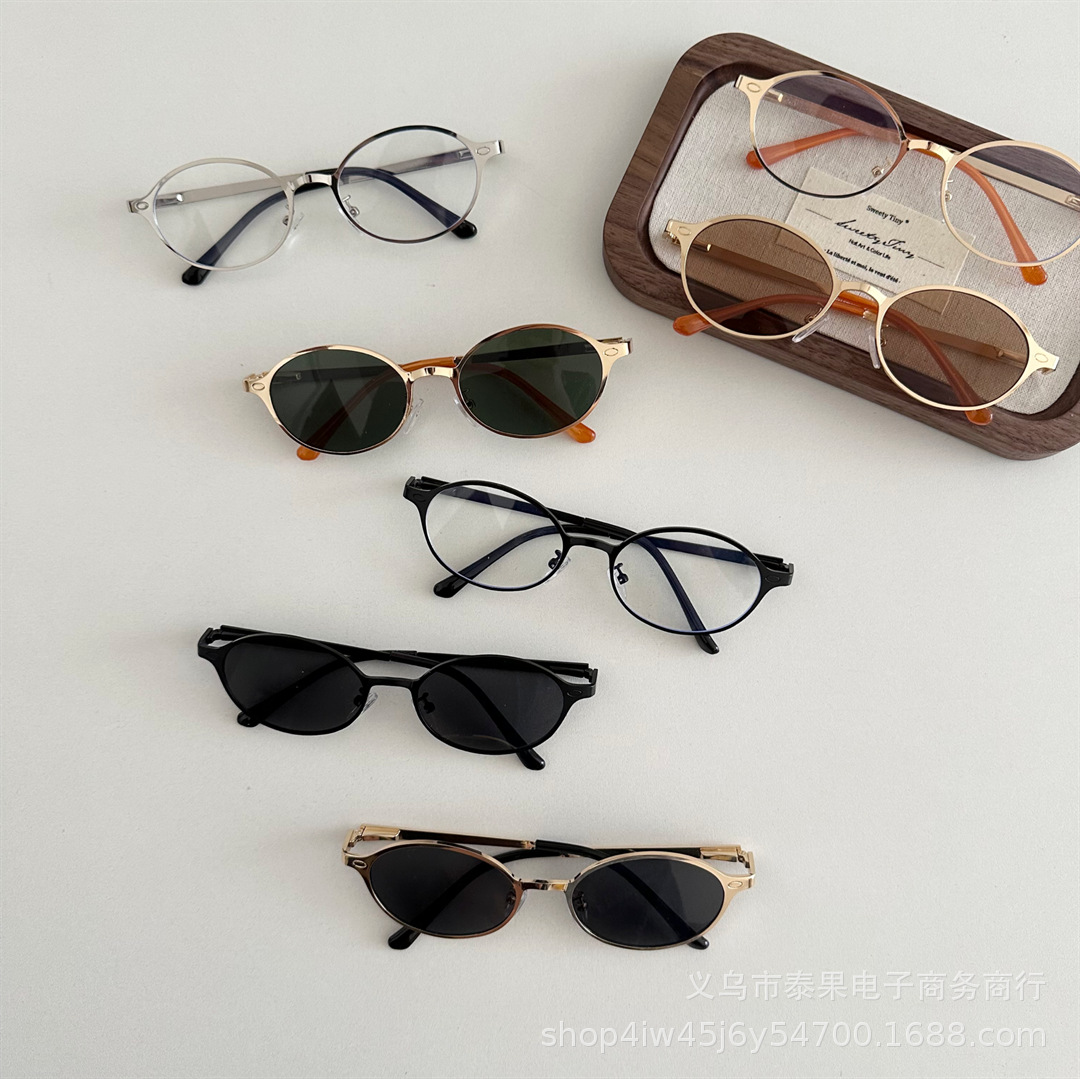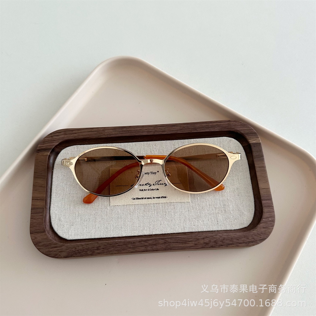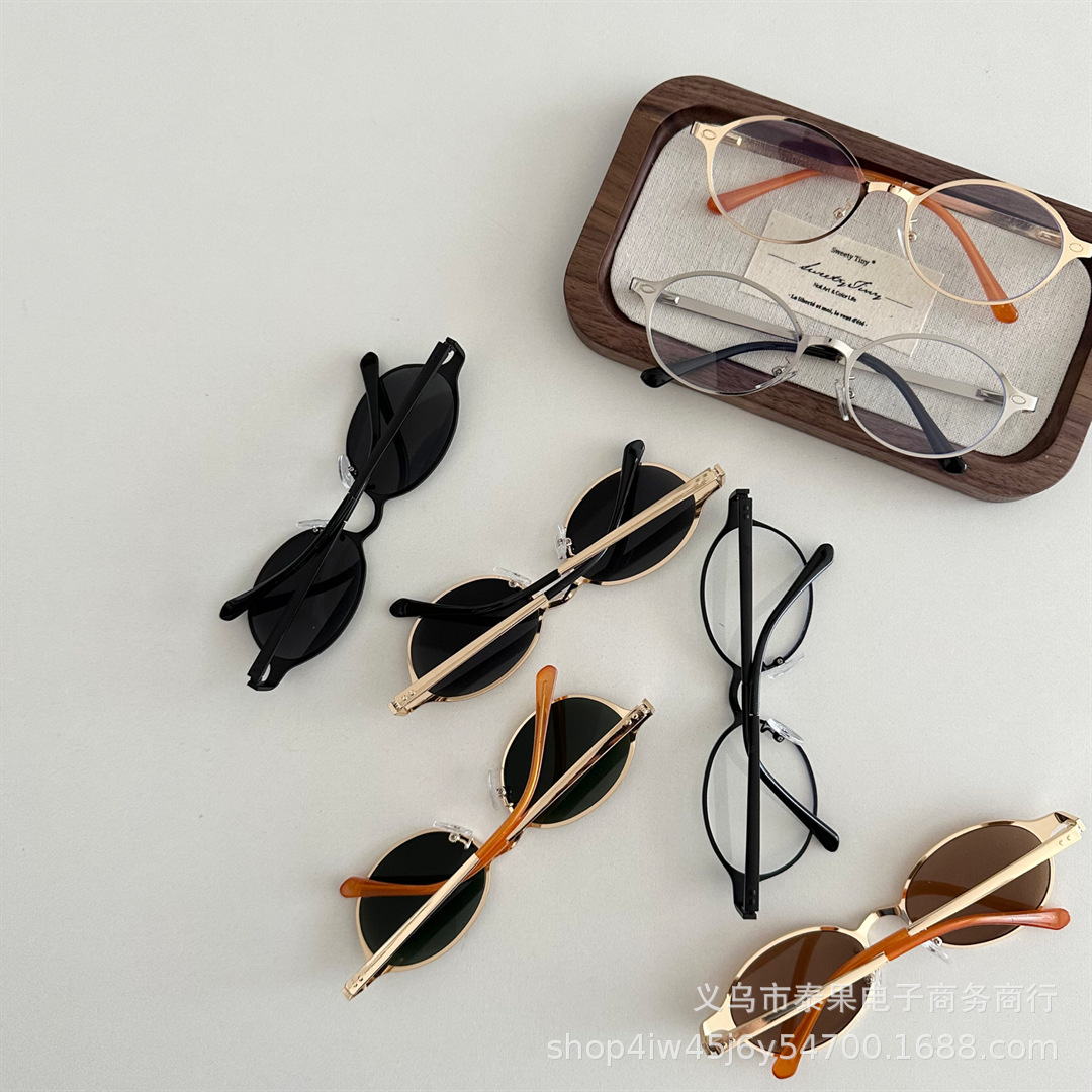 여름 새로운 어린이 복고풍 금속 타원형 프레임 태양 보호 선글라스 소년과 소녀를위한 틈새 고급 오목 선글라스스토어 가기