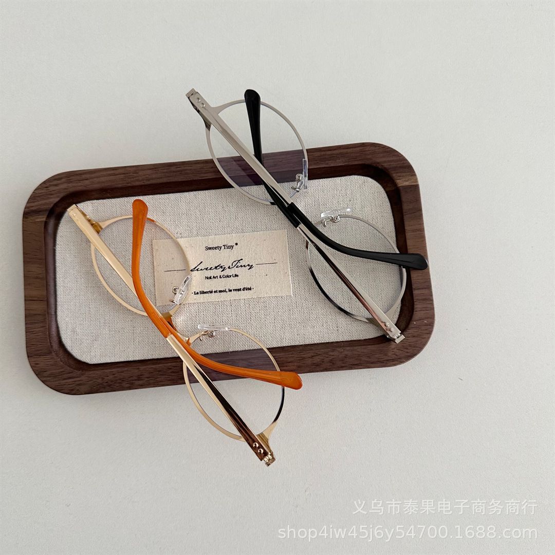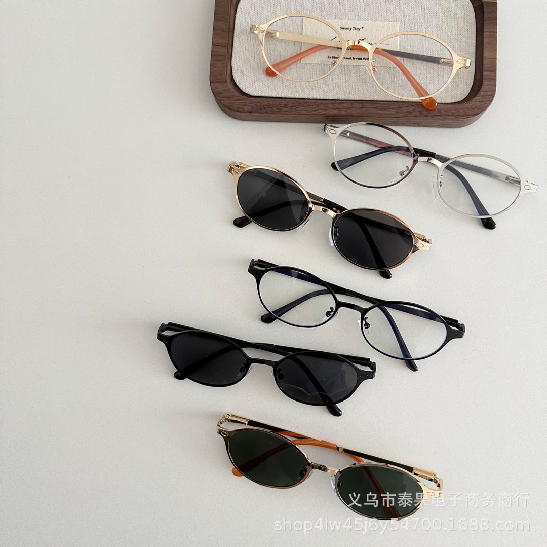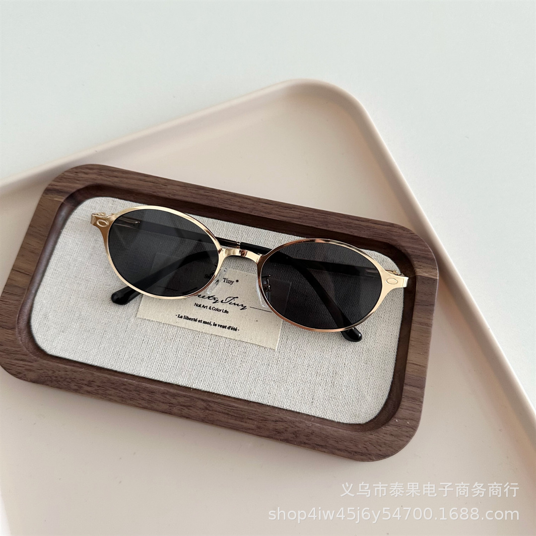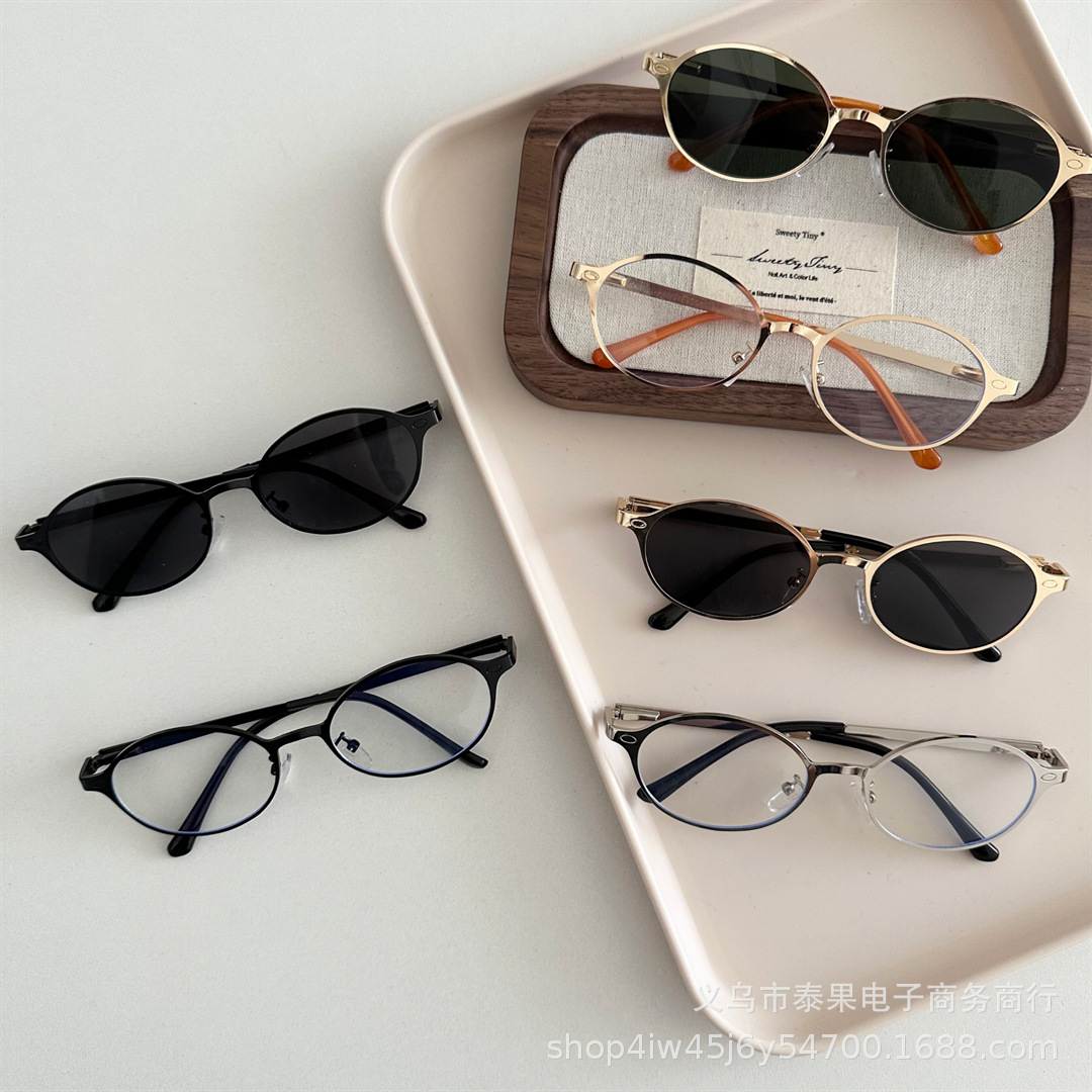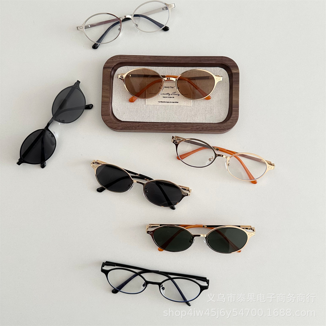 여름 새로운 어린이 복고풍 금속 타원형 프레임 태양 보호 선글라스 소년과 소녀를위한 틈새 고급 오목 선글라스스토어 가기