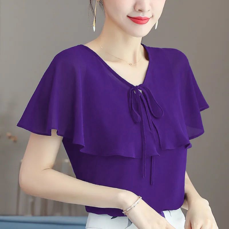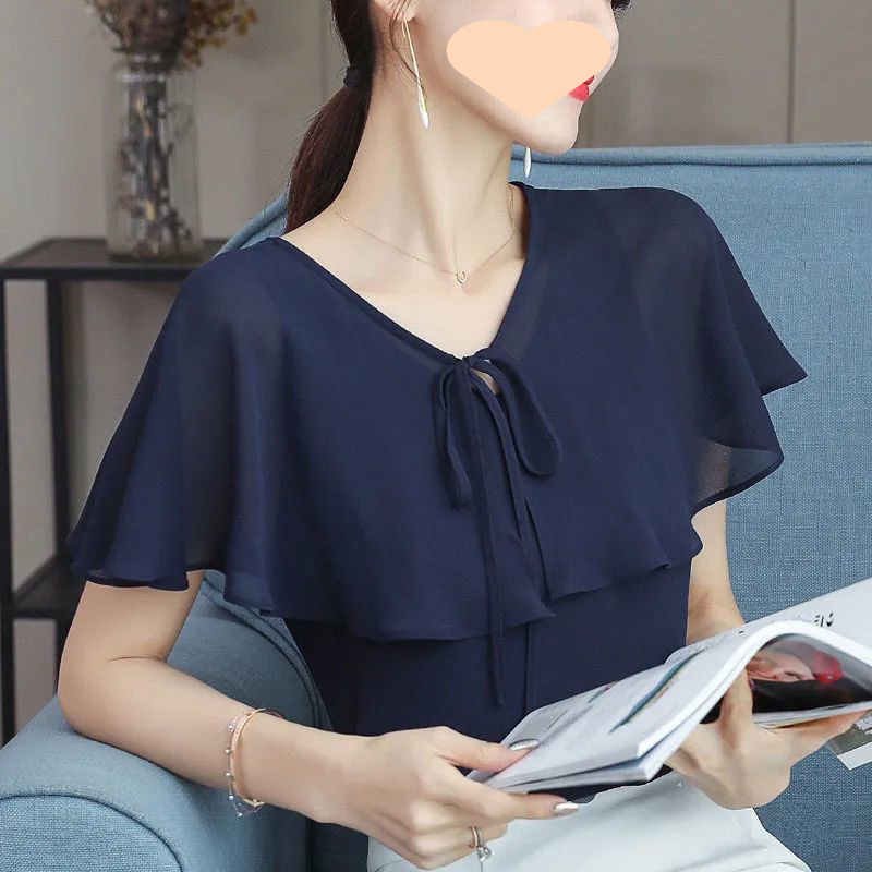 여성용 얇은 반팔 쉬폰 셔츠 2025 여름 신상 쉬폰 배 커버 탑, 슬림하고 패셔너블하며 다재다능한 셔츠