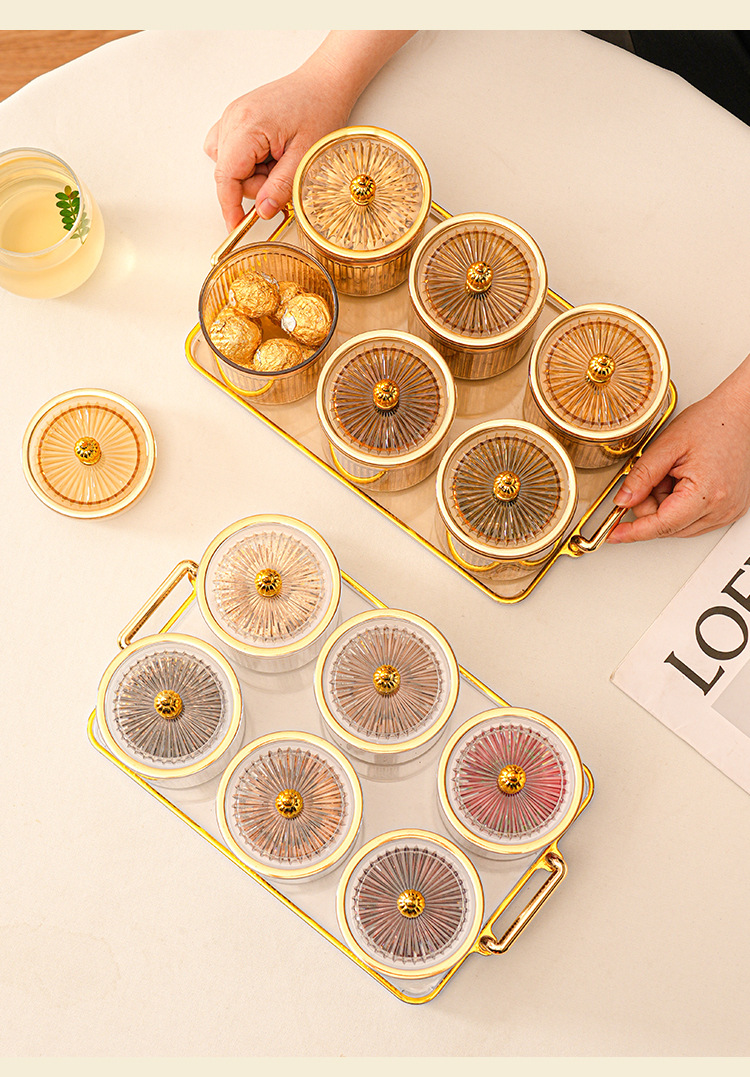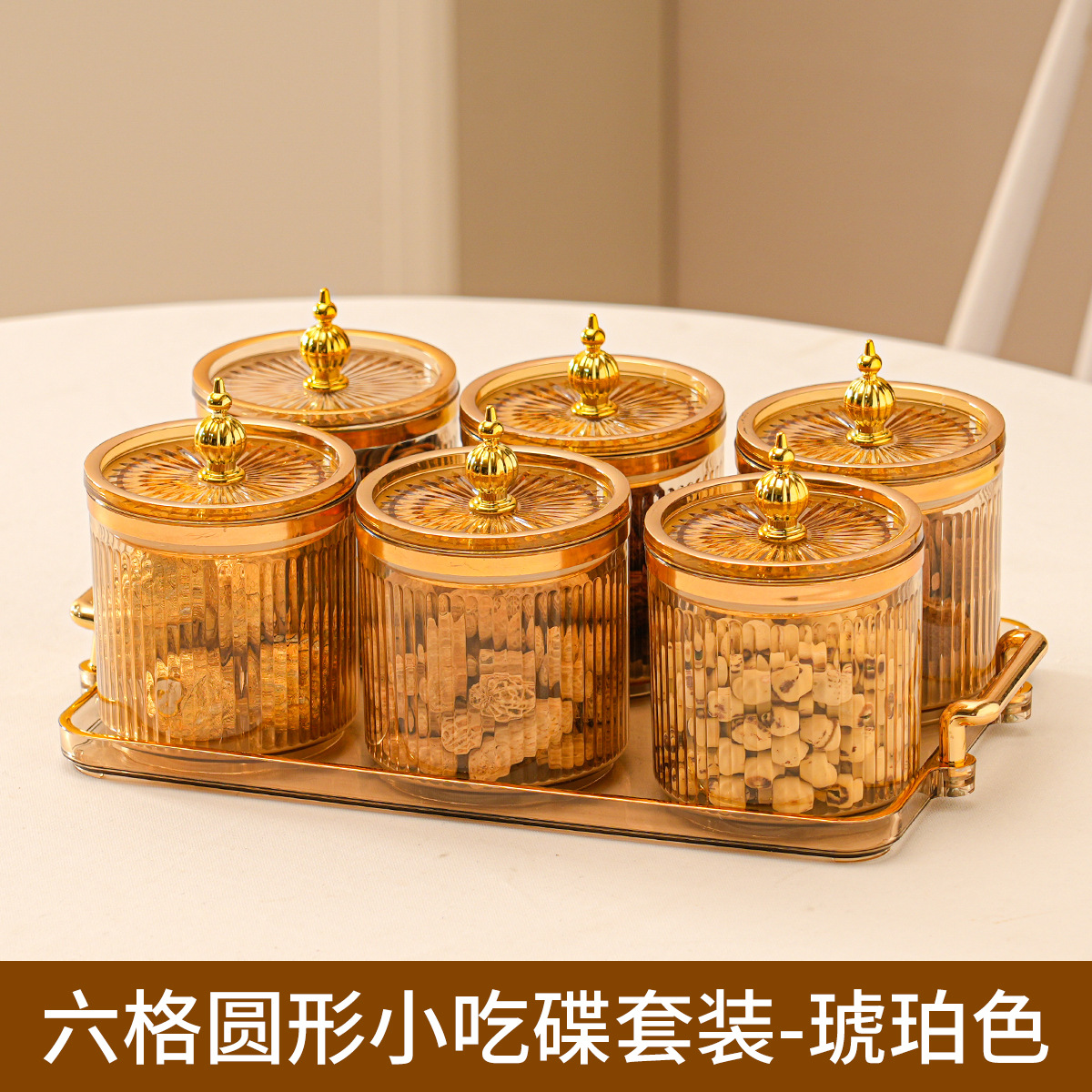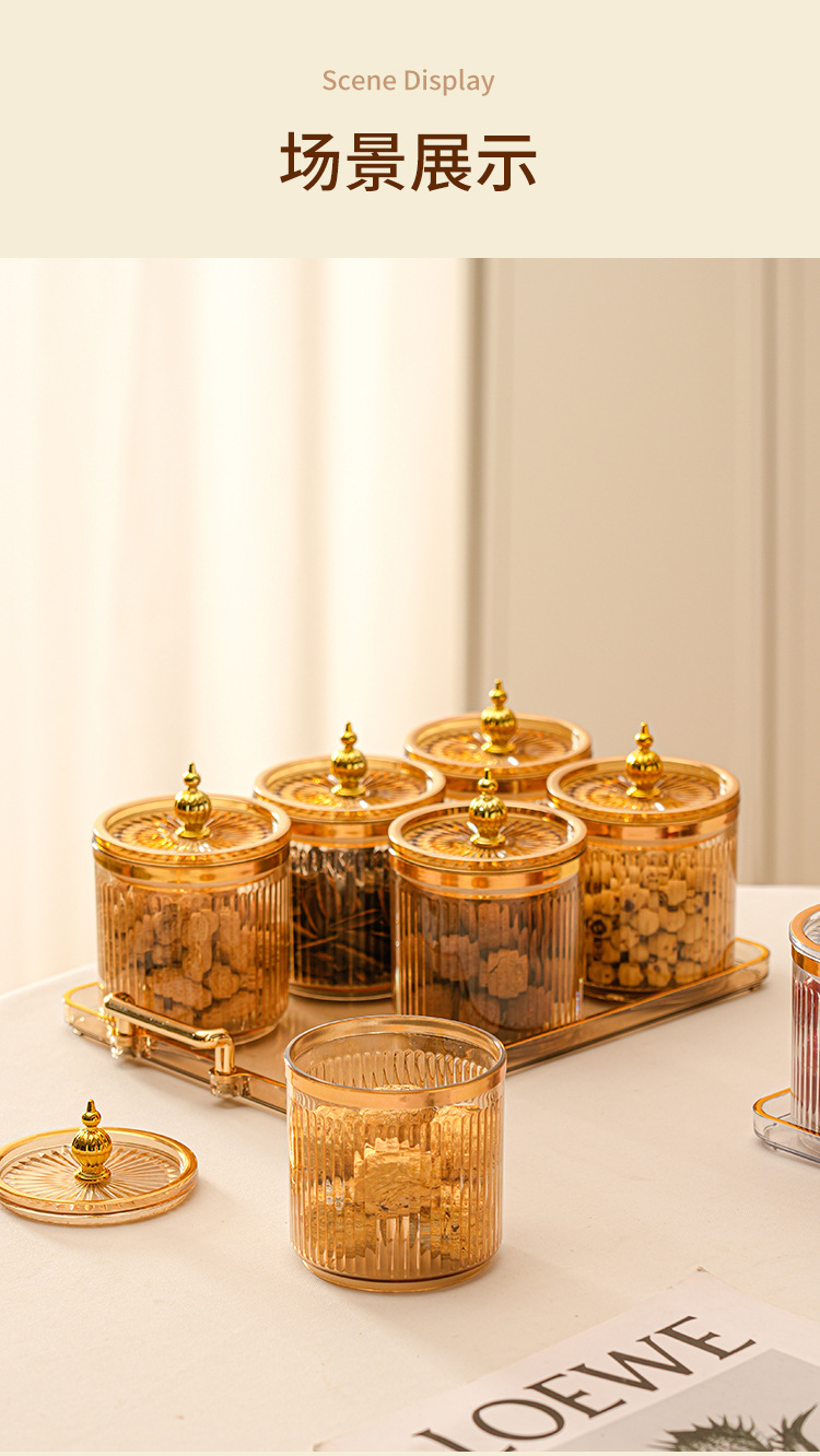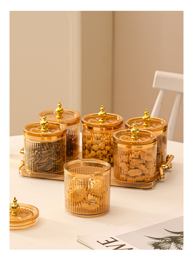 • 호박색 원형 캔 6그리드 플레이트 타워 비드 핸들