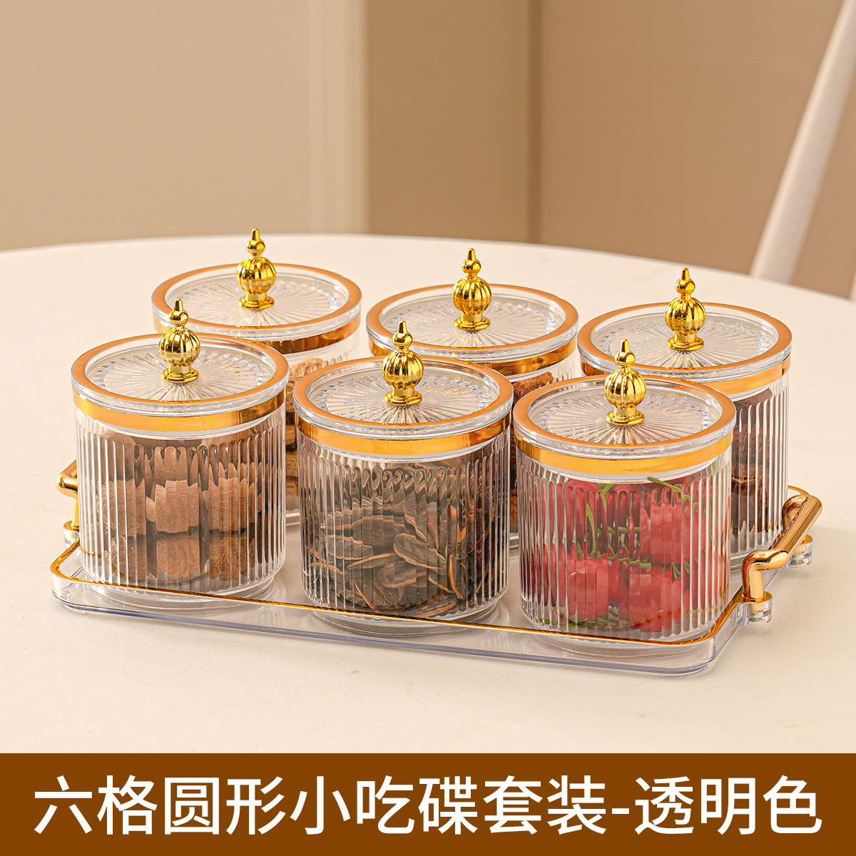 • 6개의 칸이 있는 투명한 원형 캔 - 타워 비드 핸들