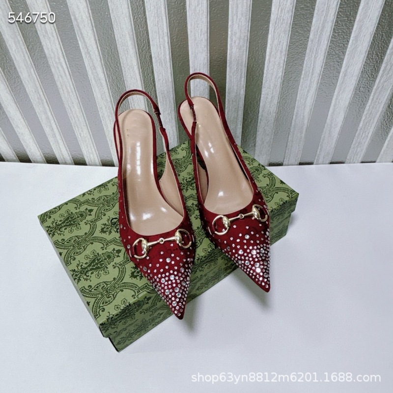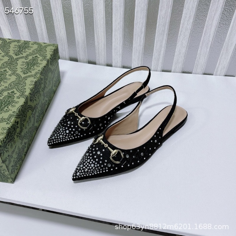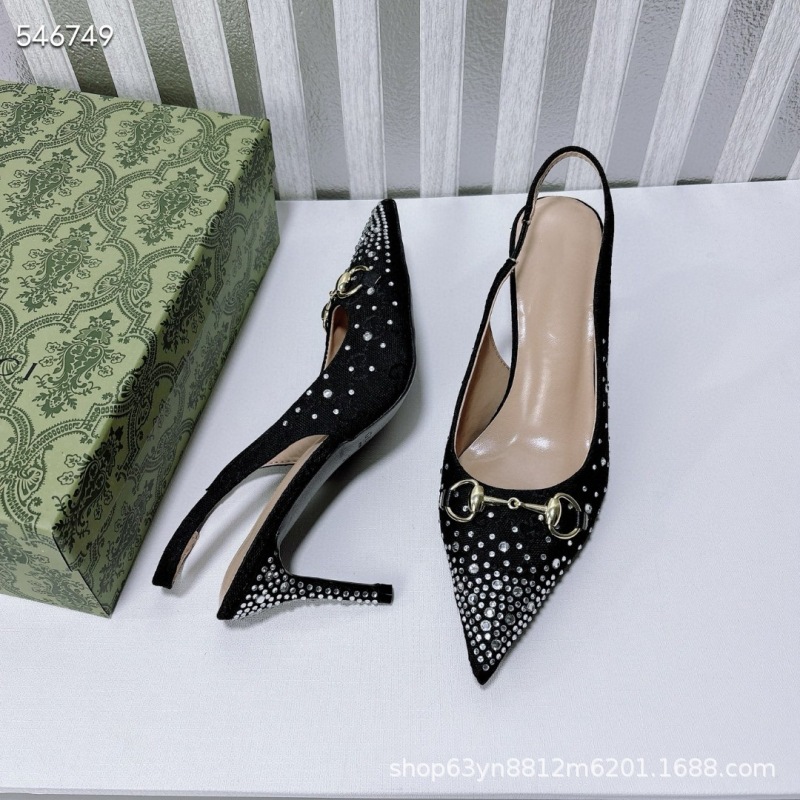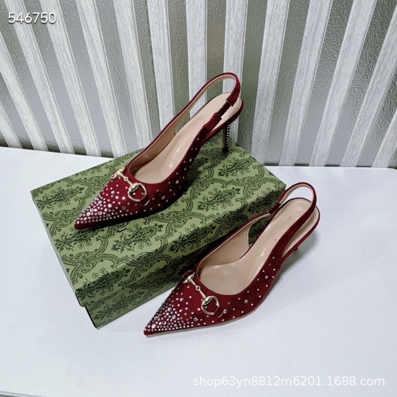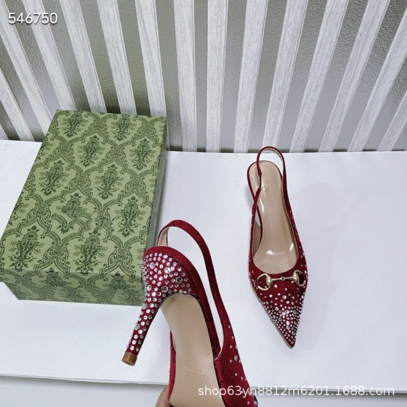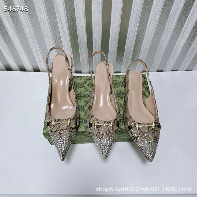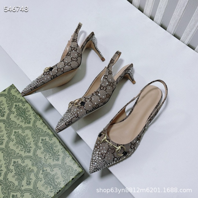 유럽과 미국의 하이힐 더블 G 라인스톤 핫 다이아몬드 메탈 말끈 버클 복고풍 뾰족한 뒷면 여성 신발 패셔너블한 아우터 샌들스토어 가기