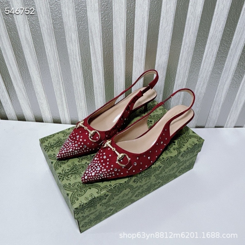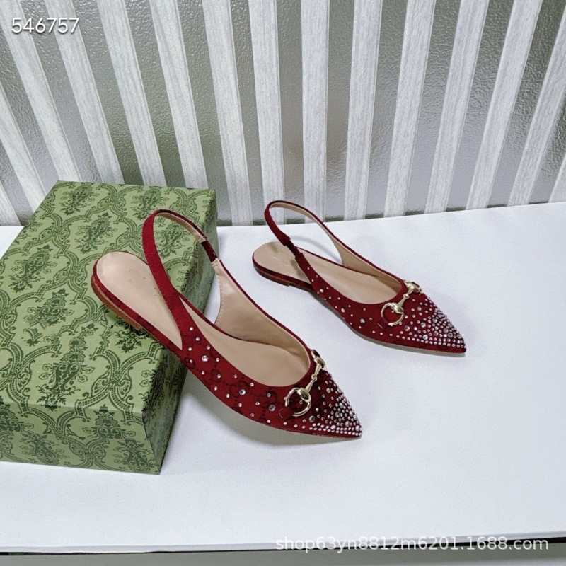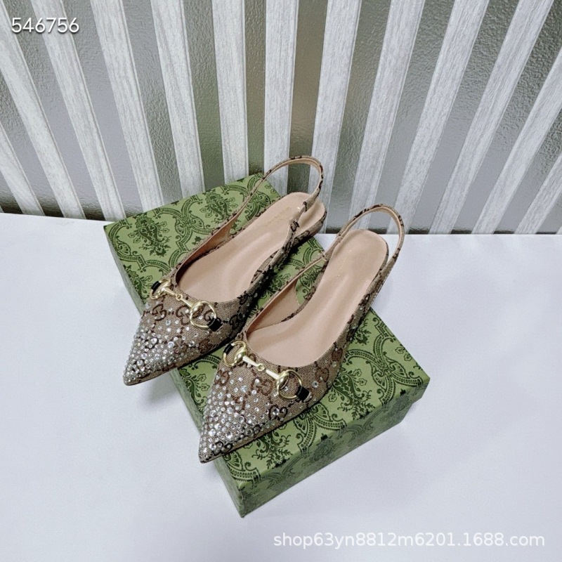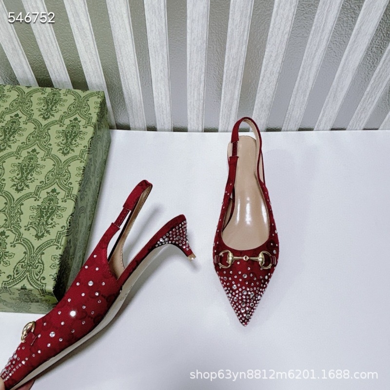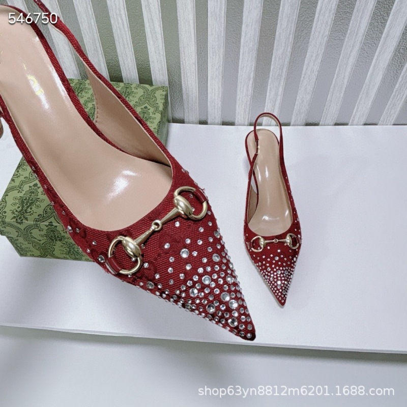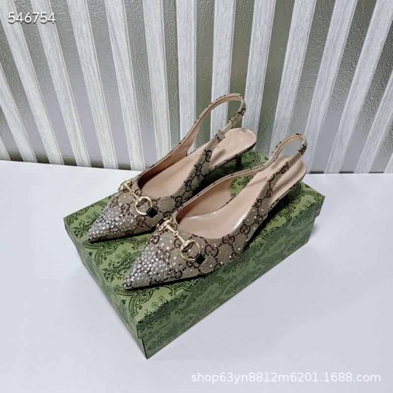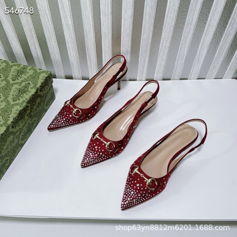 유럽과 미국의 하이힐 더블 G 라인스톤 핫 다이아몬드 메탈 말끈 버클 복고풍 뾰족한 뒷면 여성 신발 패셔너블한 아우터 샌들스토어 가기