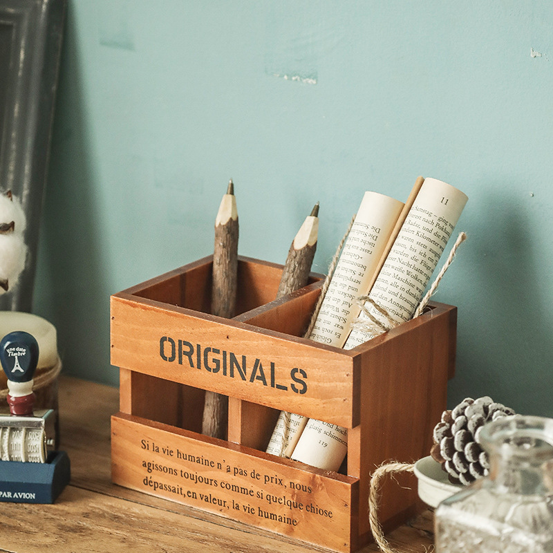 맞춤형 원목 리모컨 수납함, 데스크탑 문구 정리함, 책상용 붓/연필 정리함, 칸막이가 있는 자카 나무 상자