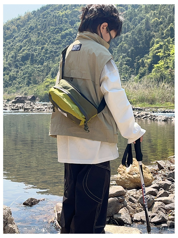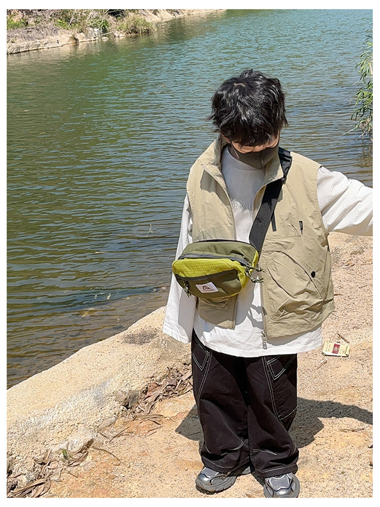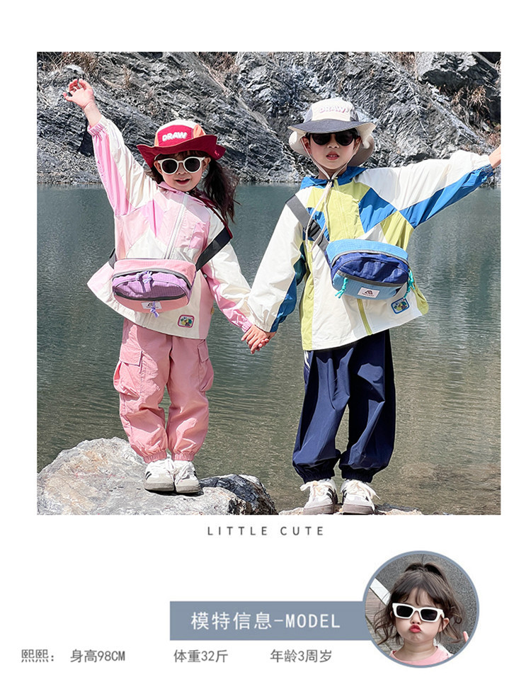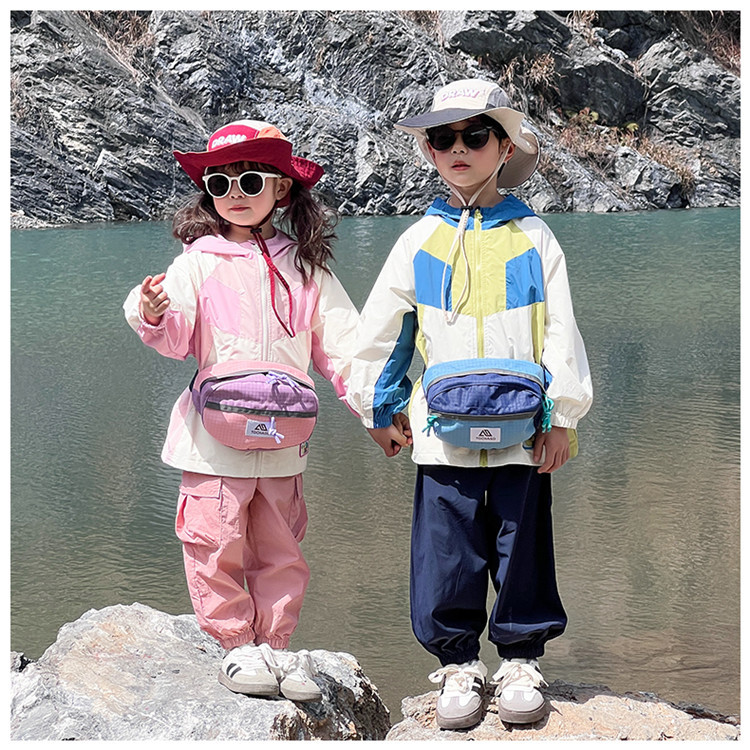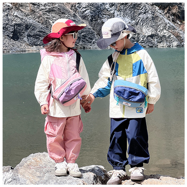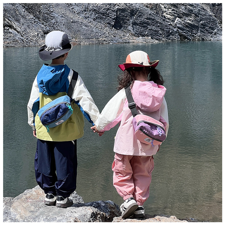 여름 야외 어린이 크로스백, 대비되는 색상 스티칭, 패셔너블한 소년 소녀용 초경량 가슴 가방, 보관 가능한 어깨 스낵 가방