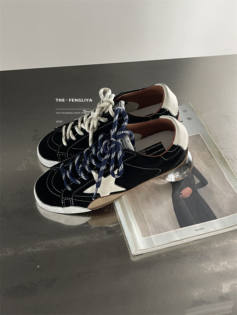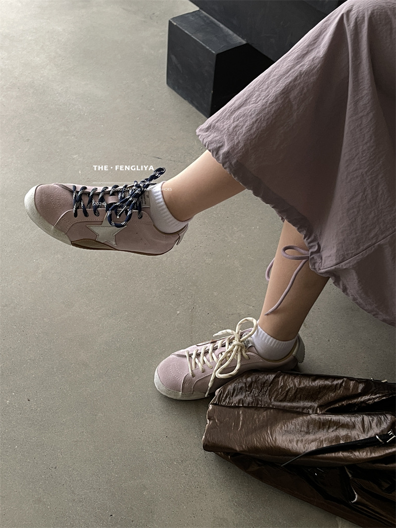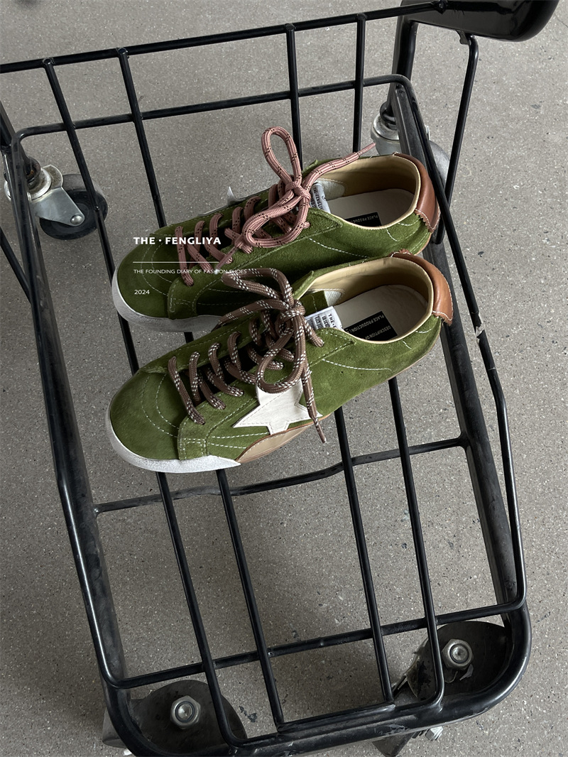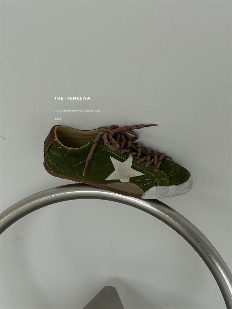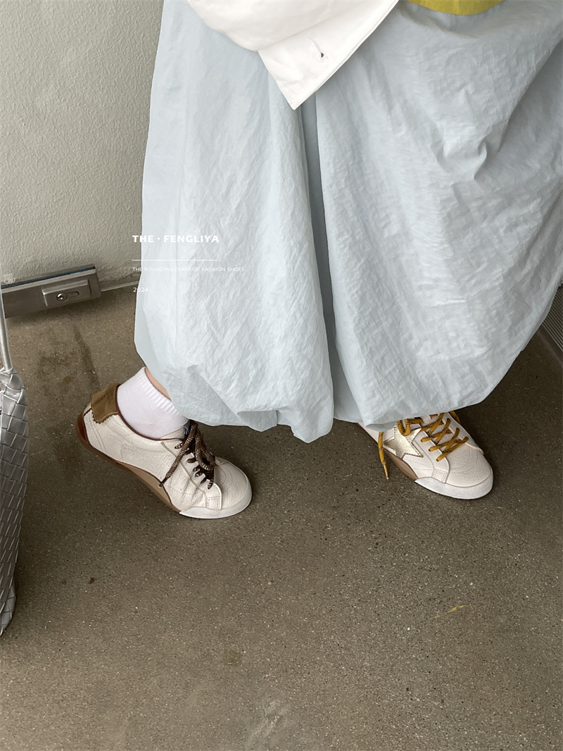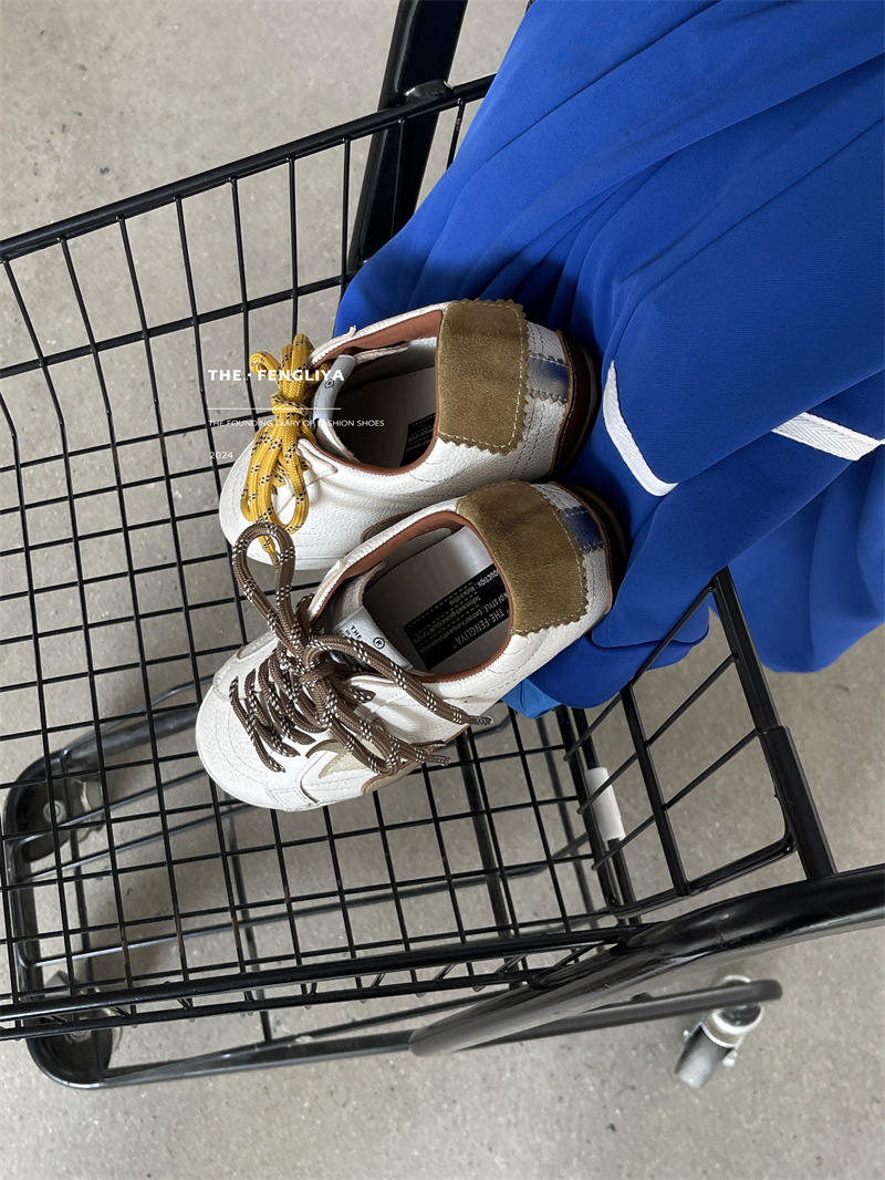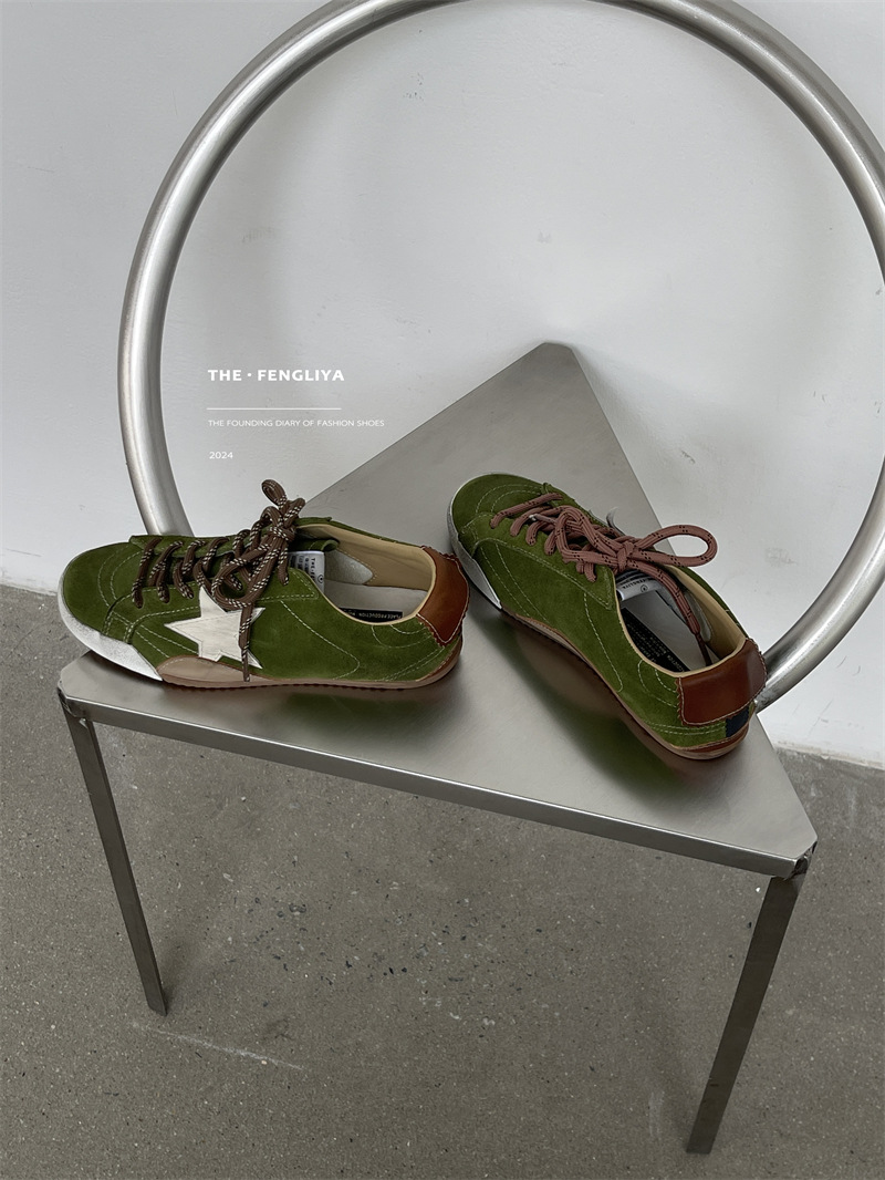 정품 가죽 레이스업 플랫솔 라운드토 레트로 스니커즈, 한국식 작은 더티슈즈, 트렌디한 슈즈, 캐주얼 소가죽 디스트레스드 통기성 육군훈련화스토어 가기