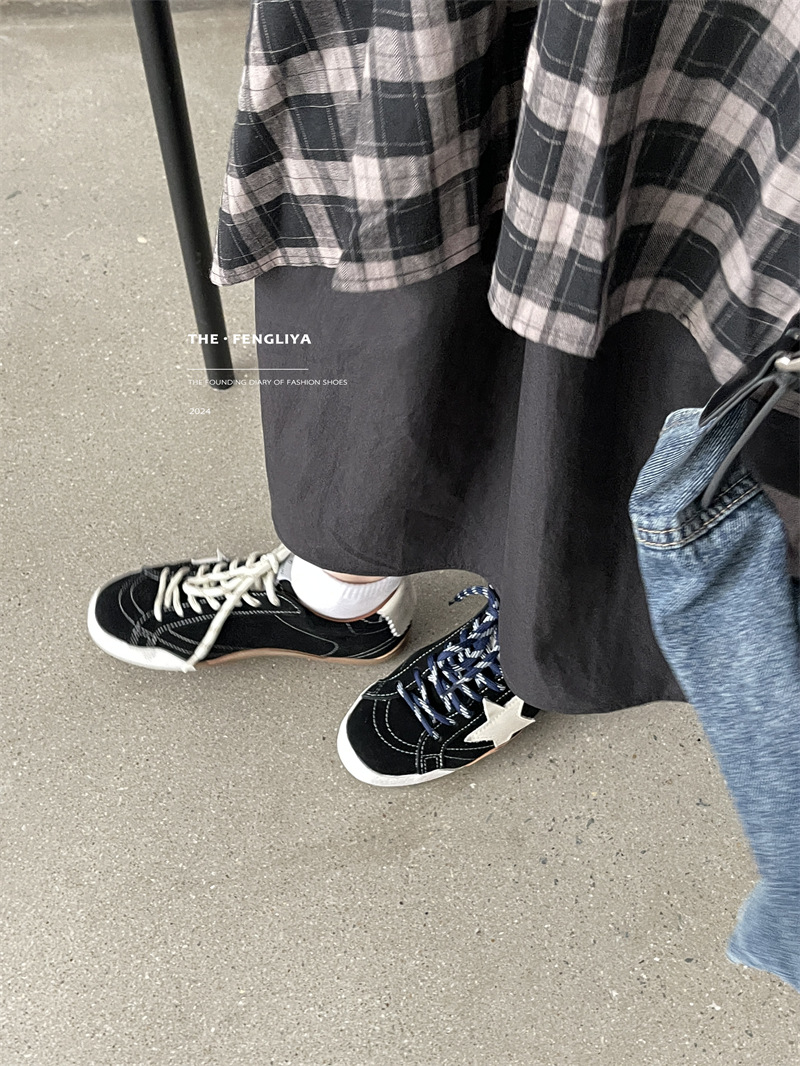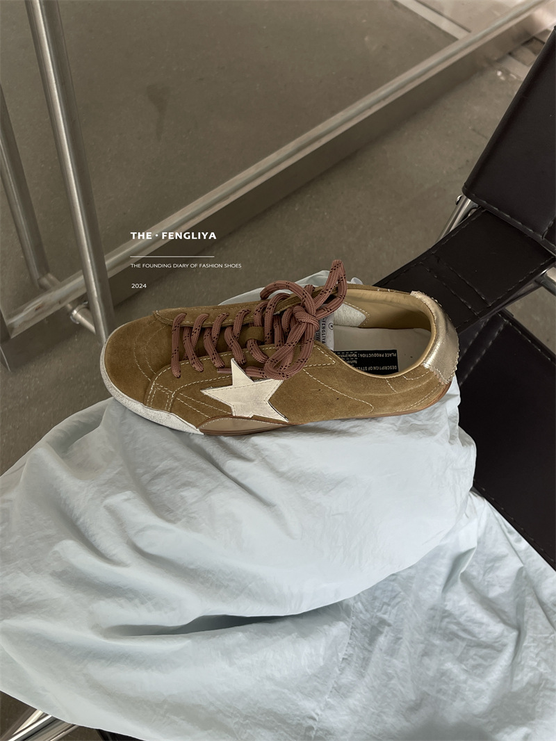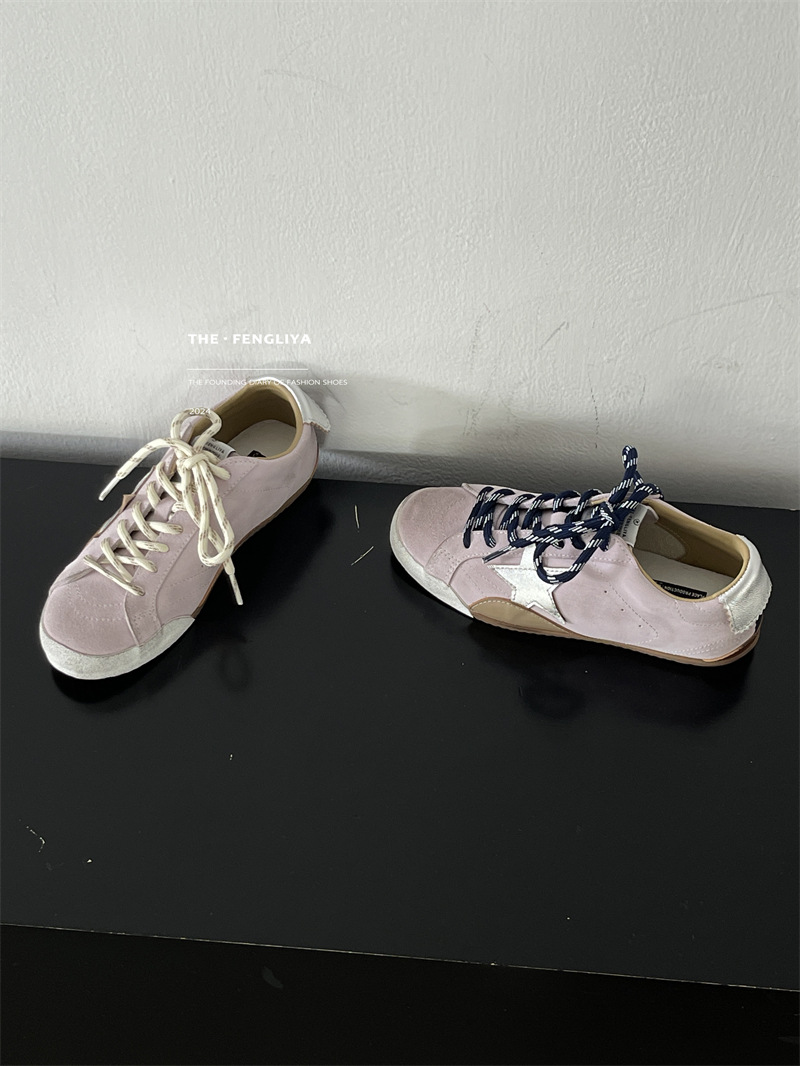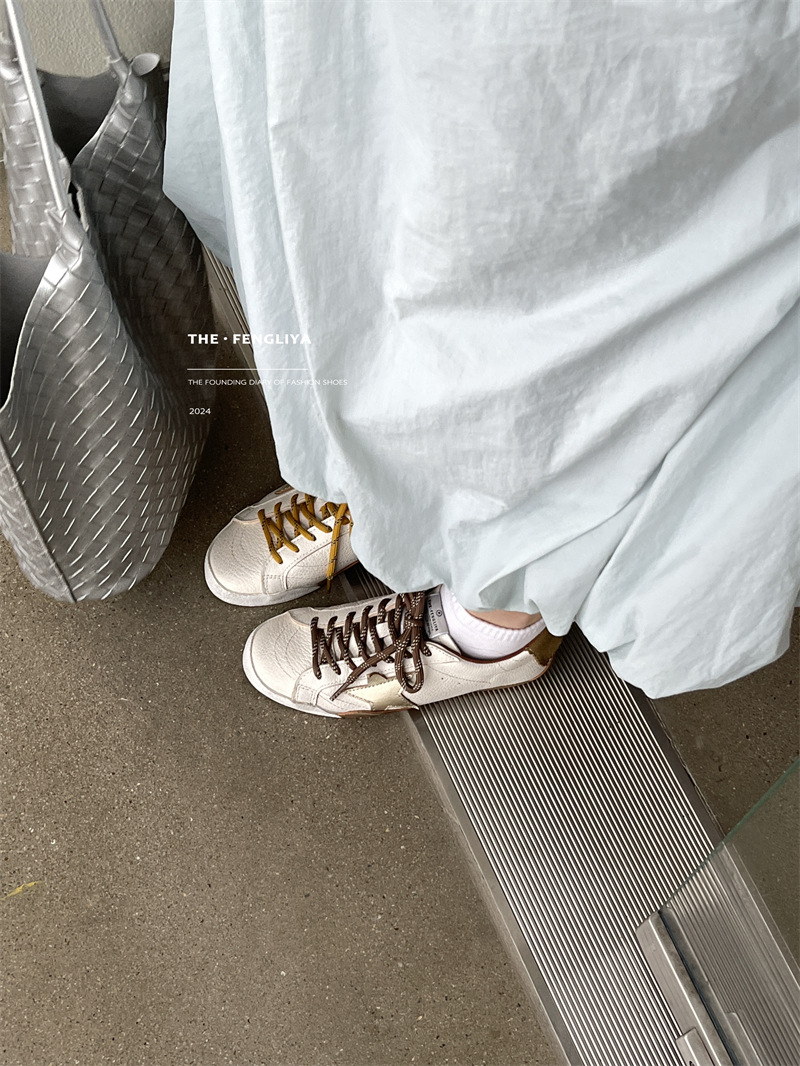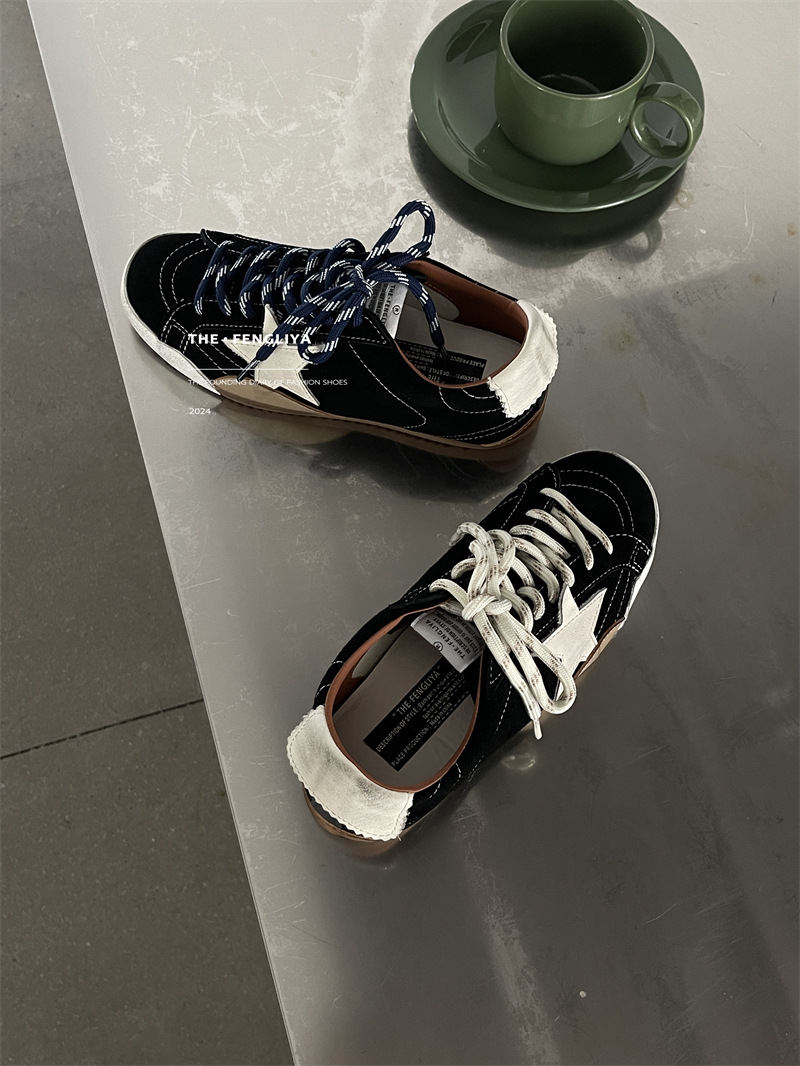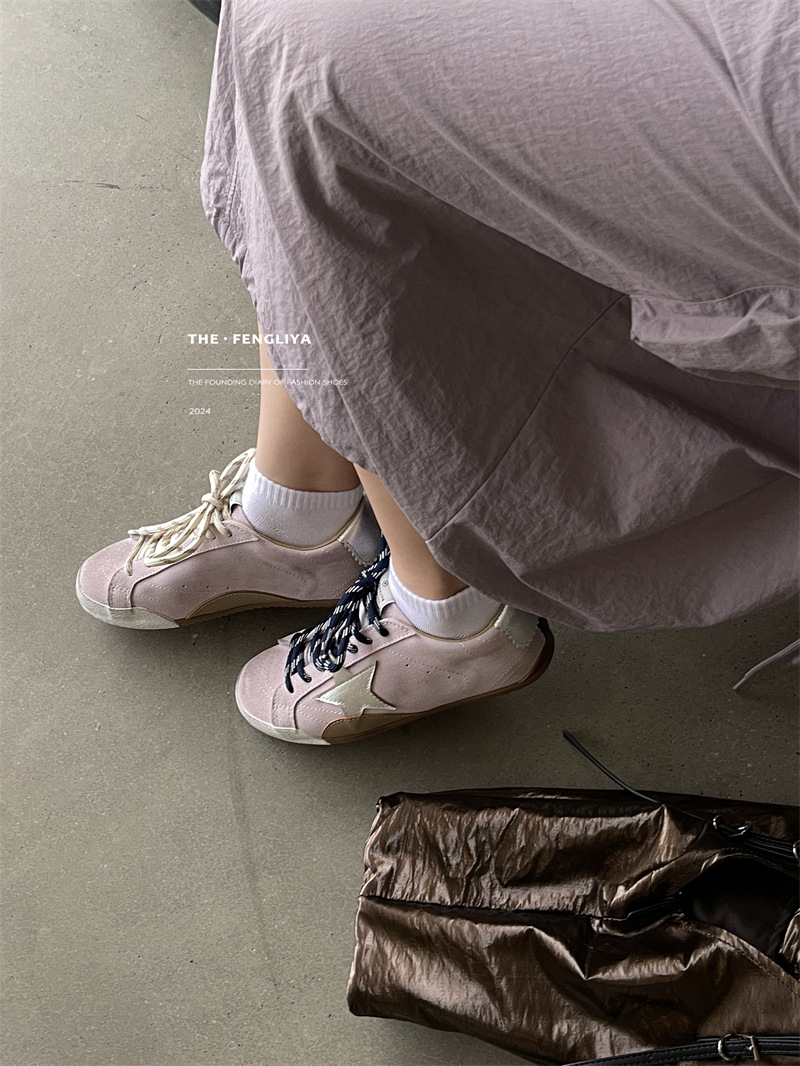 정품 가죽 레이스업 플랫솔 라운드토 레트로 스니커즈, 한국식 작은 더티슈즈, 트렌디한 슈즈, 캐주얼 소가죽 디스트레스드 통기성 육군훈련화스토어 가기