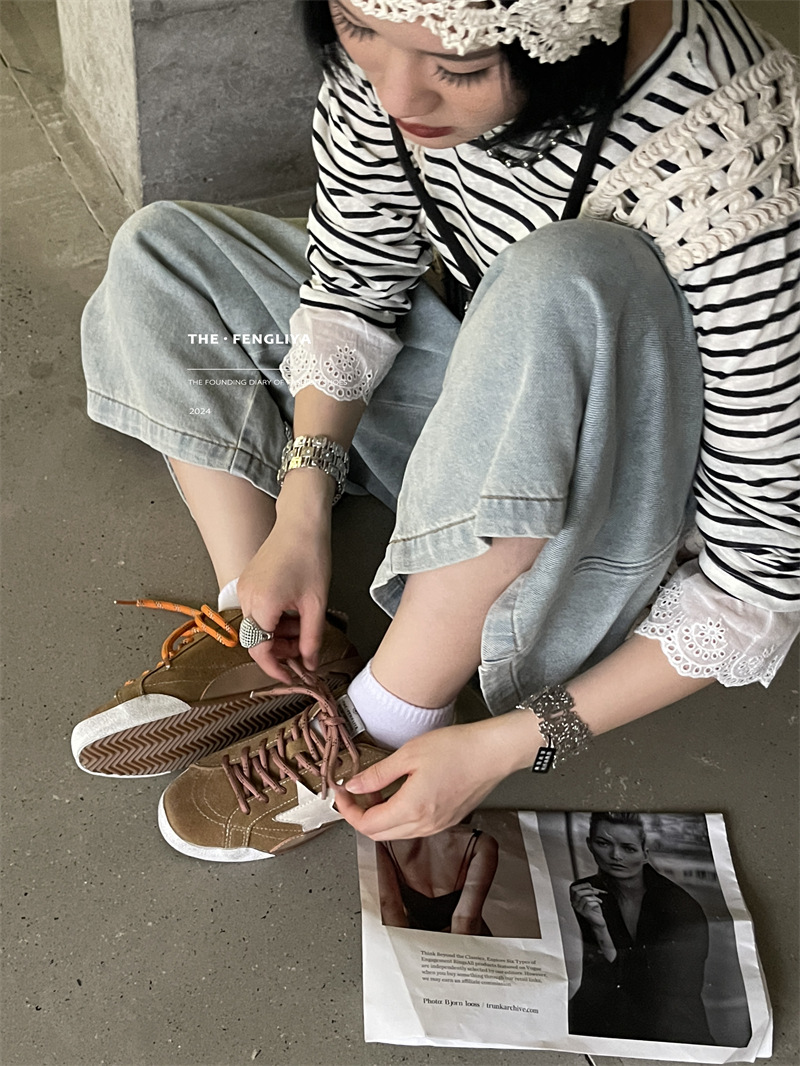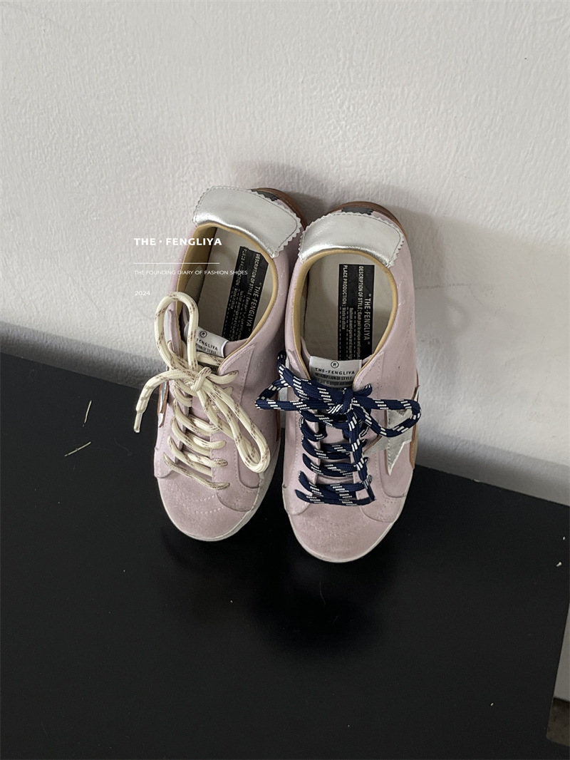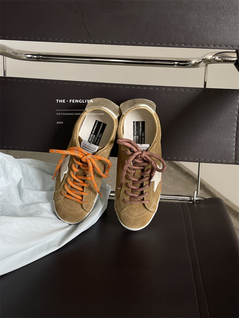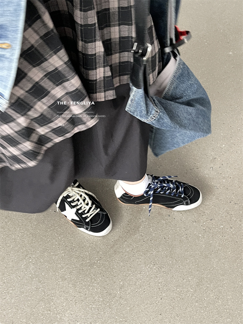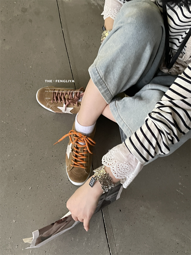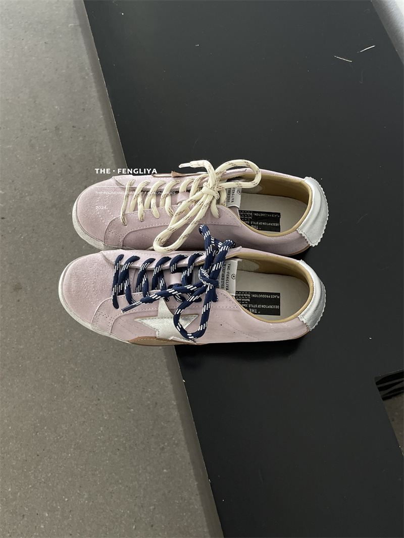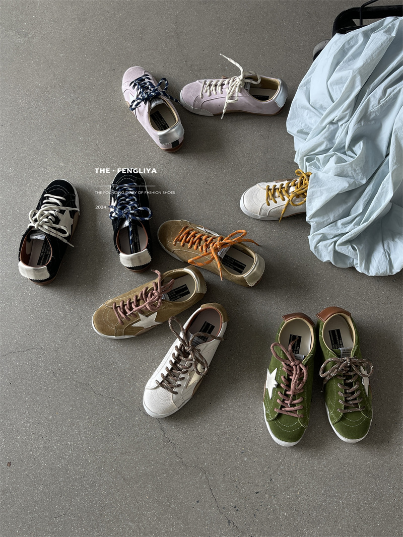 정품 가죽 레이스업 플랫솔 라운드토 레트로 스니커즈, 한국식 작은 더티슈즈, 트렌디한 슈즈, 캐주얼 소가죽 디스트레스드 통기성 육군훈련화스토어 가기