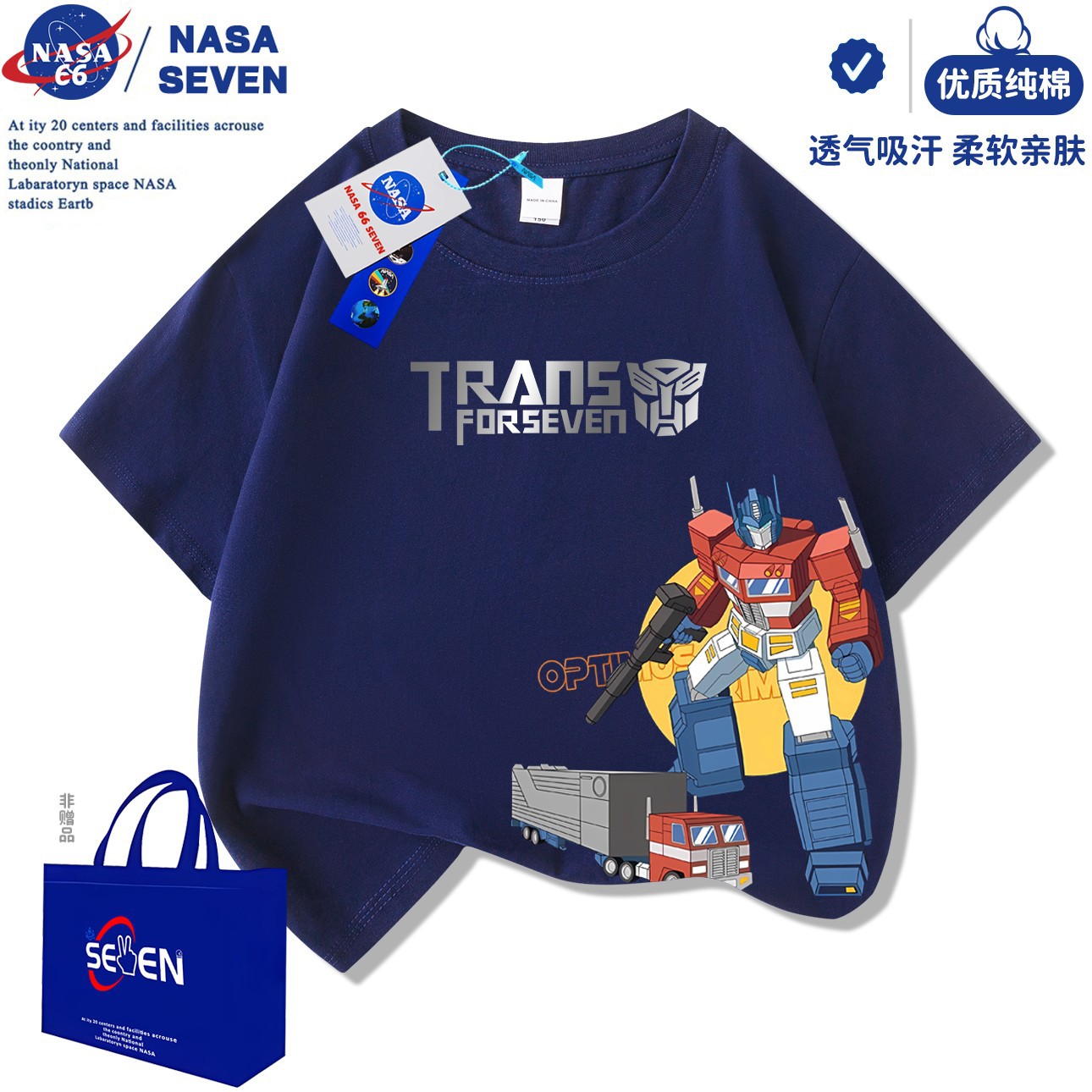 NASA 만화 Optimus Prime 아동용 반팔 잘 생긴 여름 Transformers 순면 티셔츠 중대형 아동 캐주얼상의스토어 가기