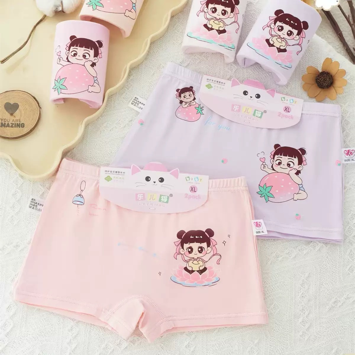 Leermao 소녀 복서 팬티 모달 대나무 섬유 편안하고 통기성이 뛰어난 만화 애니메이션 Nezha 프린트 복서 팬티