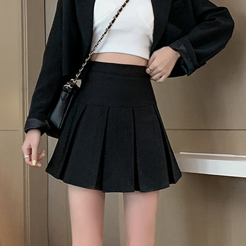 여성을위한 검은 주름 치마 여름 2025 새로운 핫 소녀 미니 스커트 작은 하이 웨이스트 a 라인 정장 스커트 바지