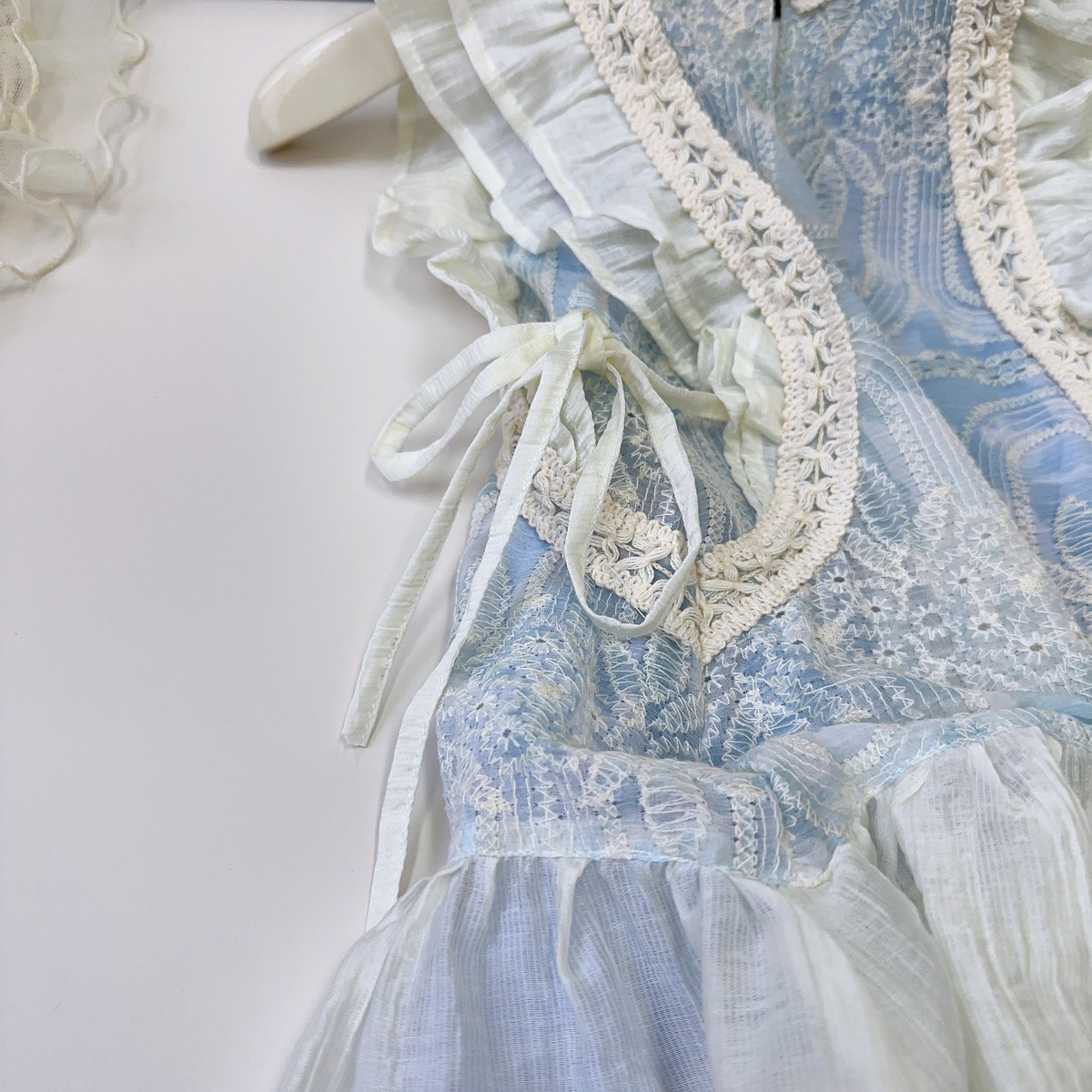 2025 새로운 여름 소녀의 세련된 휴가 스타일 한국 스타일 어린 소녀의 신선한 메쉬 스커트 플라잉 슬리브 드레스스토어 가기