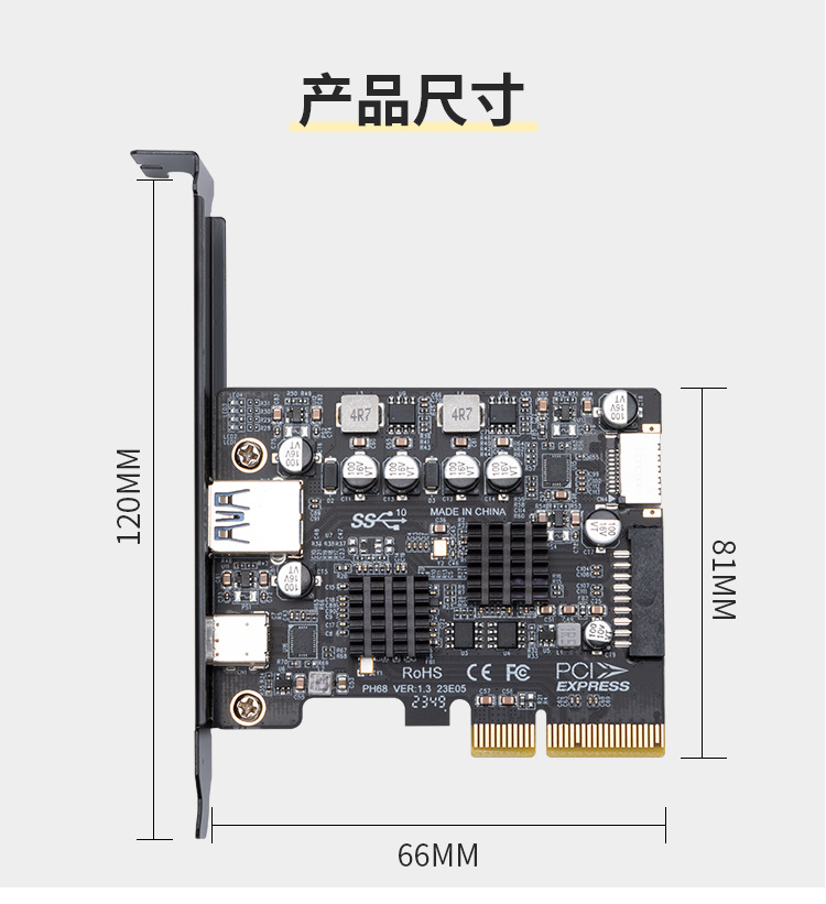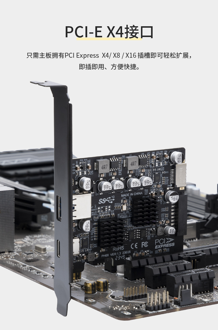 CIEx4-USB3.2 확장 카드 TYPE-C 어댑터 카드 TYPE C 인터페이스 20GB 드라이브 없음