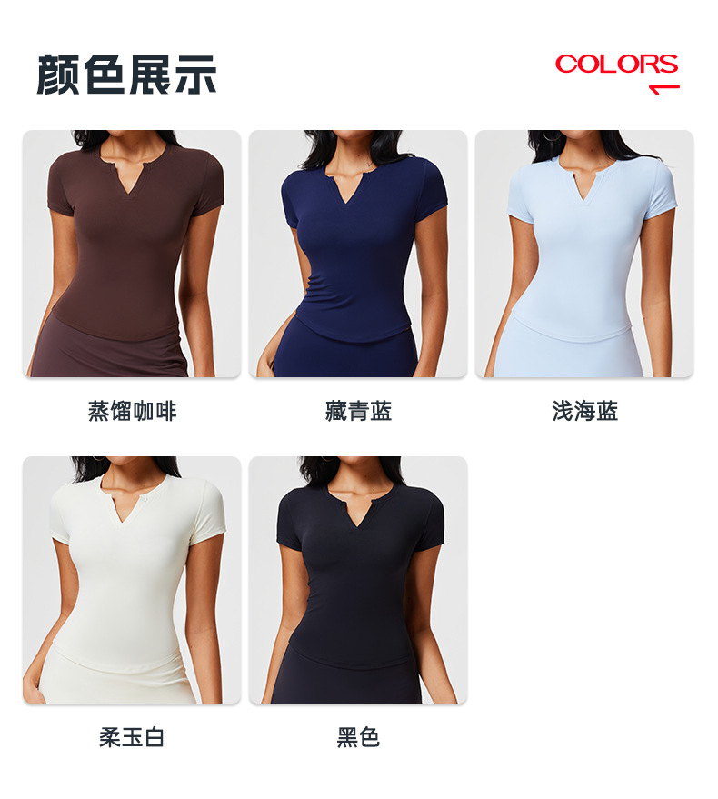 여름 새로운 V 넥 스포츠 반팔 옷 여성용 스파이스 걸스 슬림프 슬리밍 통기성 피트니스 옷 실행 요가 옷 탑스토어 가기