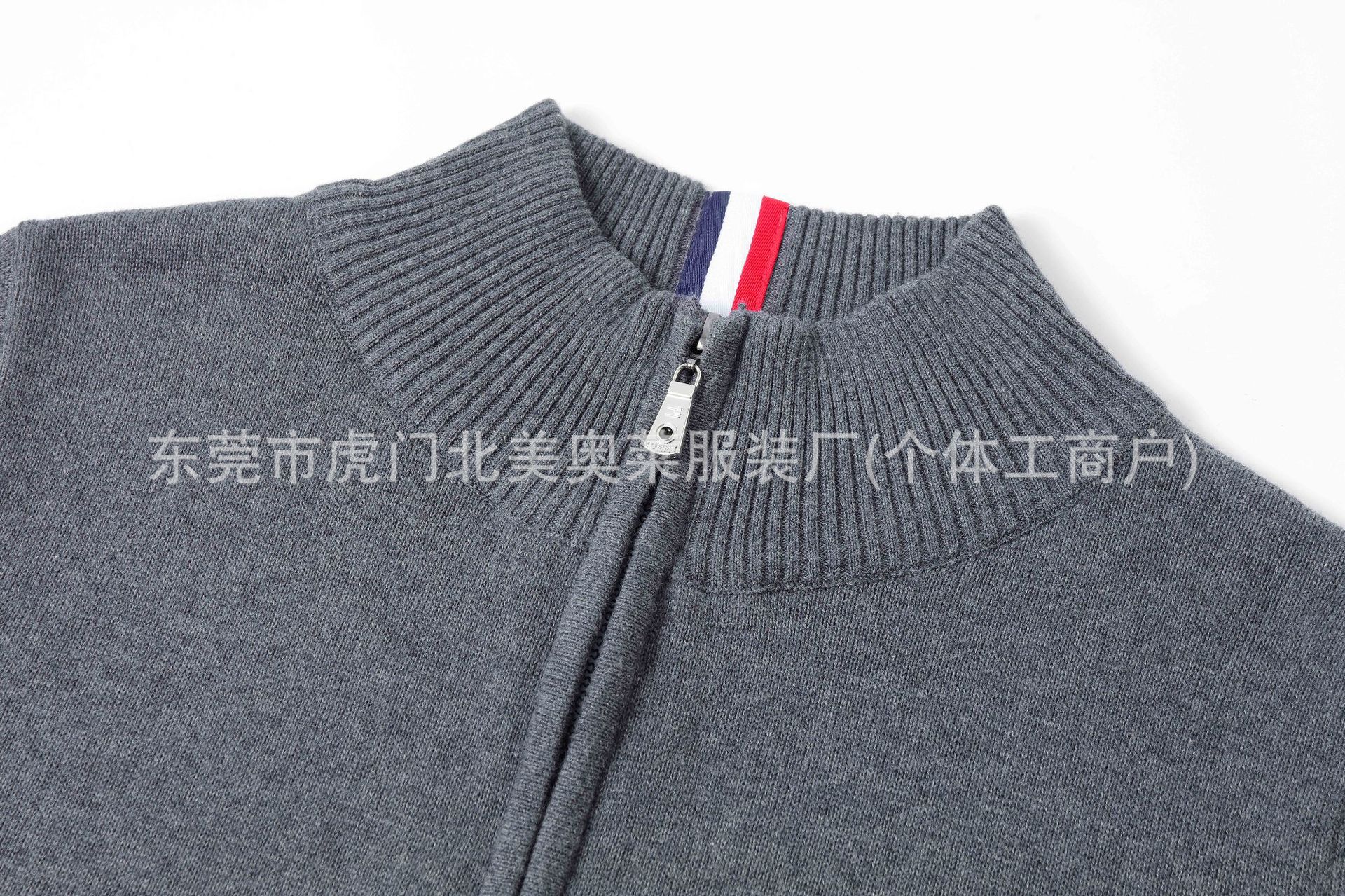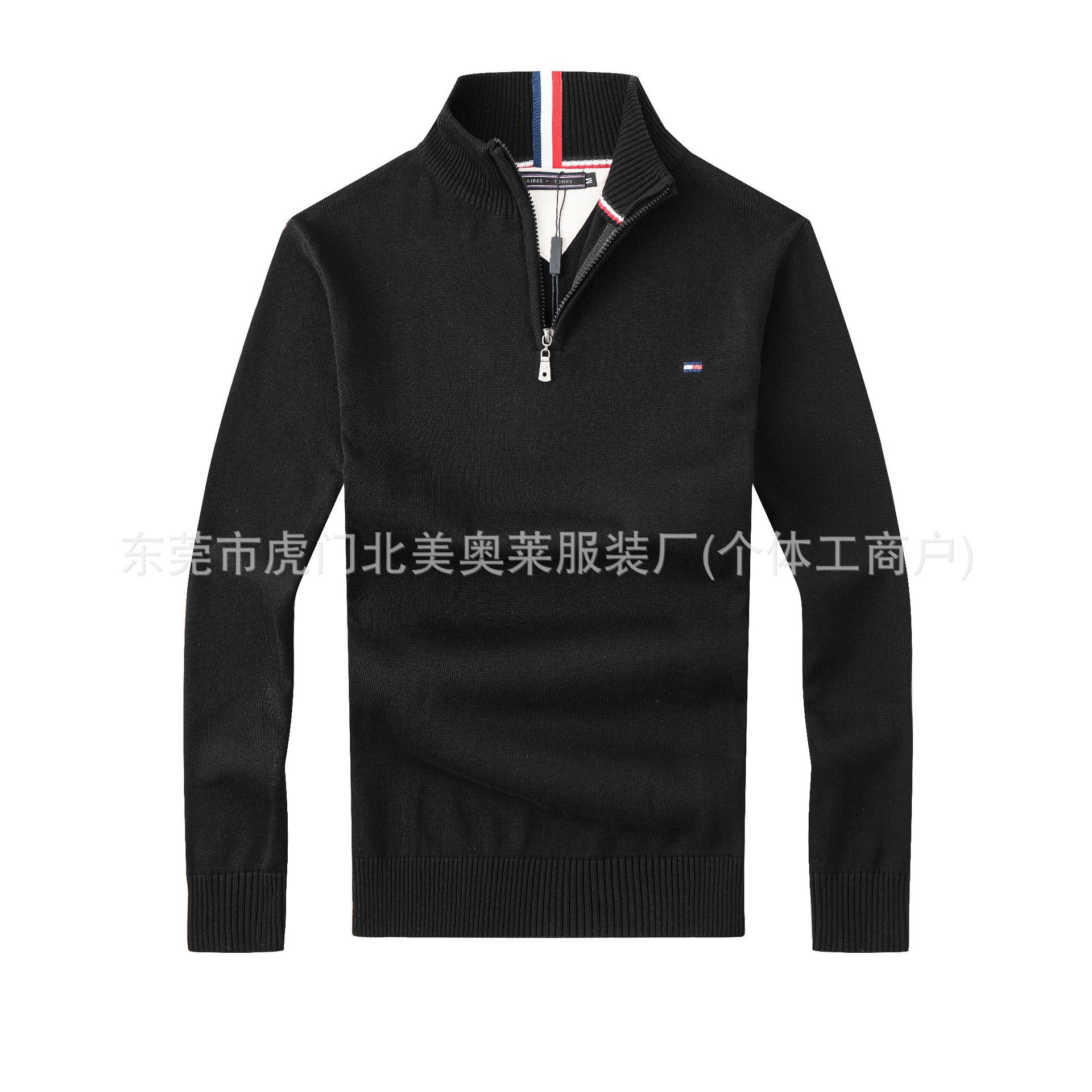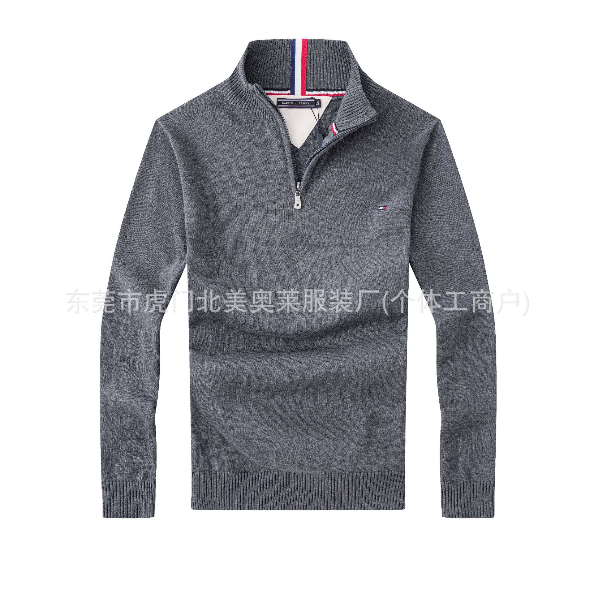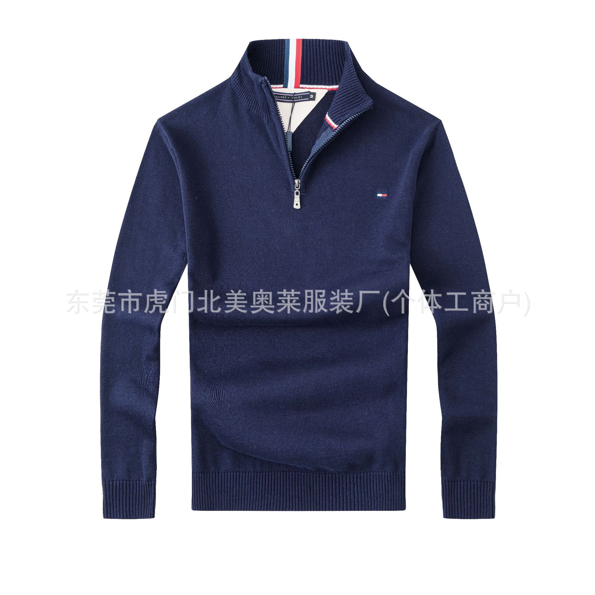 남성용 두꺼운 스탠드 칼라 지퍼 스웨터, 순면 자수 니트웨어, 해외 도매스토어 가기